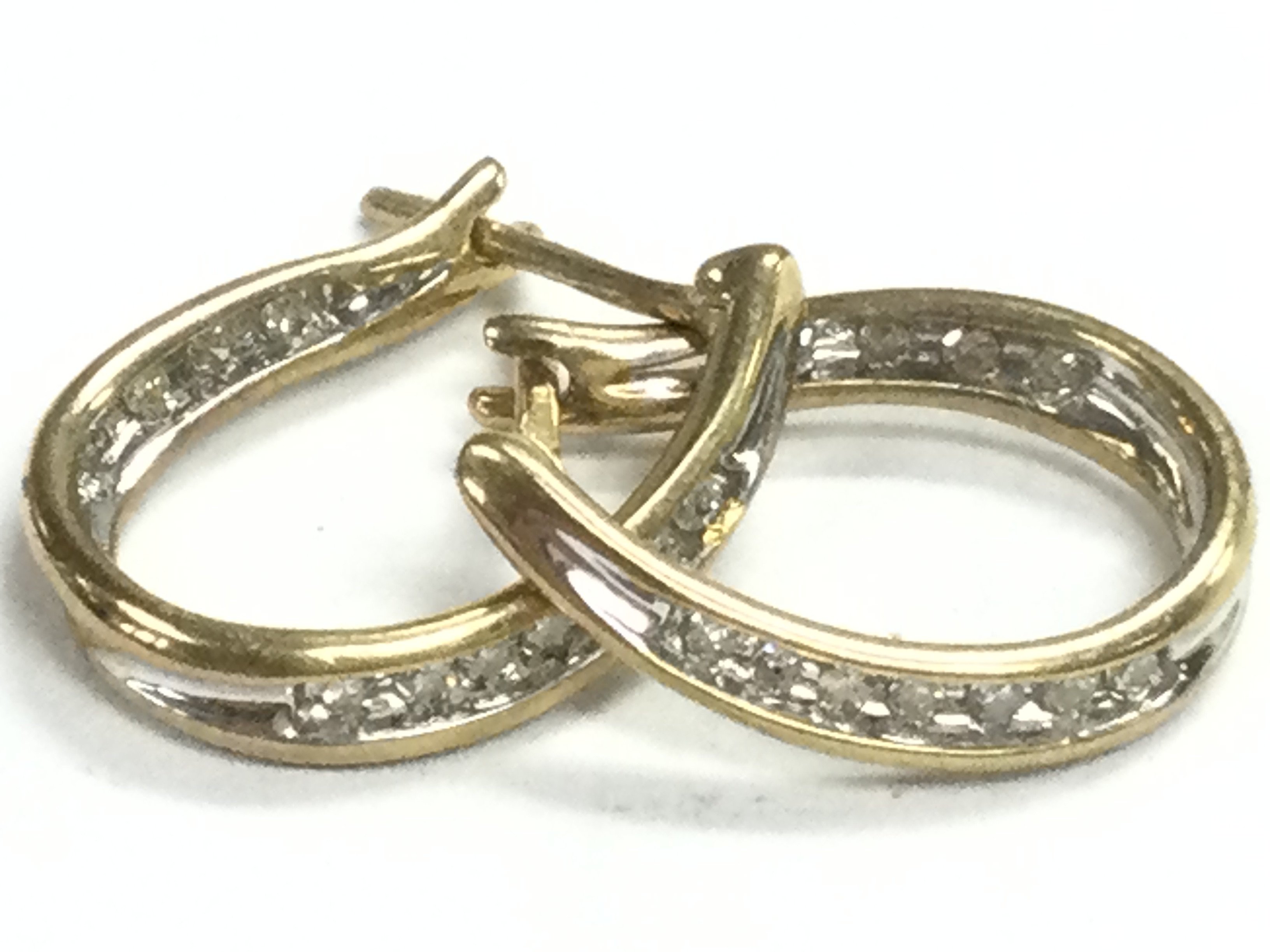 A 9ct gold diamond hoop earrings , 2.3G total weight. Postage category A