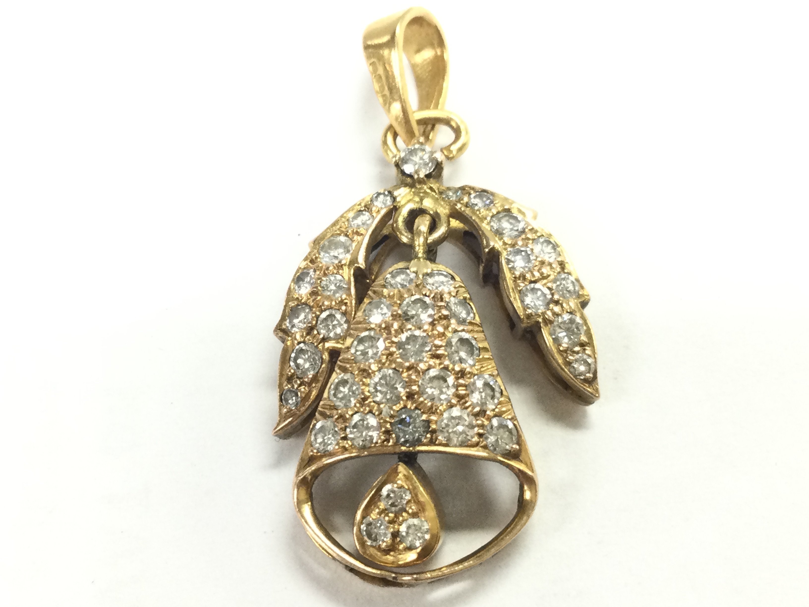 An 18ct gold diamond bell pendant , total weight 3g. Postage category A