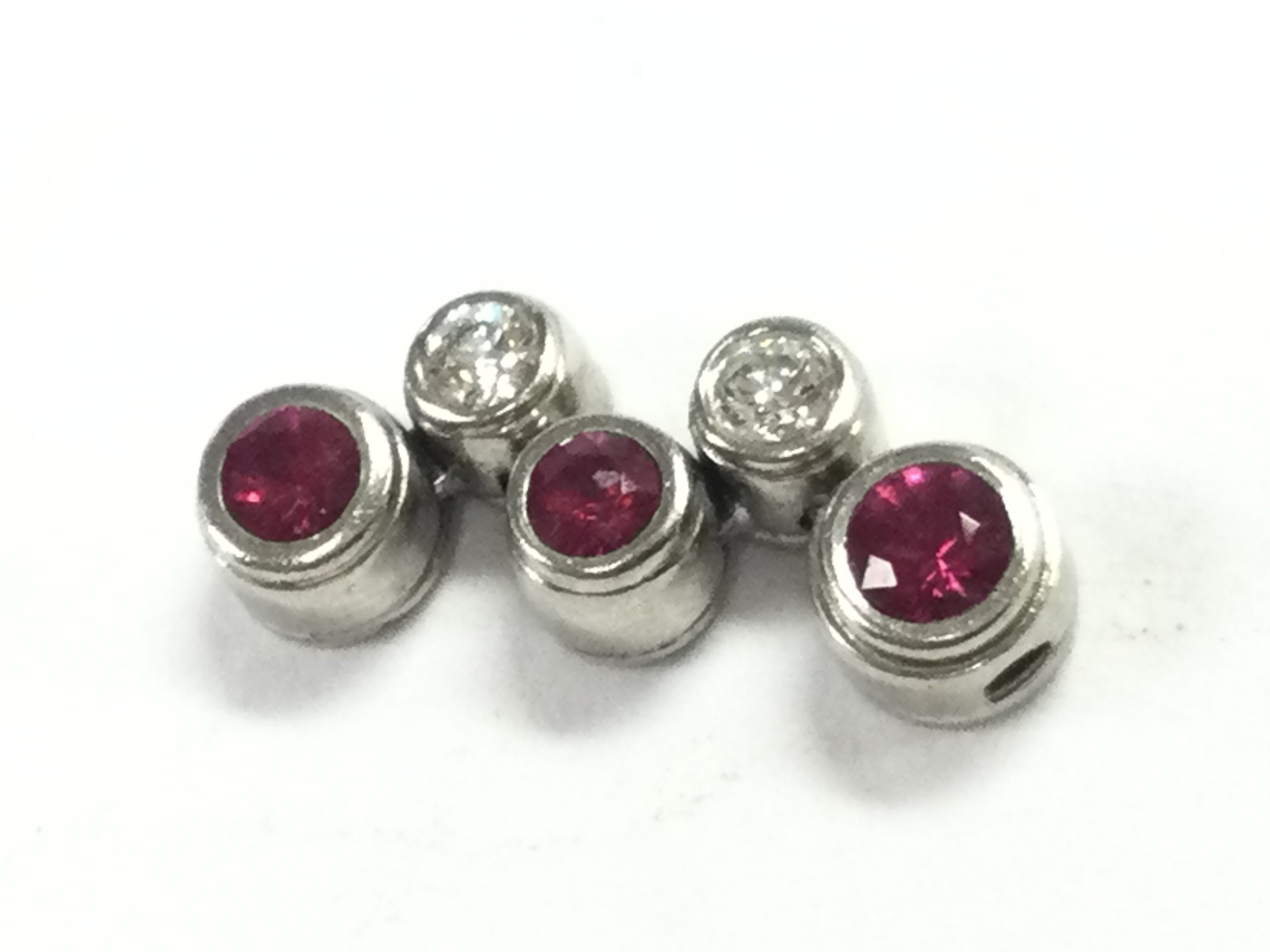 A Tiffany & Co platinum and ruby diamond drop pendant . Total weight 3.2g Postage category A