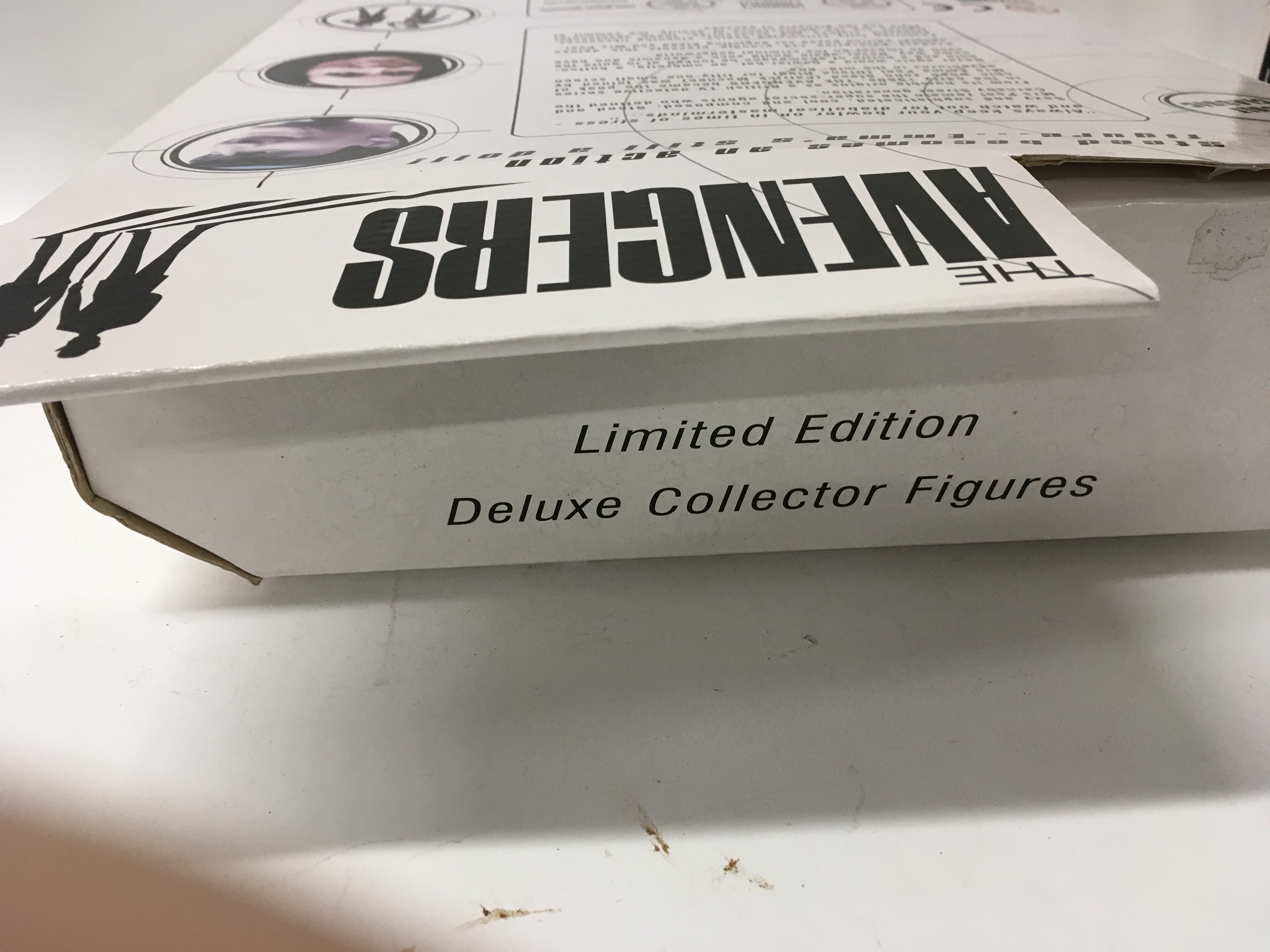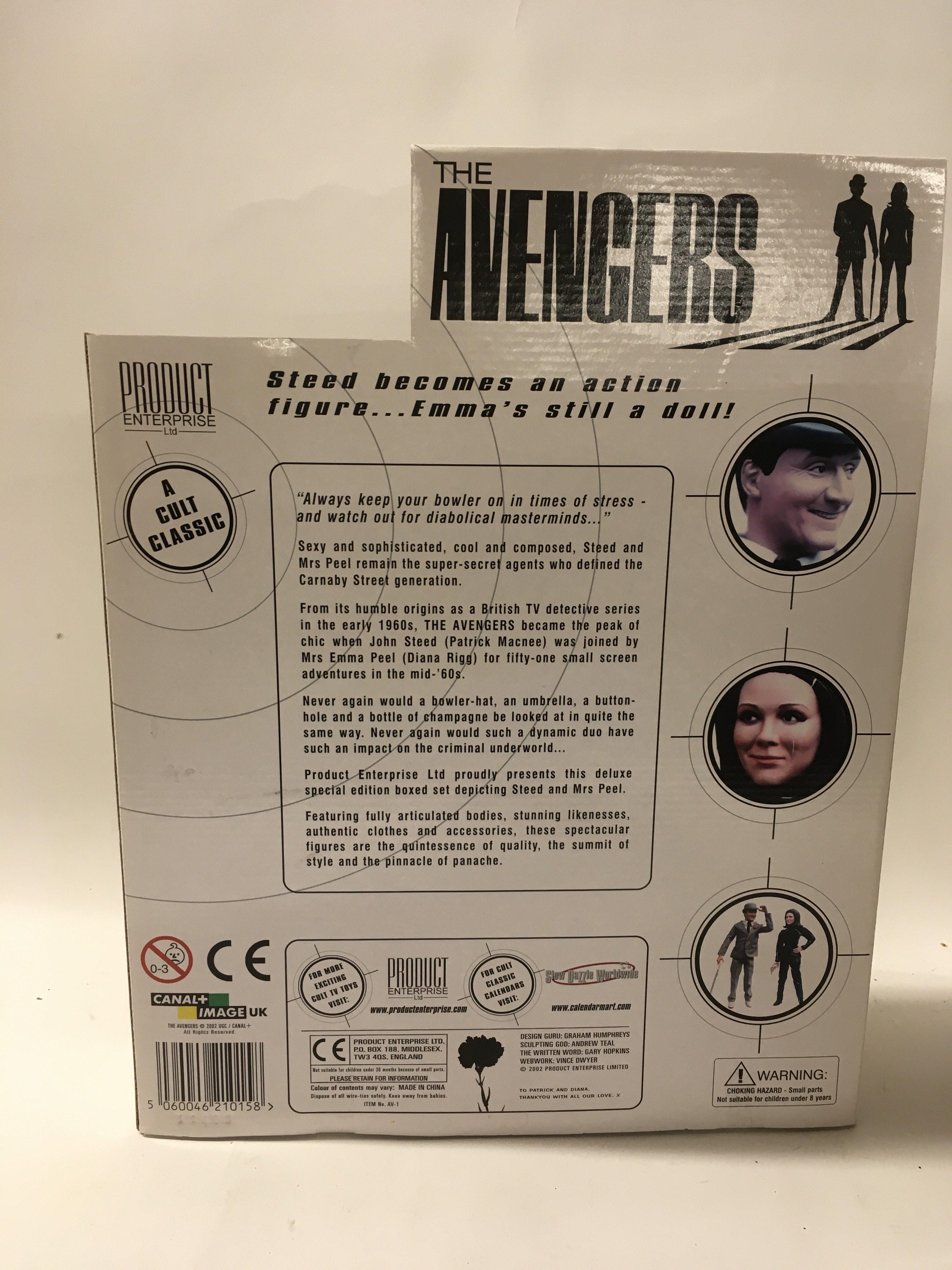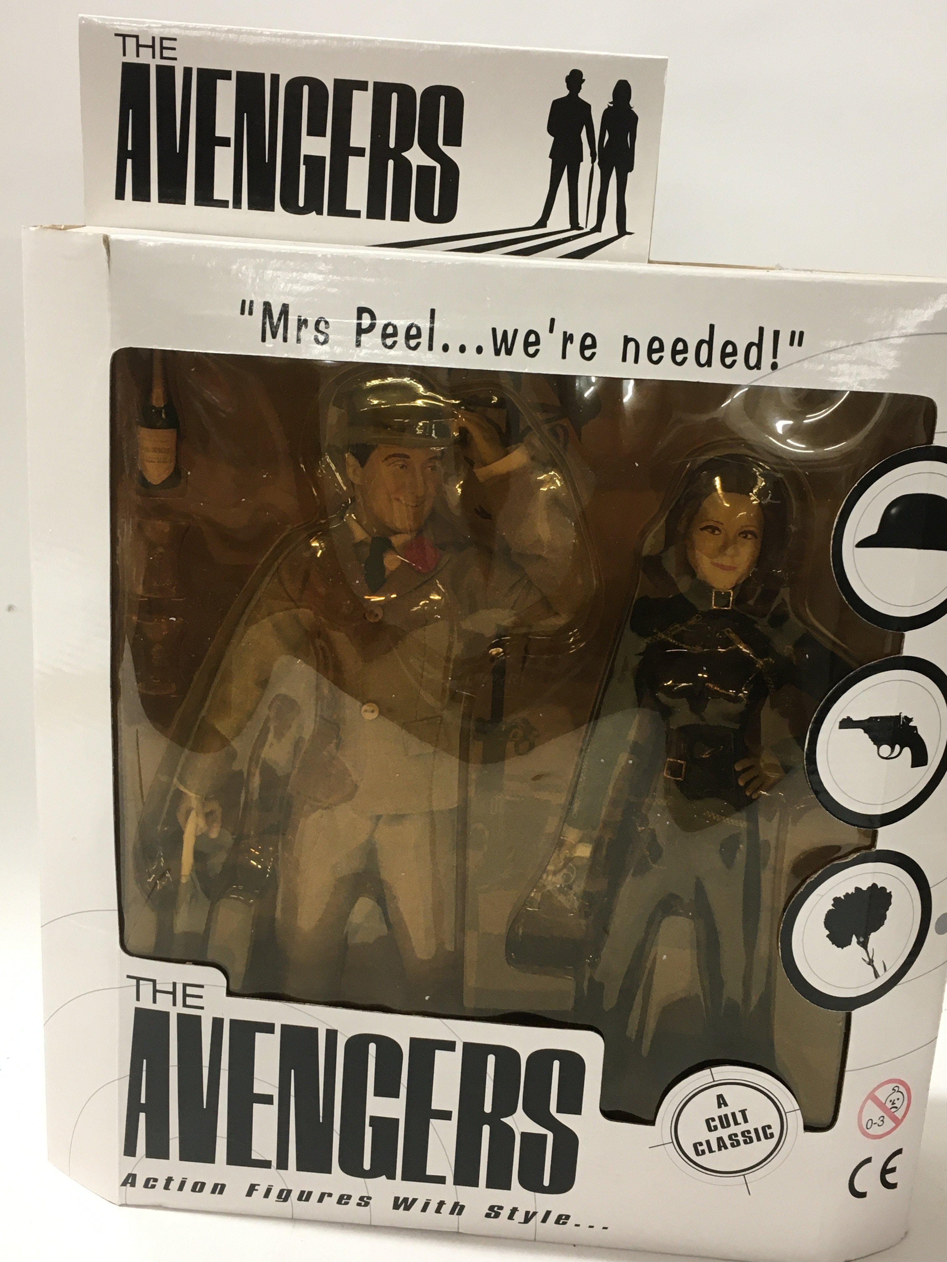 The Avengers boxed action figures featuring STEED and MRS PEEL with accessories including bottle of champagne with 2 glasses..an umbrella..bowler hat and gun.
