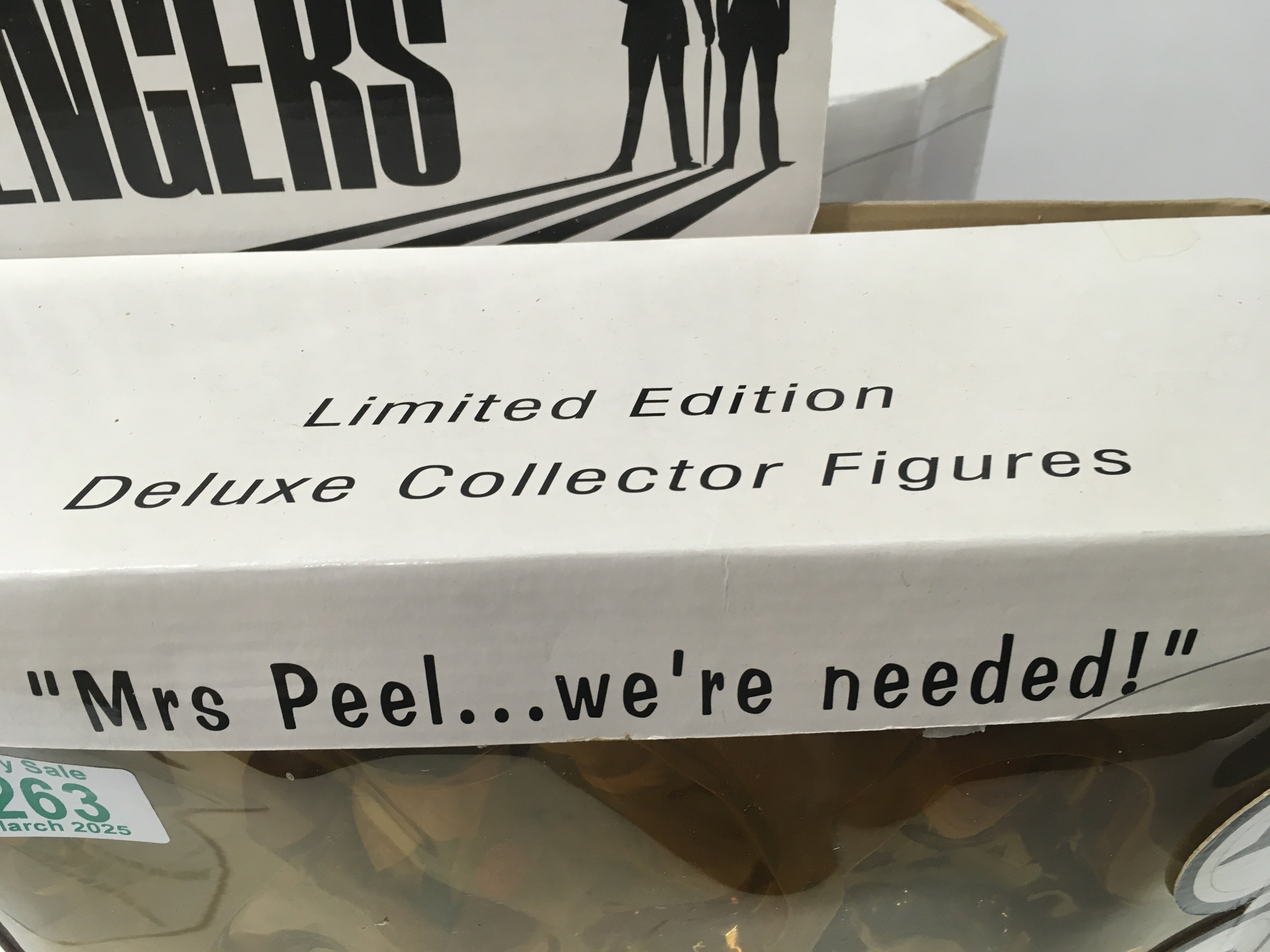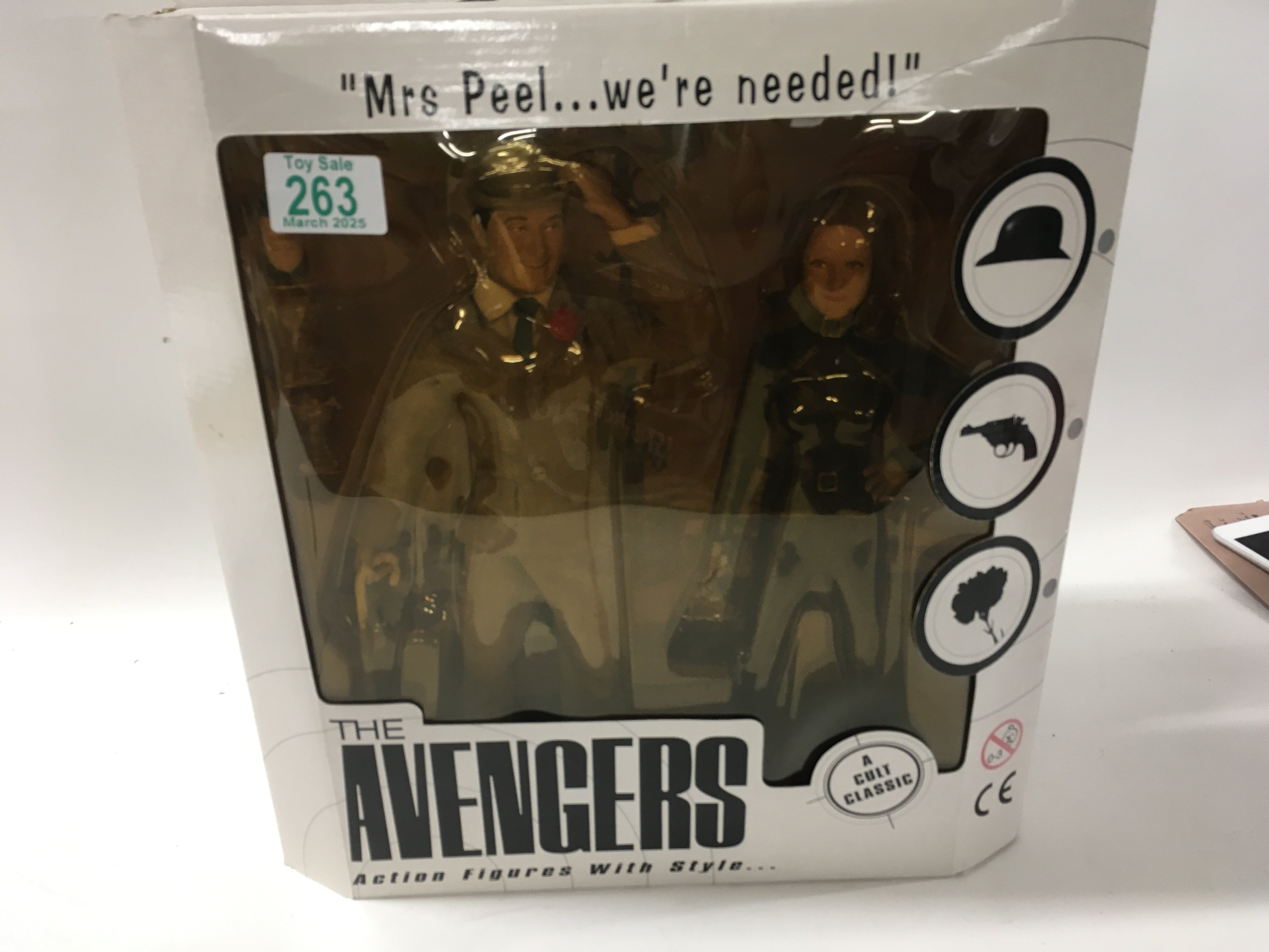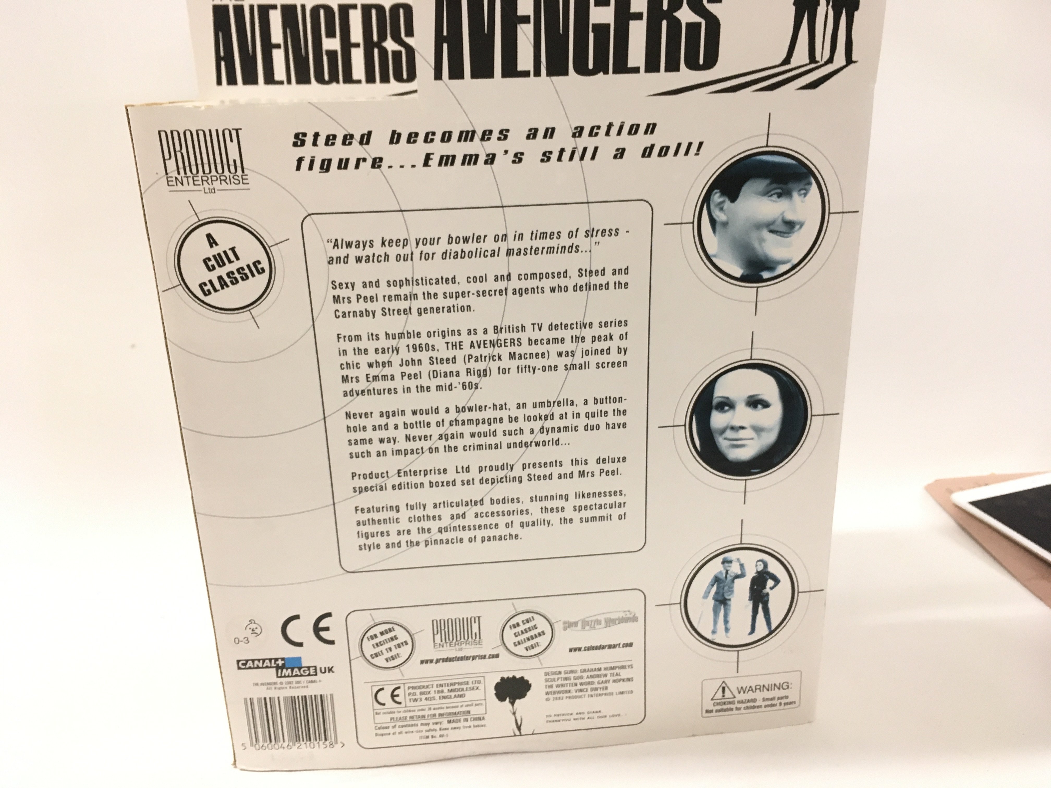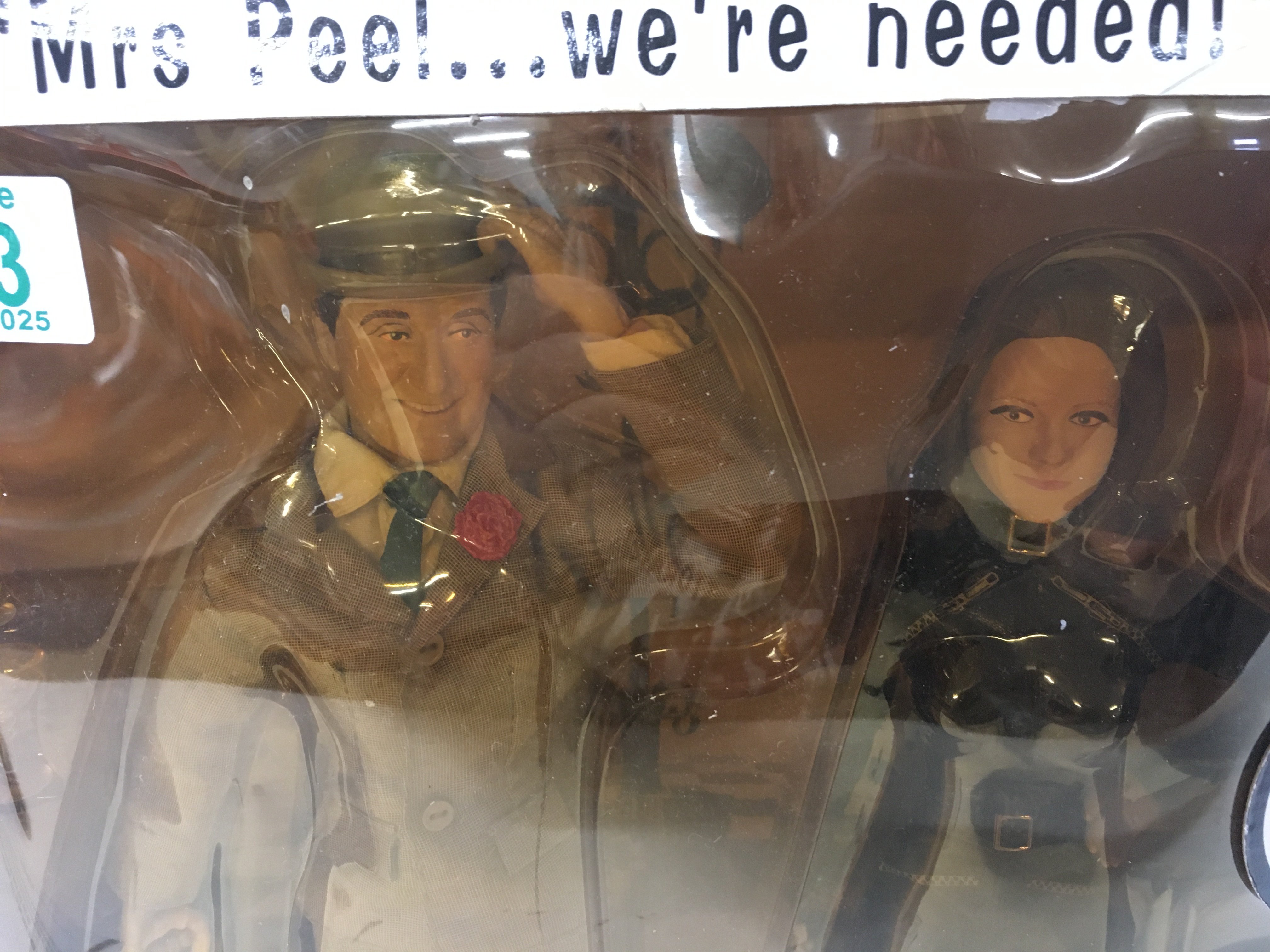 The Avengers boxed action figures featuring STEED and MRS PEEL with accessories including bottle of champagne with 2 glasses..an umbrella..bowler hat and gun.