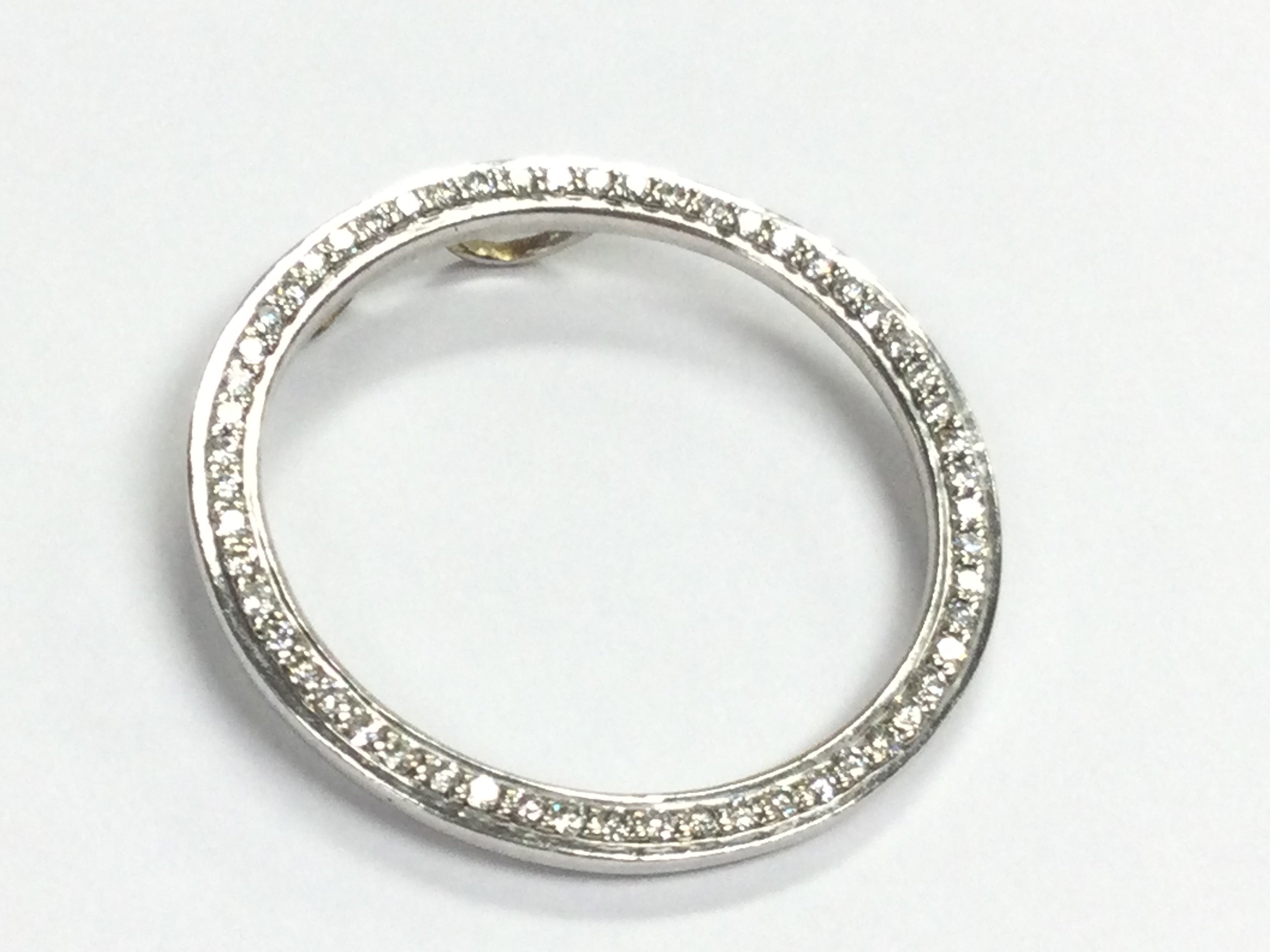 A 14ct white gold circular diamond inset pendant , 3cm wide approximately. 5g Postage category A
