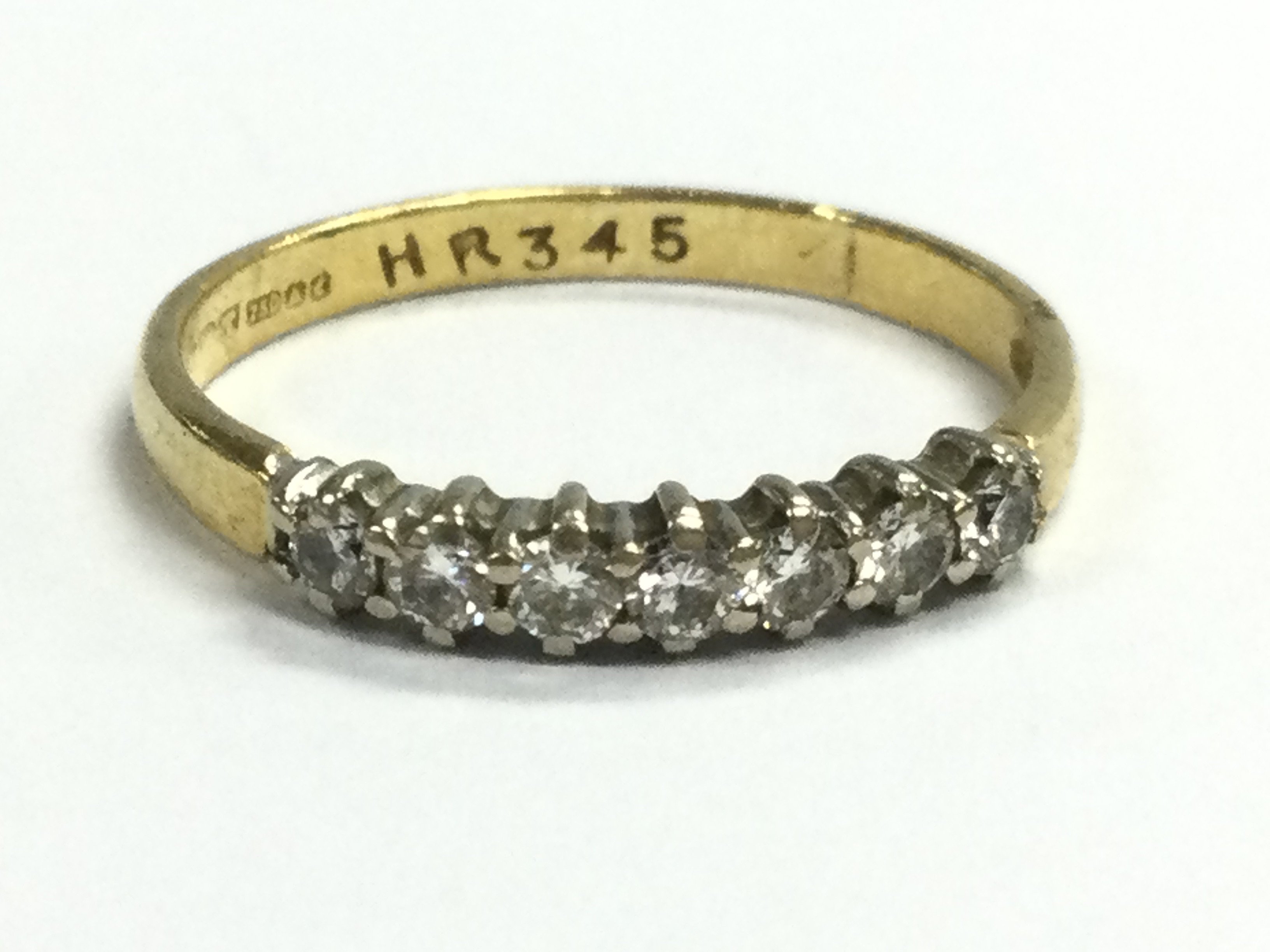 An 18ct gold seven stone diamond 1/2 hoop ring . 1.9g. Size L/M Postage category A