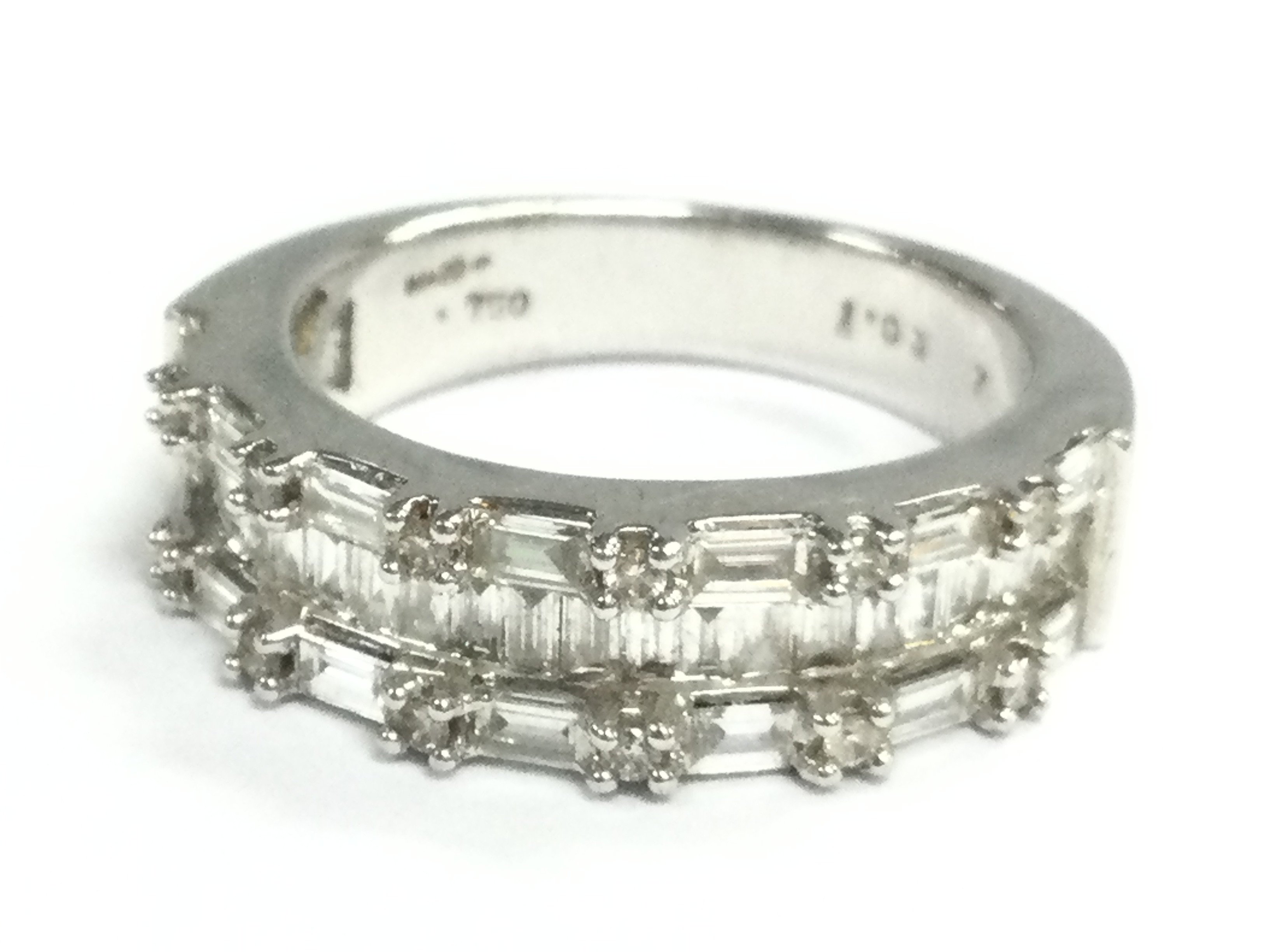 An 18ct white gold diamond 1/2 hoop ring , size N, 6.8g. Postage catA
