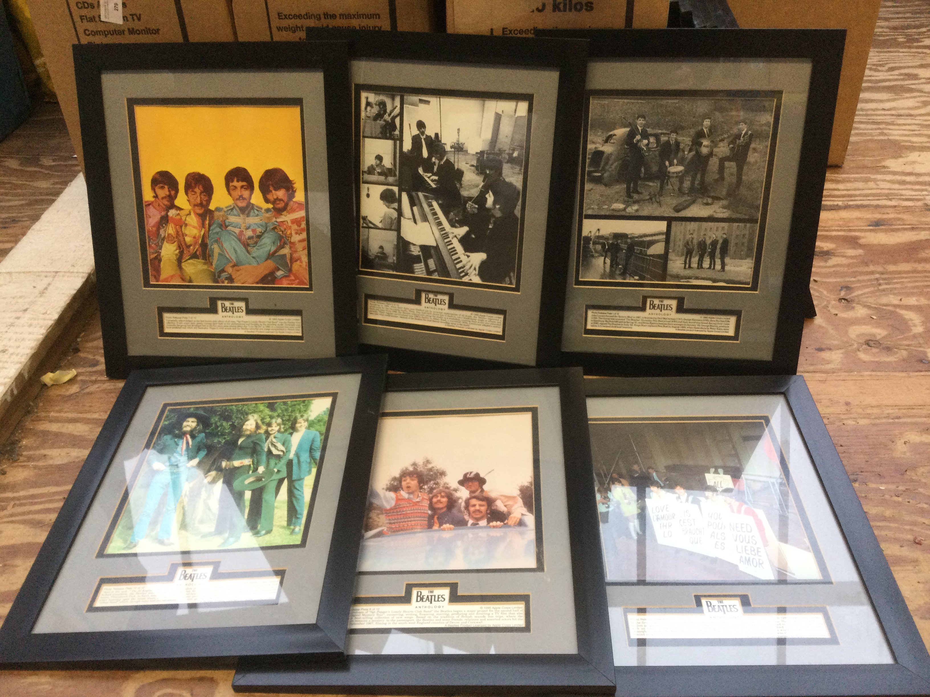 Two boxes of framed and rolled posters of The Beatles including some limited editions.