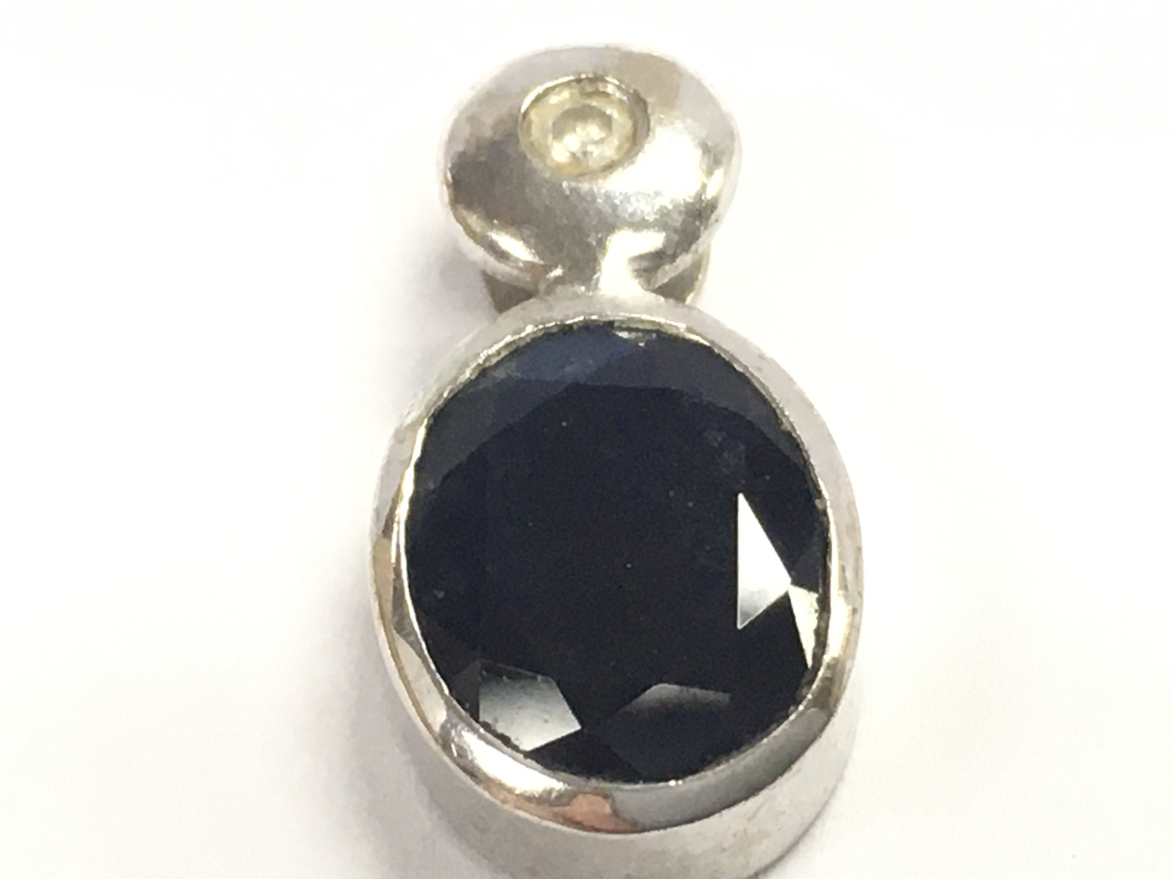 An 18ct white gold diamond and sapphire pendant , total weight 2g . Postage category a