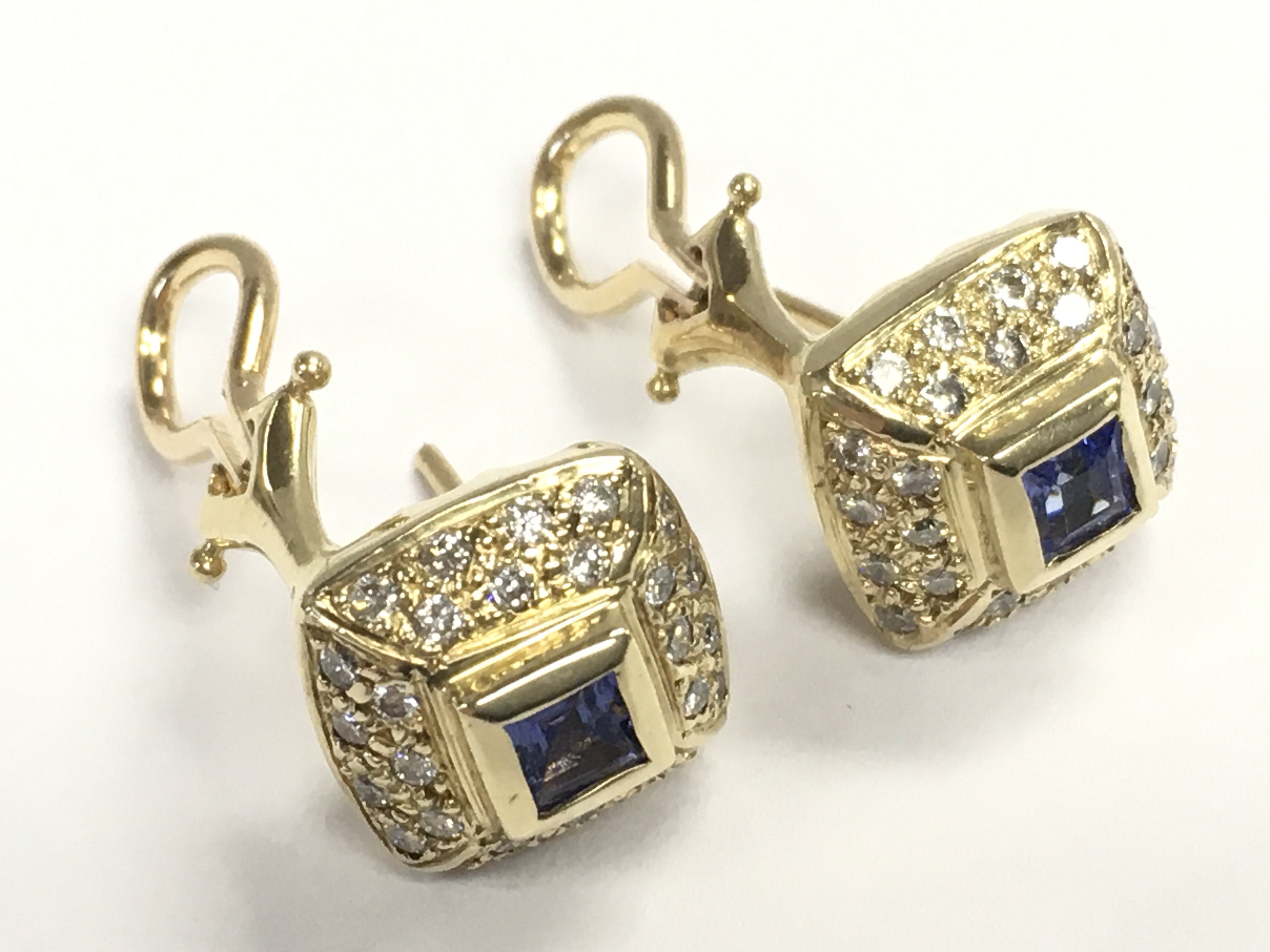 A pair of 14ct gold tanzanite cluster earrings , total weight 9.9g postage category A