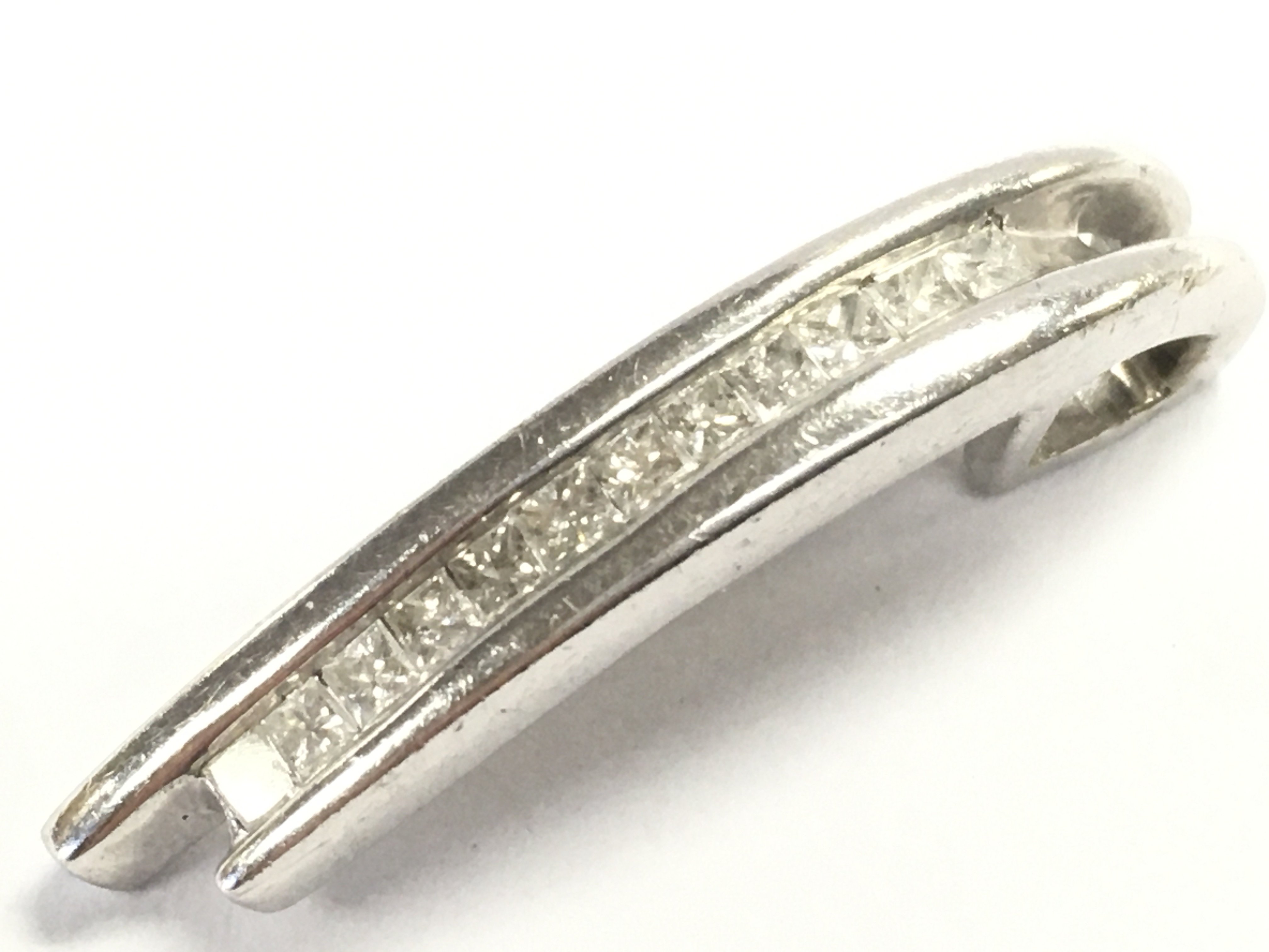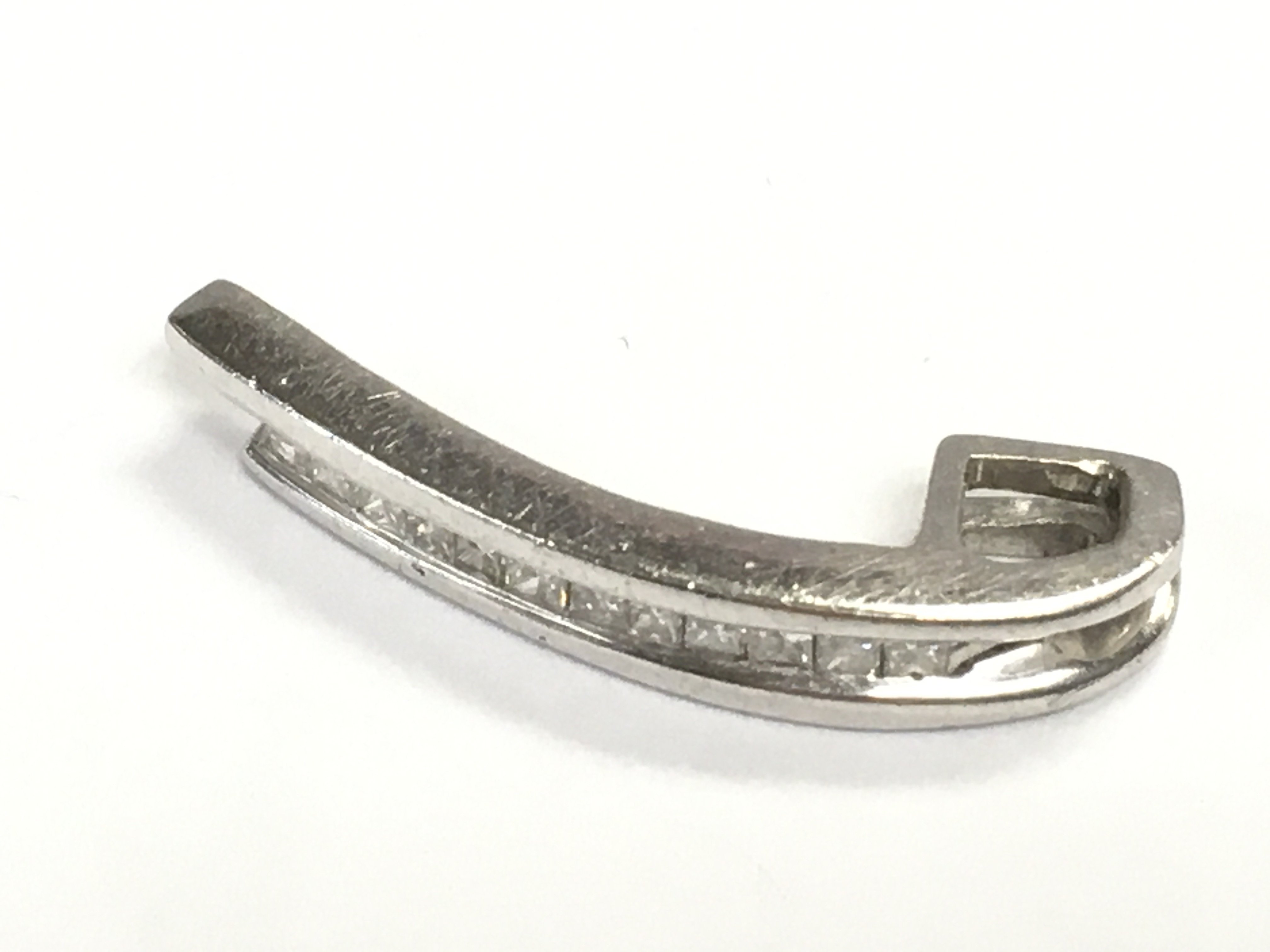 An 18ct white gold princess cut diamond set pendant ,total weight 2.8g. Postage cat a