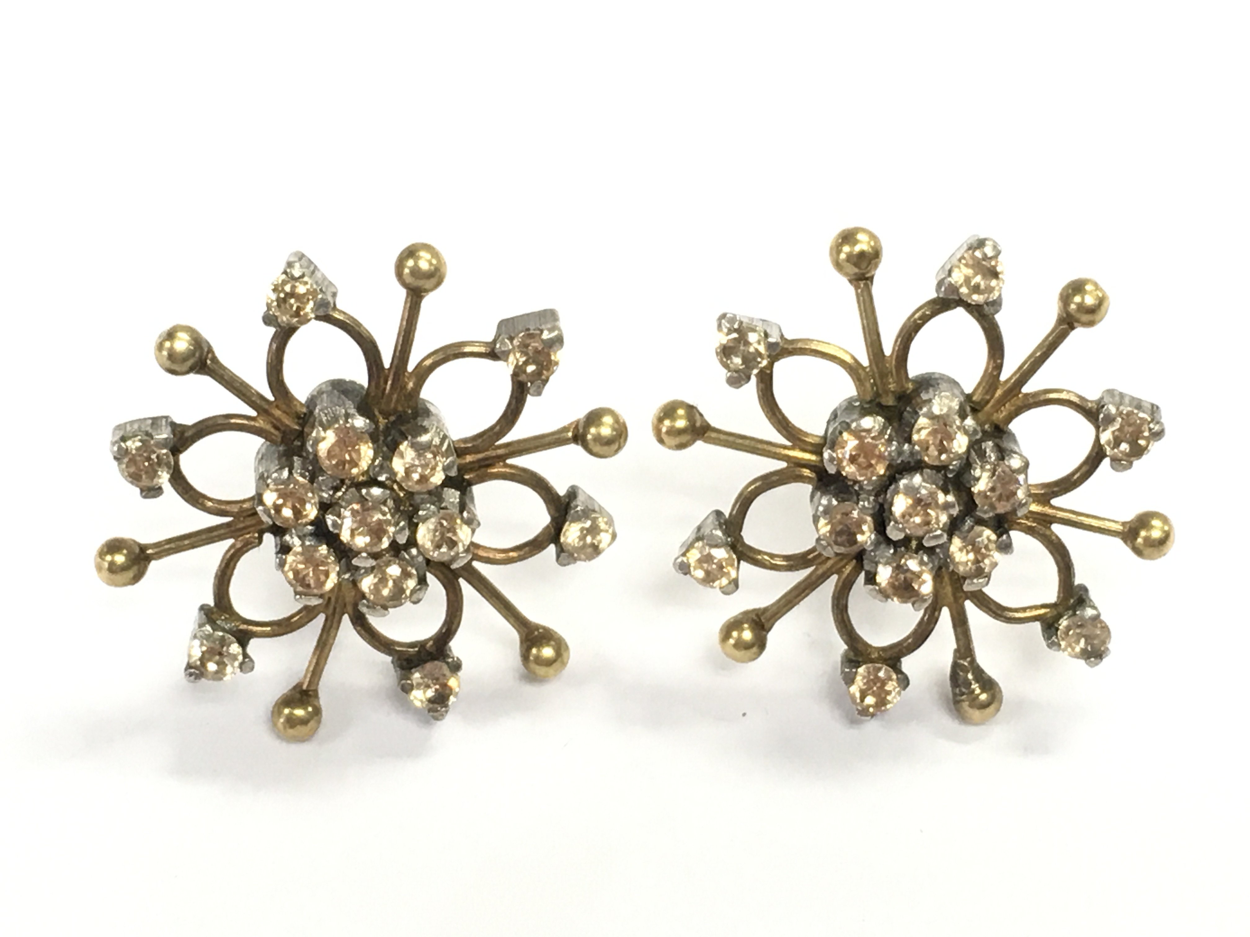 Unmarked 14ct Gold diamond stone inset flower stud earrings, no butterflys. 3.4g total weight. Postage category A