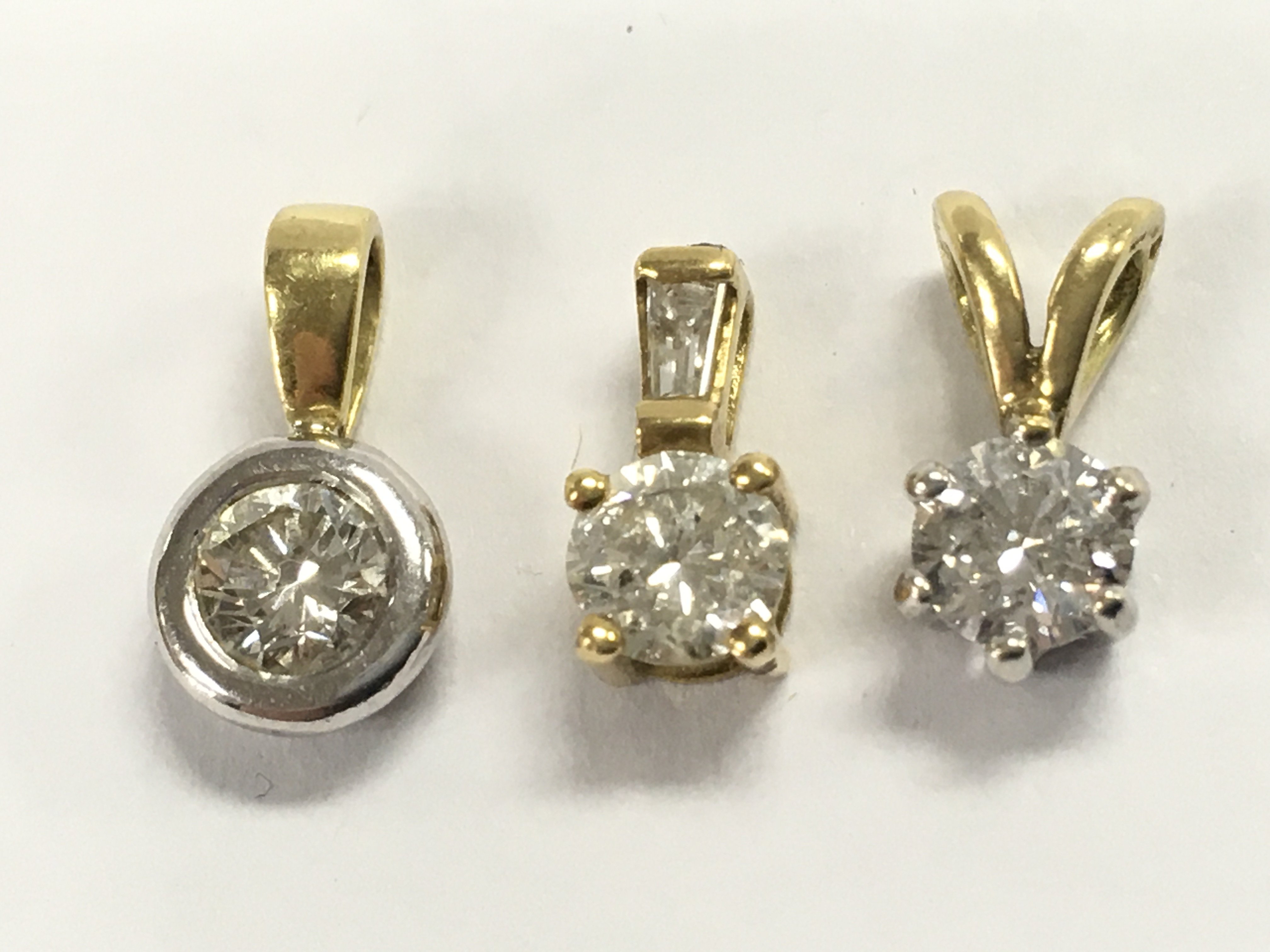 18ct gold diamond solitaire pendants , total weight 2.5g . Postage category A