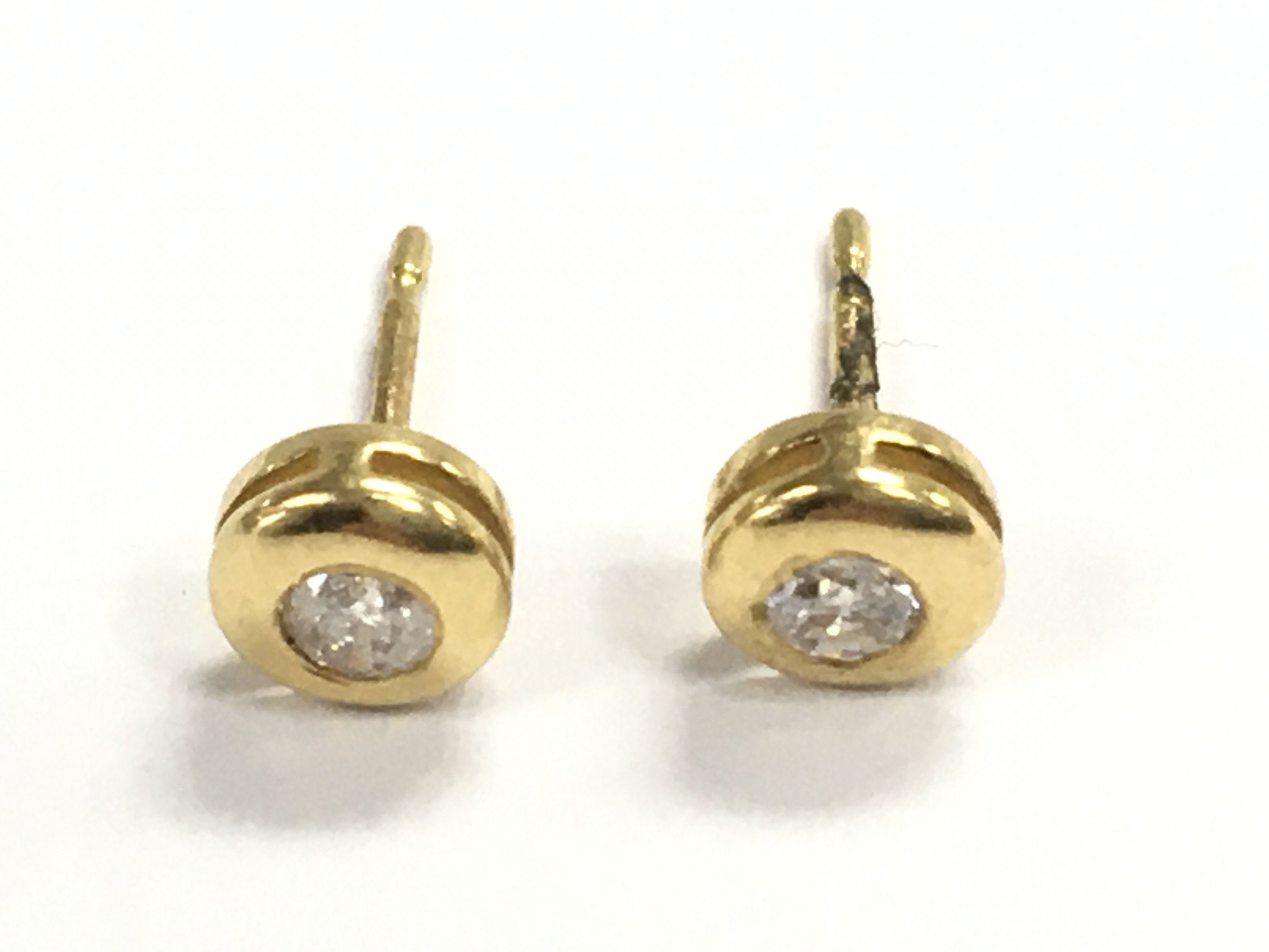 A pair of 18ct gold rubover diamond studs , total weight 0.8g.postage category a