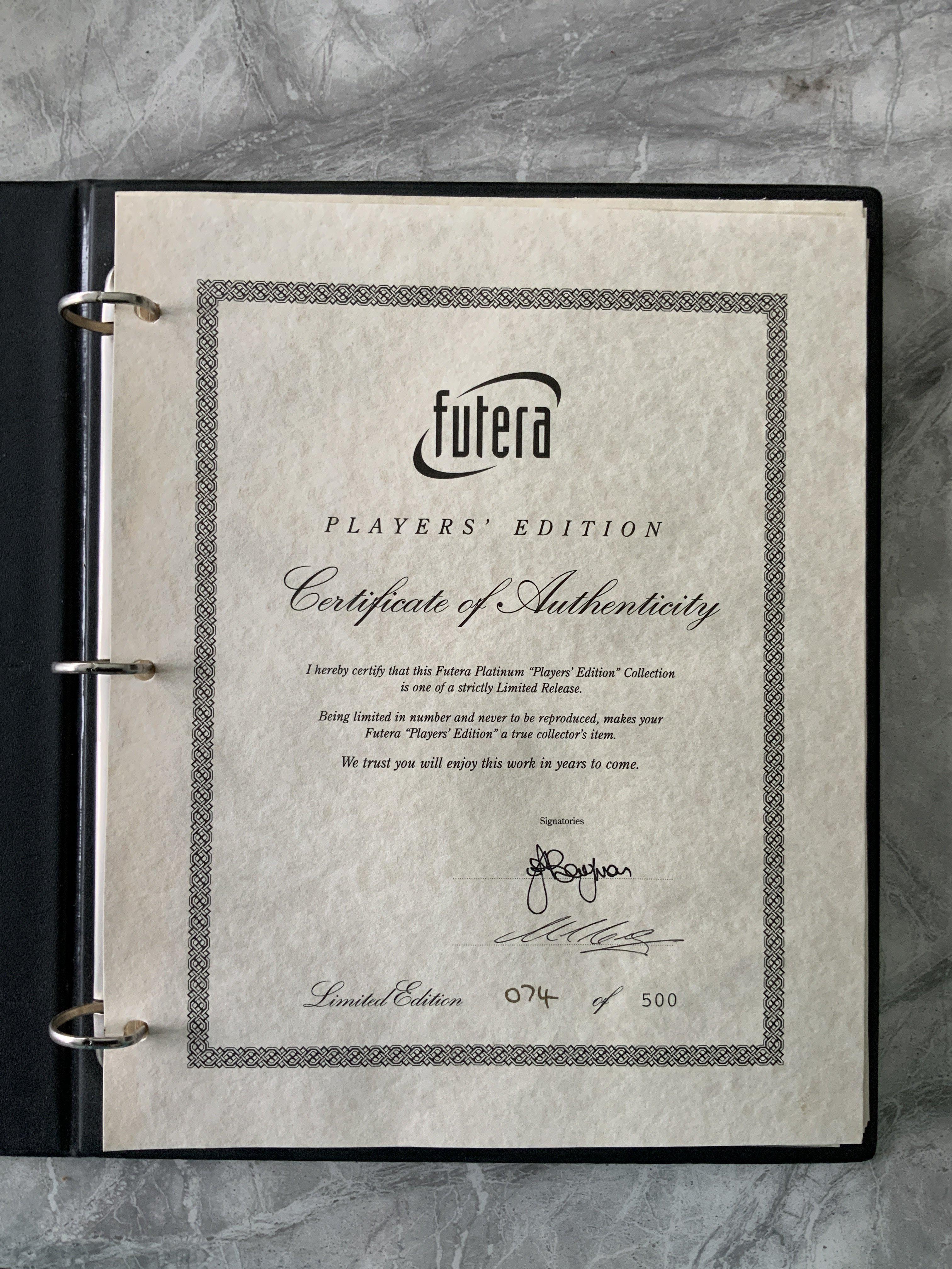 Aston Villa Complete Futera Football Card Set: Limited edition number 74 of 500 from 1998 with certificate and collectors folder. Full set of 90 cards.