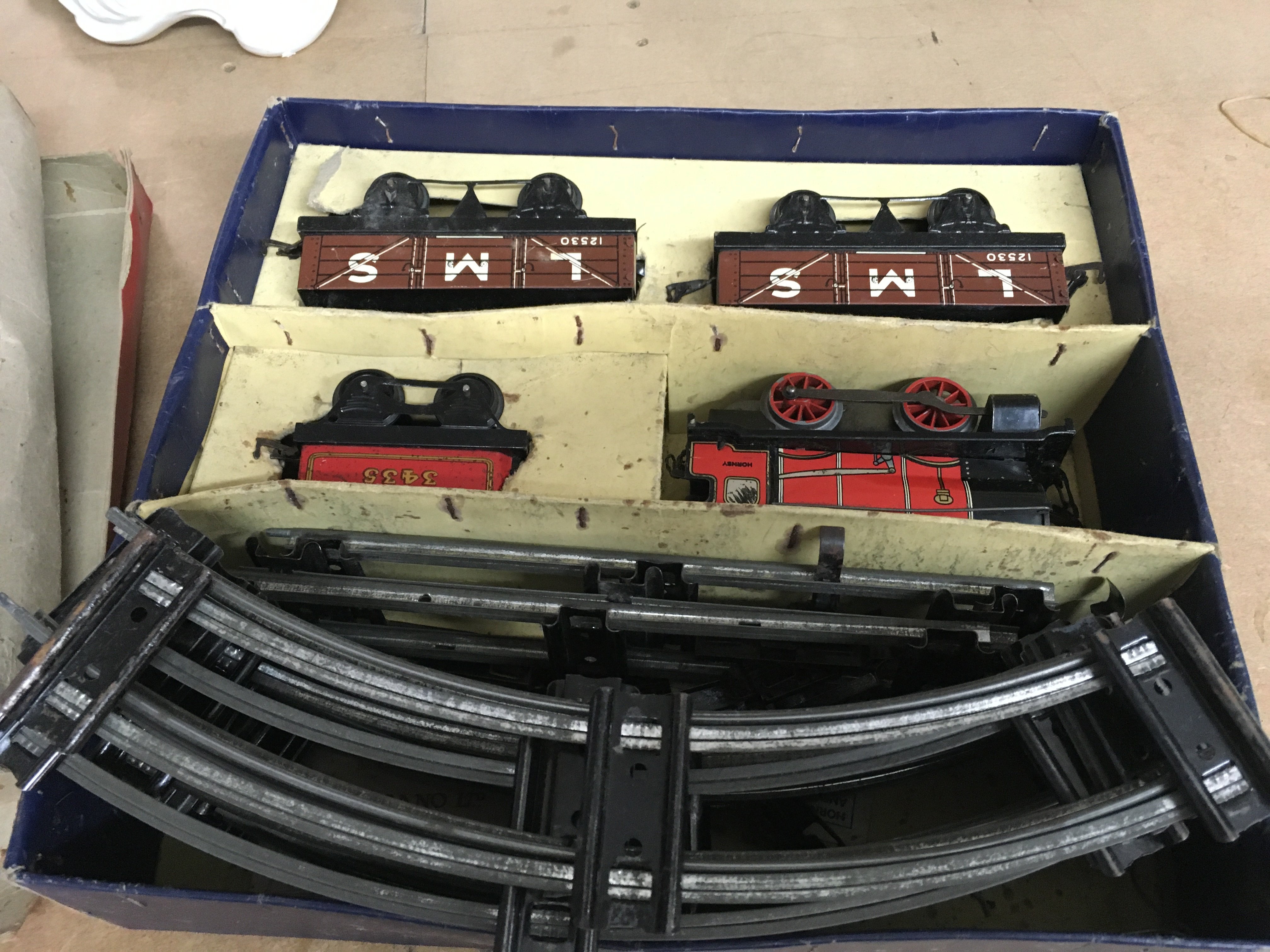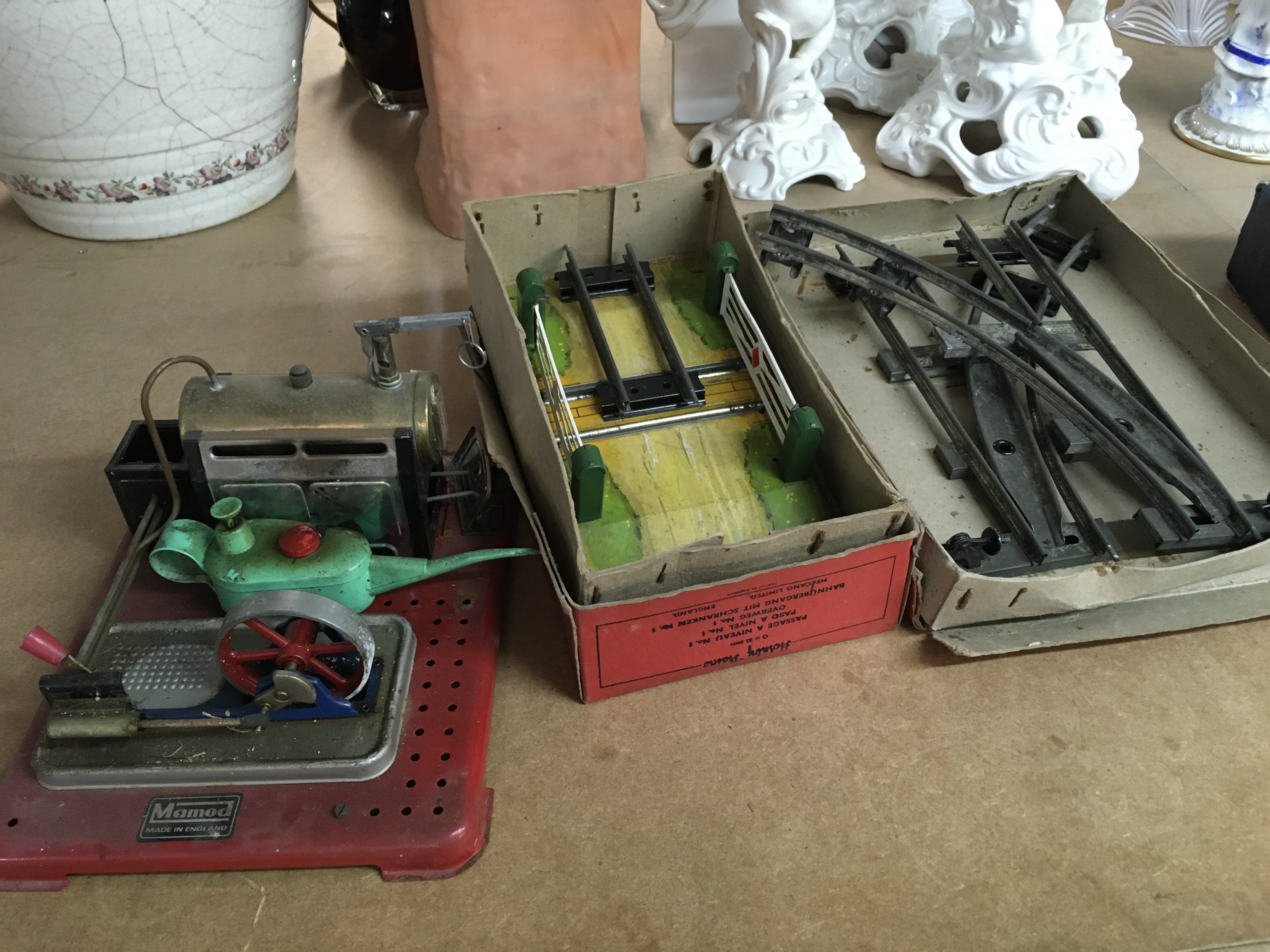 Steam engines including a boxed Mamod steam tractor and boxed Hornby tracks and carriages. This lot cannot be posted