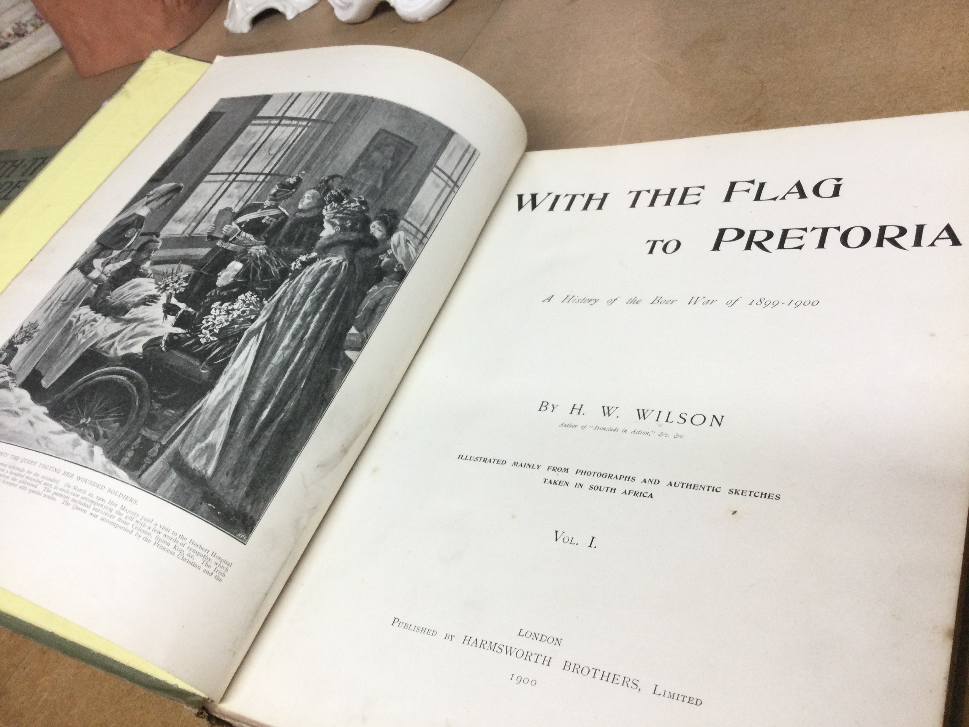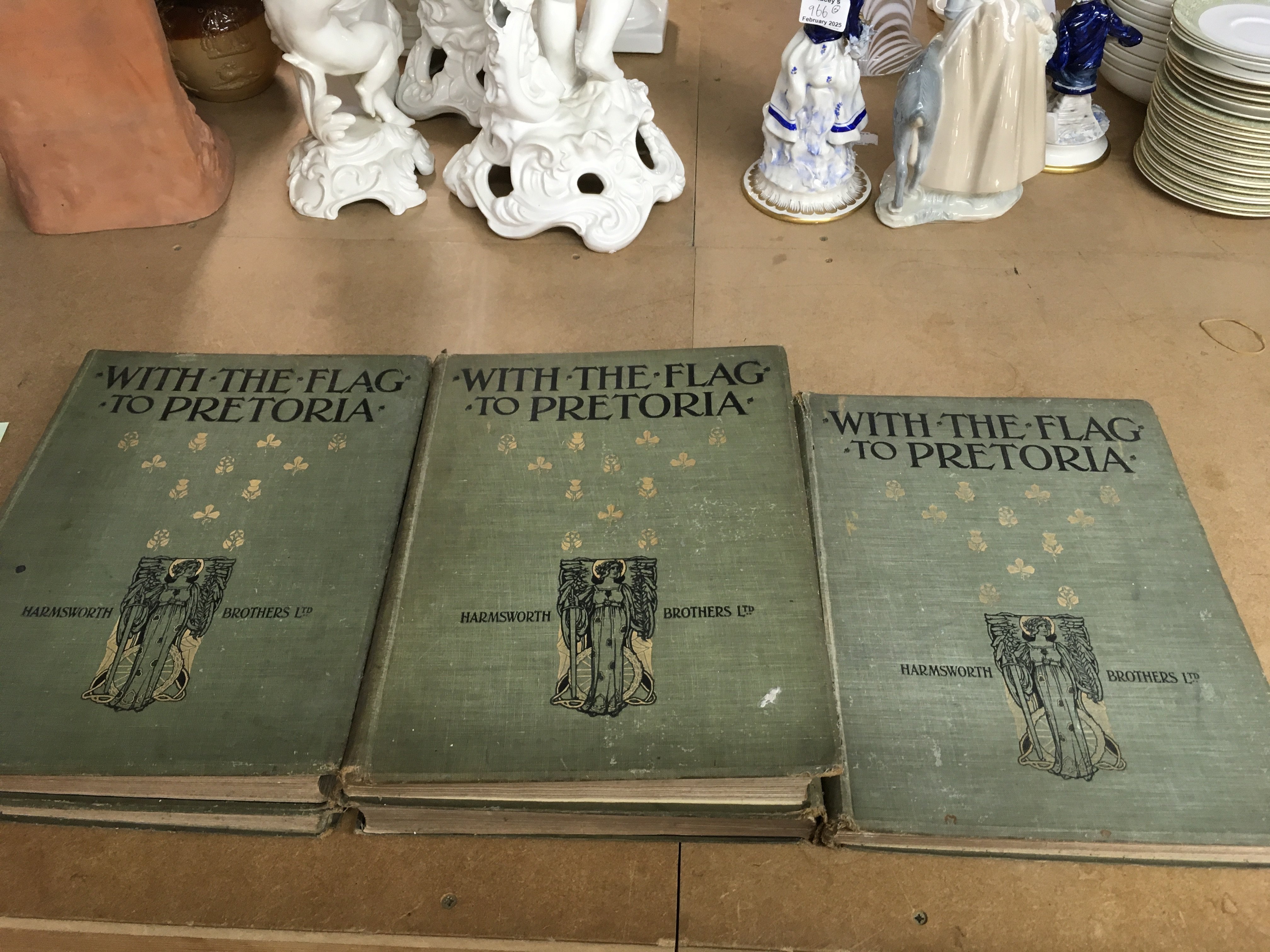A box of Victorian books comprising six volumes of old and new London plus two supplemental volumes and six volumes of With The Flag to Pretoria , a history of the Boer war published in 1900. This lot cannot be posted