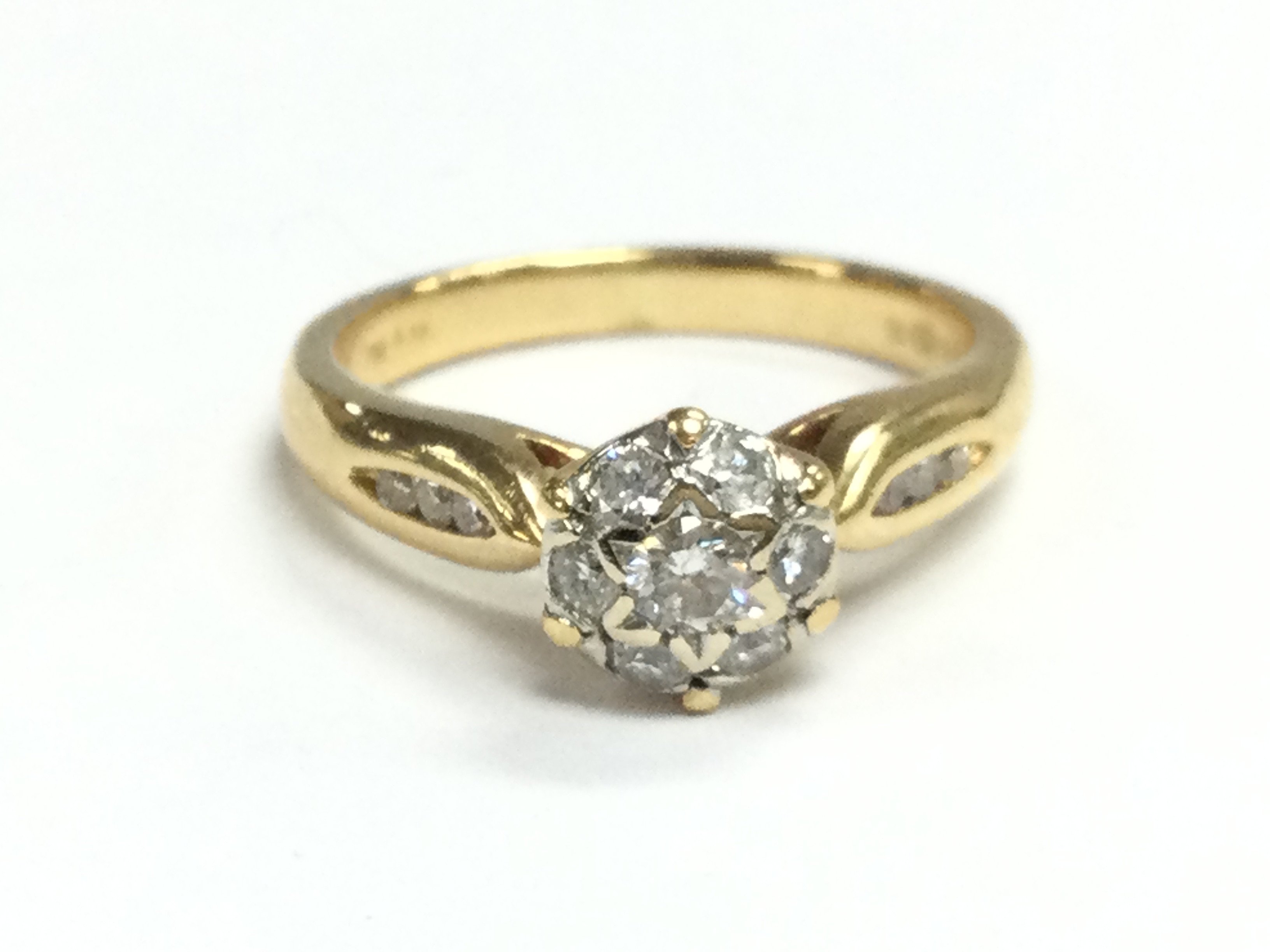 An 18ct gold diamond cluster ring , size I/J. Total weight 3.5g Postage category A