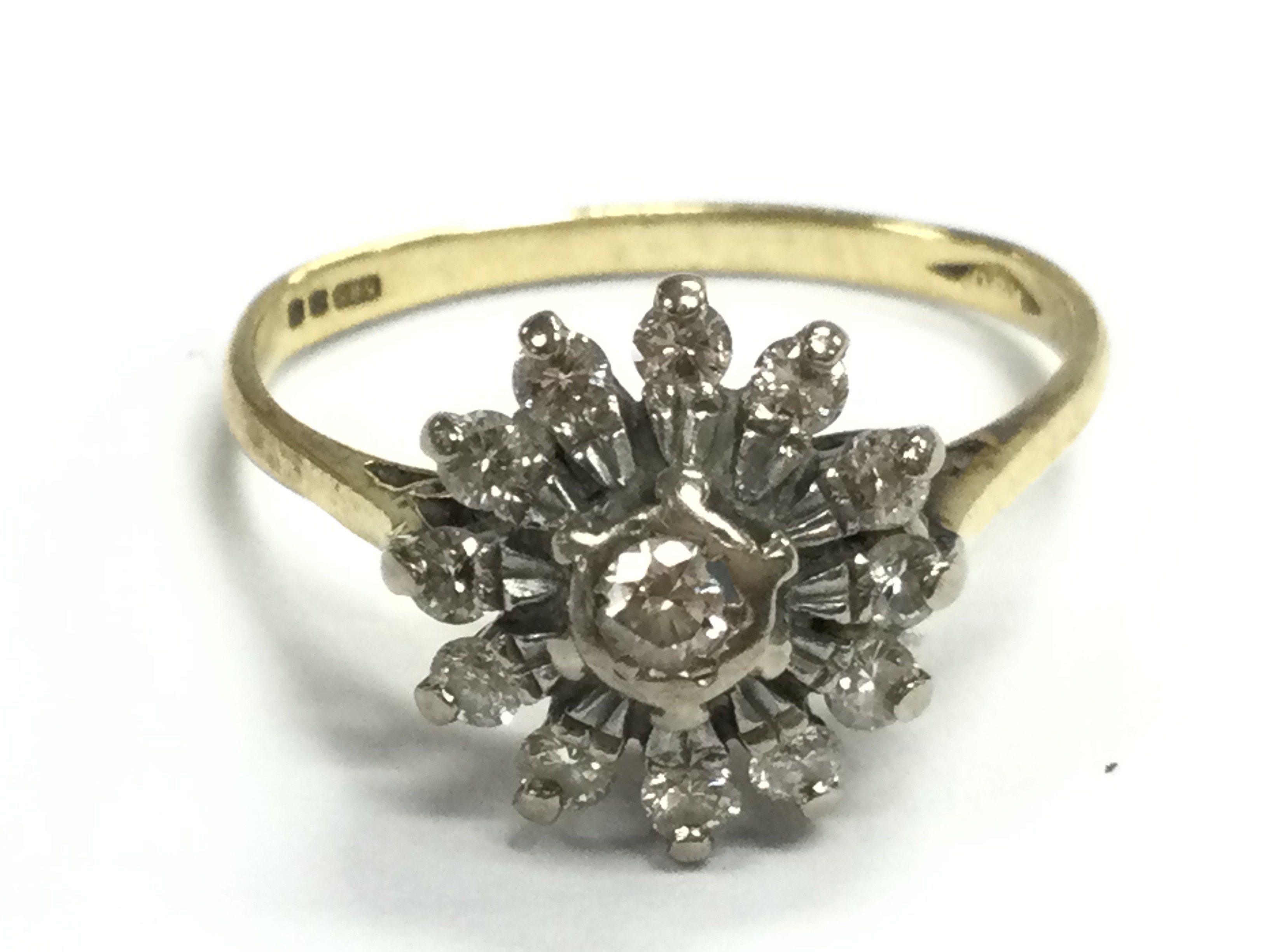 A 14ct gold diamond cluster ring, total weight 3g. Size K. Postage category A