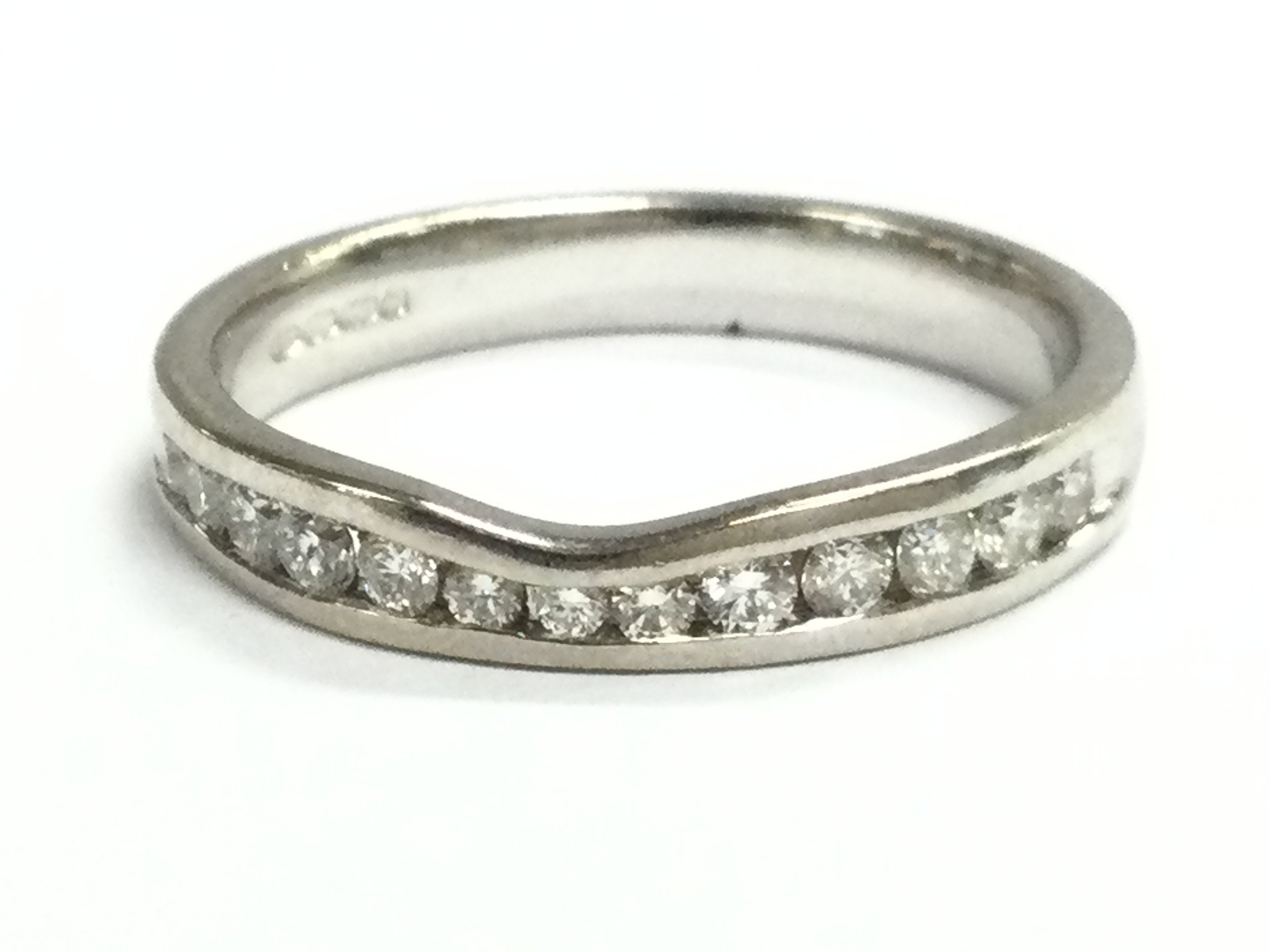 An 18ct white gold ring diamond 1/2 hoop ring. Size O. 3.7g Postage category A