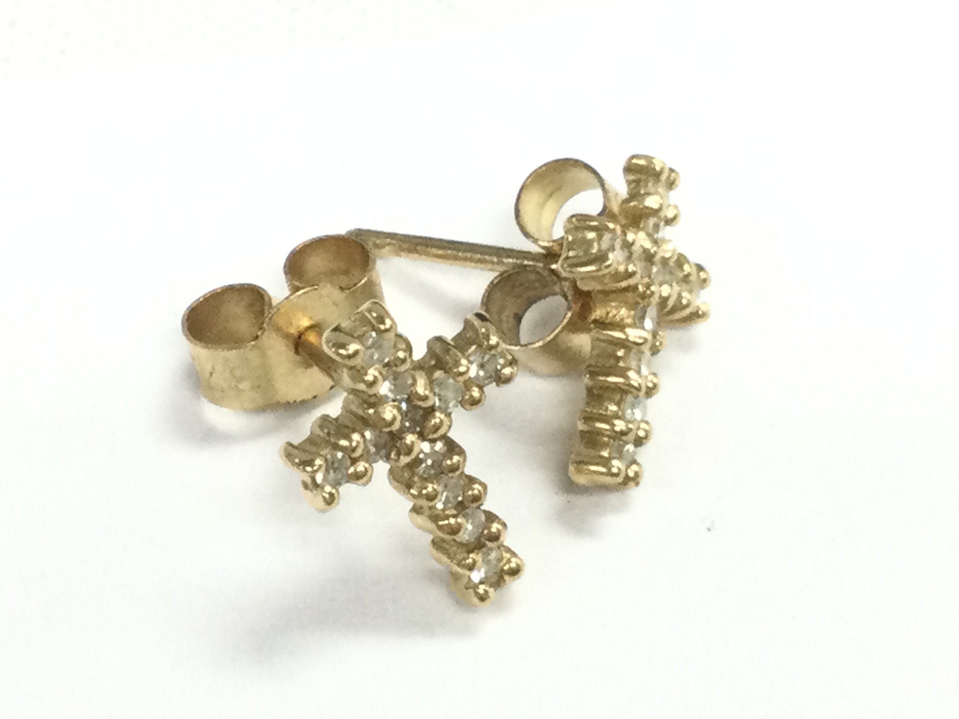 A 9ct gold diamond set cross studs , 1g total weight. Postage category A