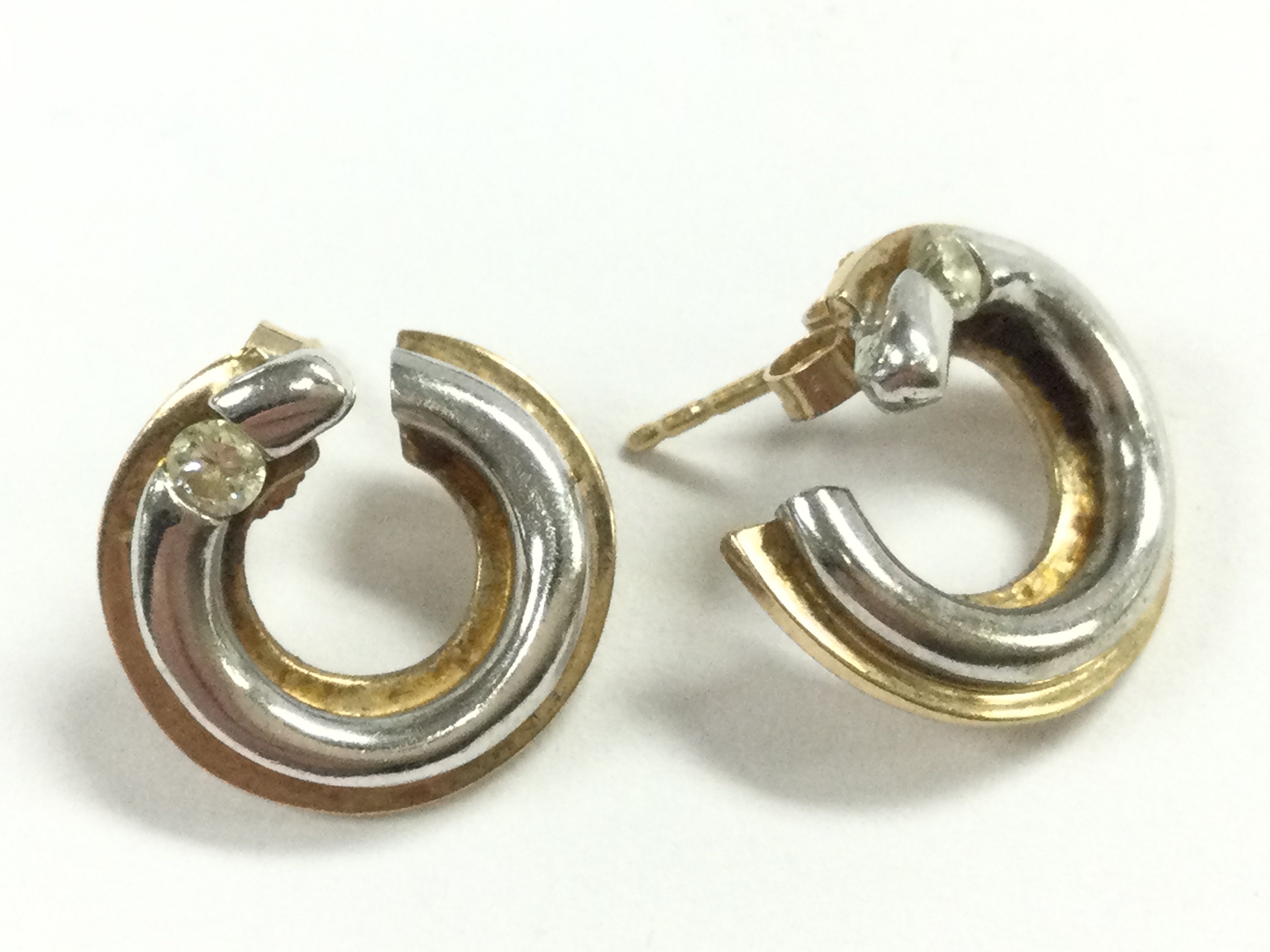 10ct yellow and white gold diamond circle earrings , 4.6g total weight. Postage category A