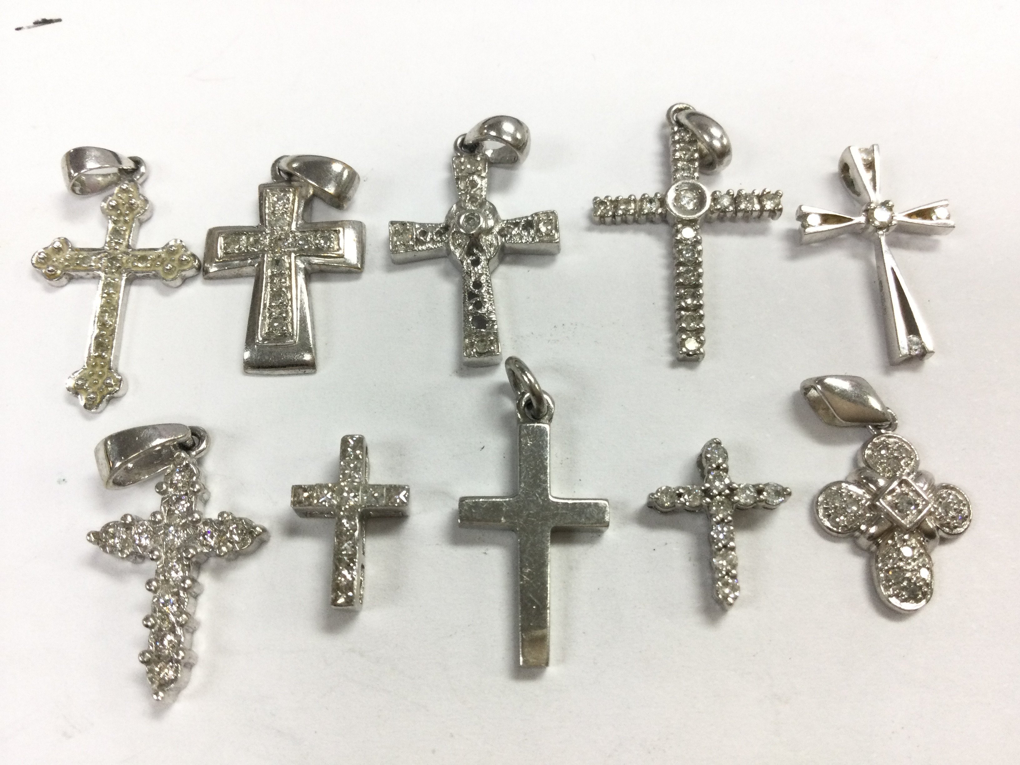 9ct white gold diamond inset cross pendants , total weight 11g. Postage category A