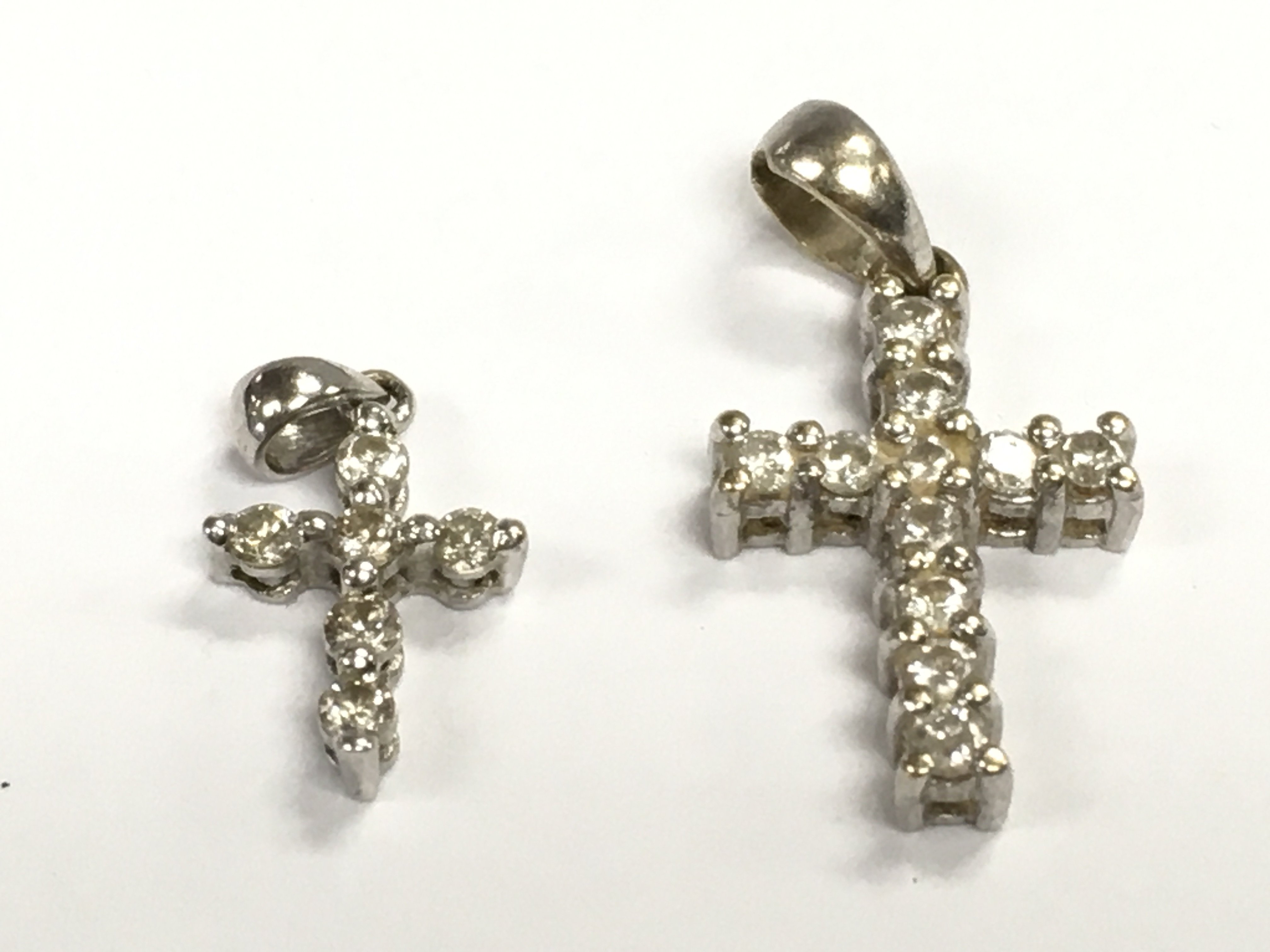 18ct white gold diamond cross pendants , total weight 1.9g . Postage category A