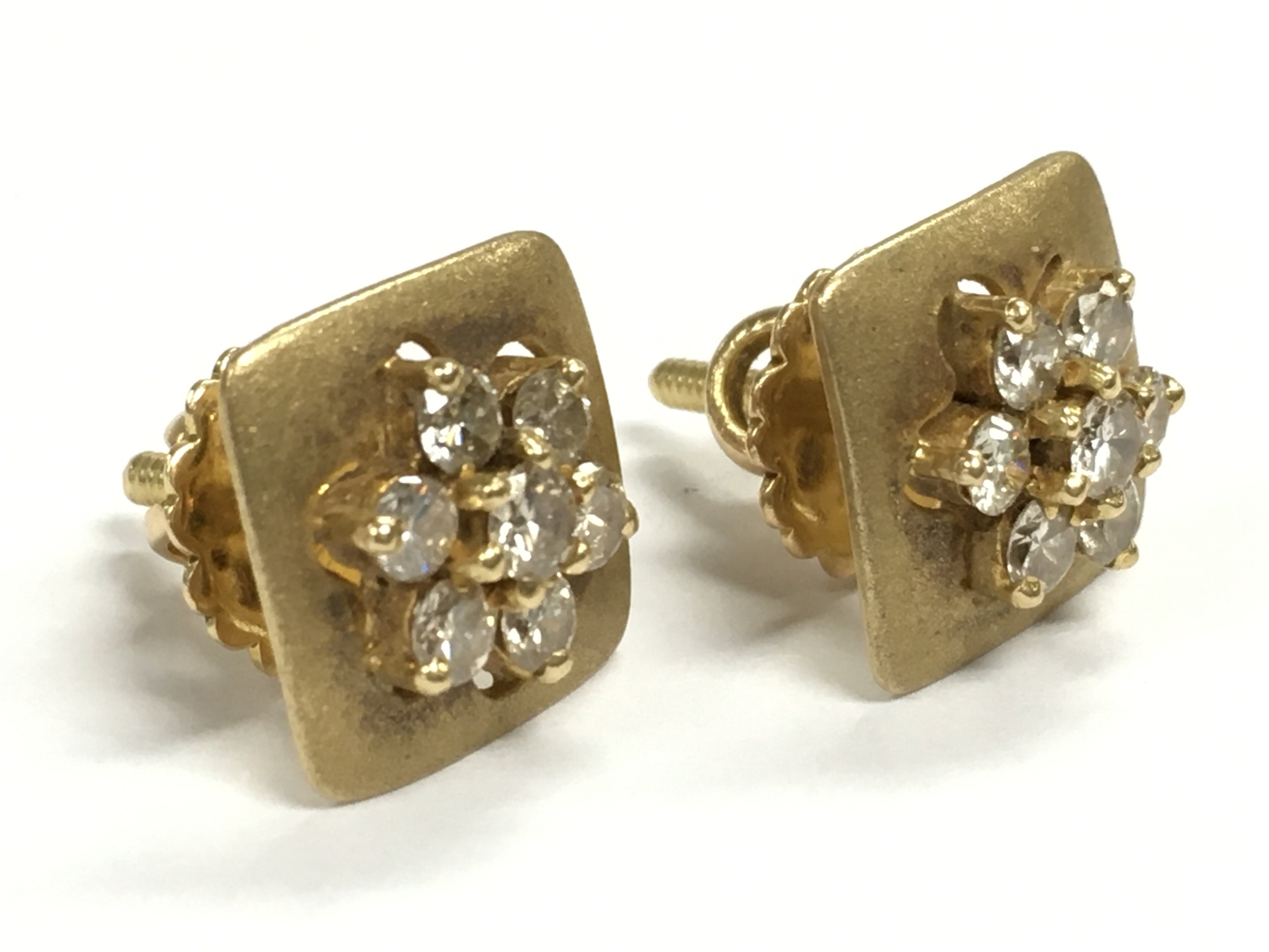 A pair of 18ct gold diamond cluster square earrings , 6g total weight. postage category A