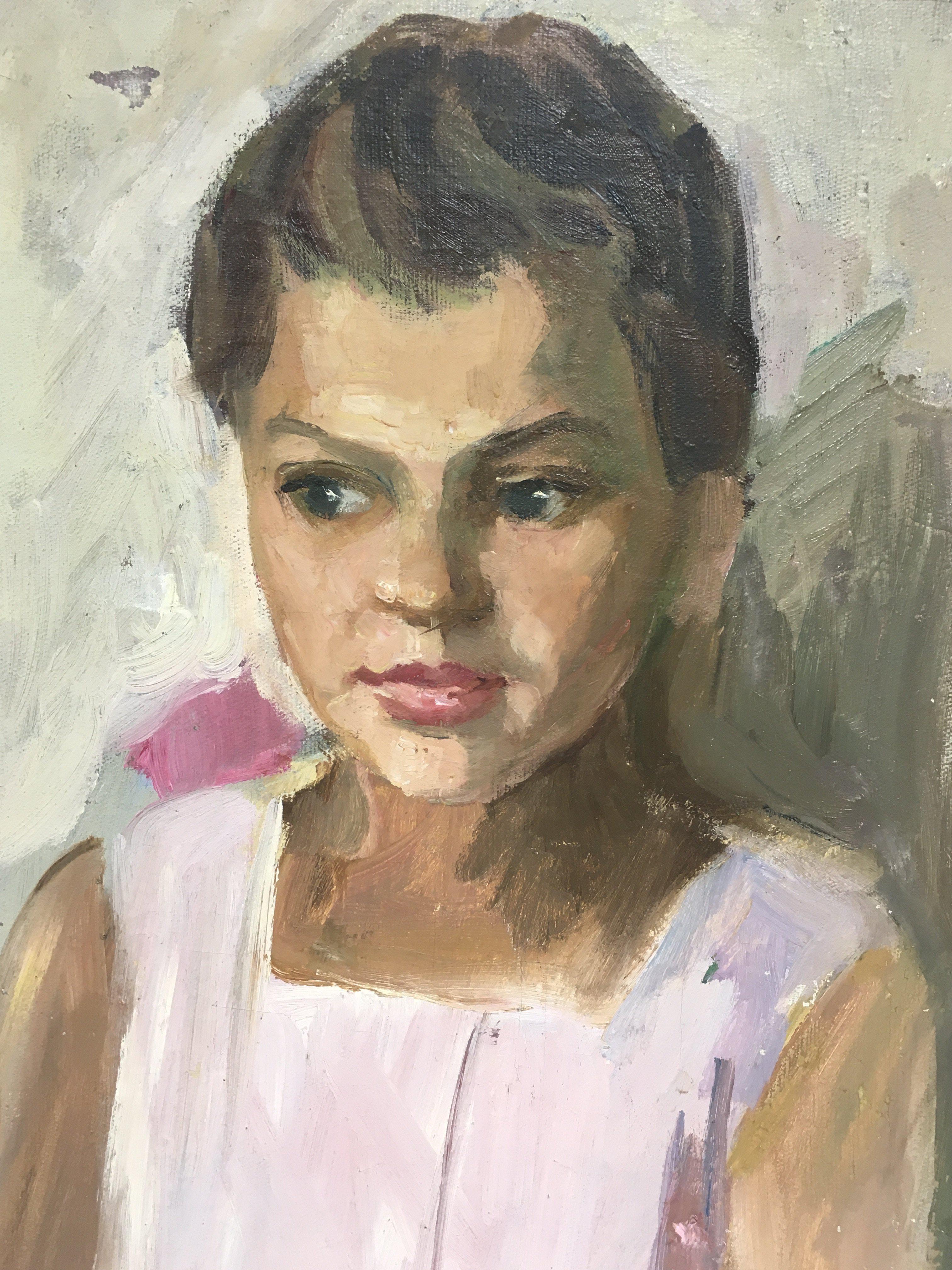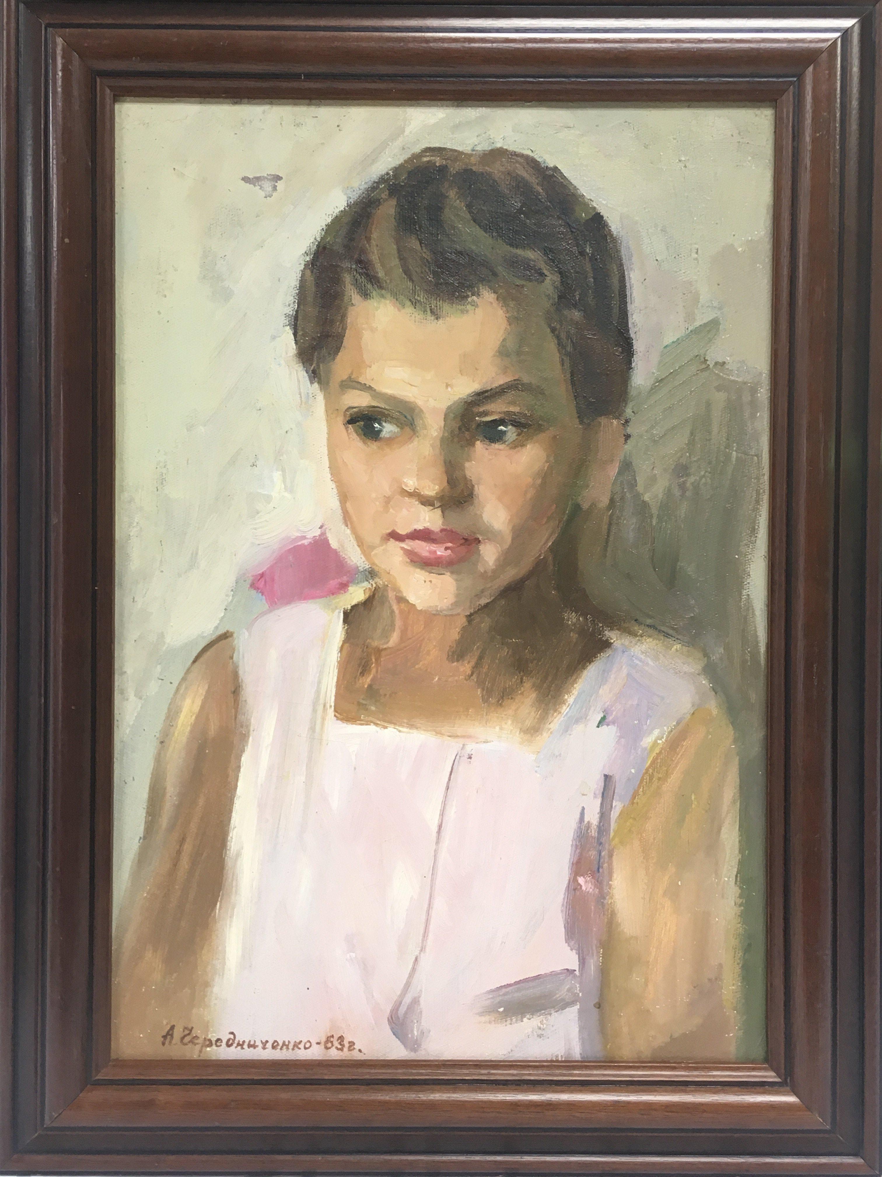A framed oil on canvas Anna Cherednichenko (1917-2003) painting, portrait of a young girl. Dimensions 45x60cm.