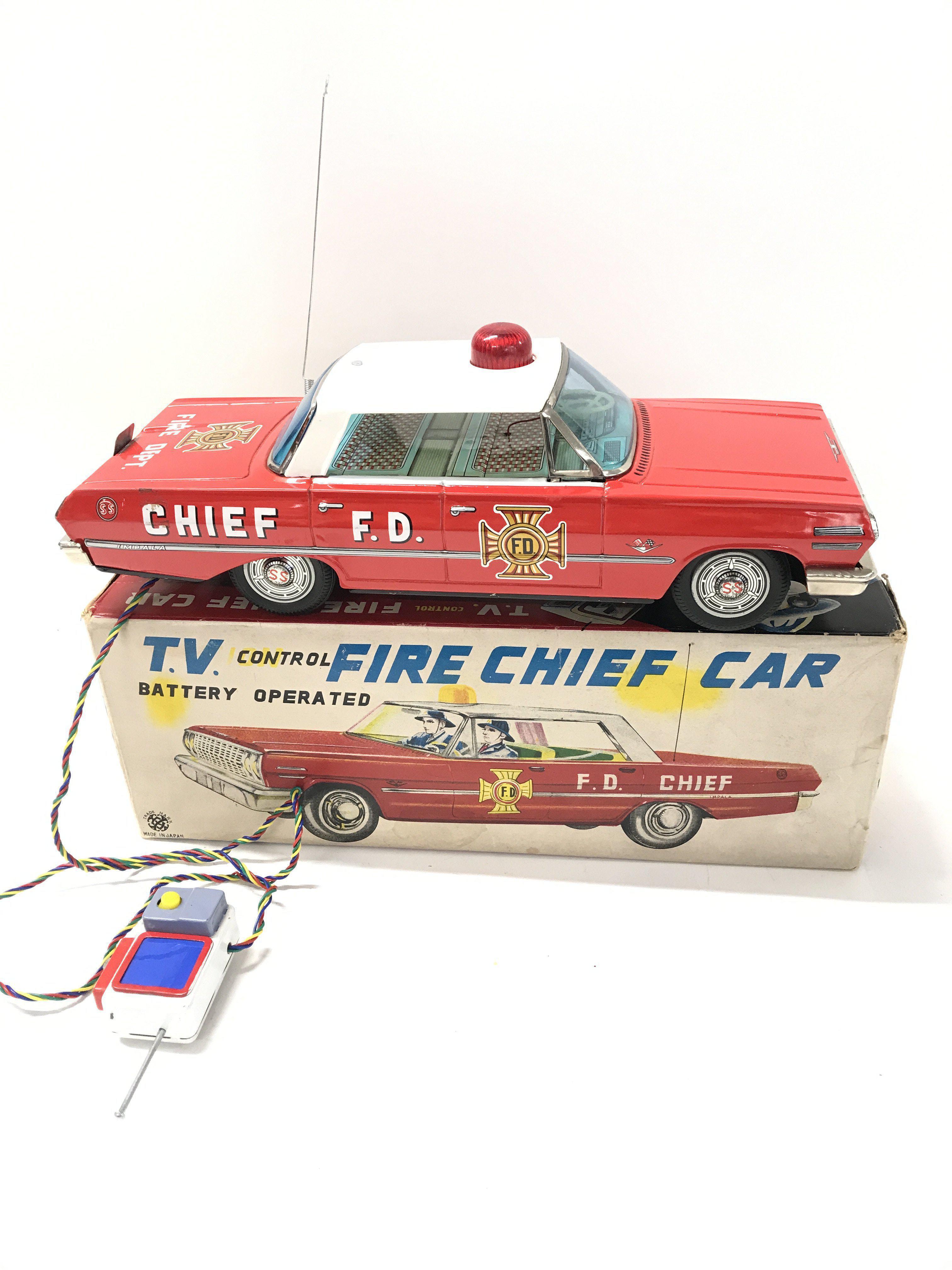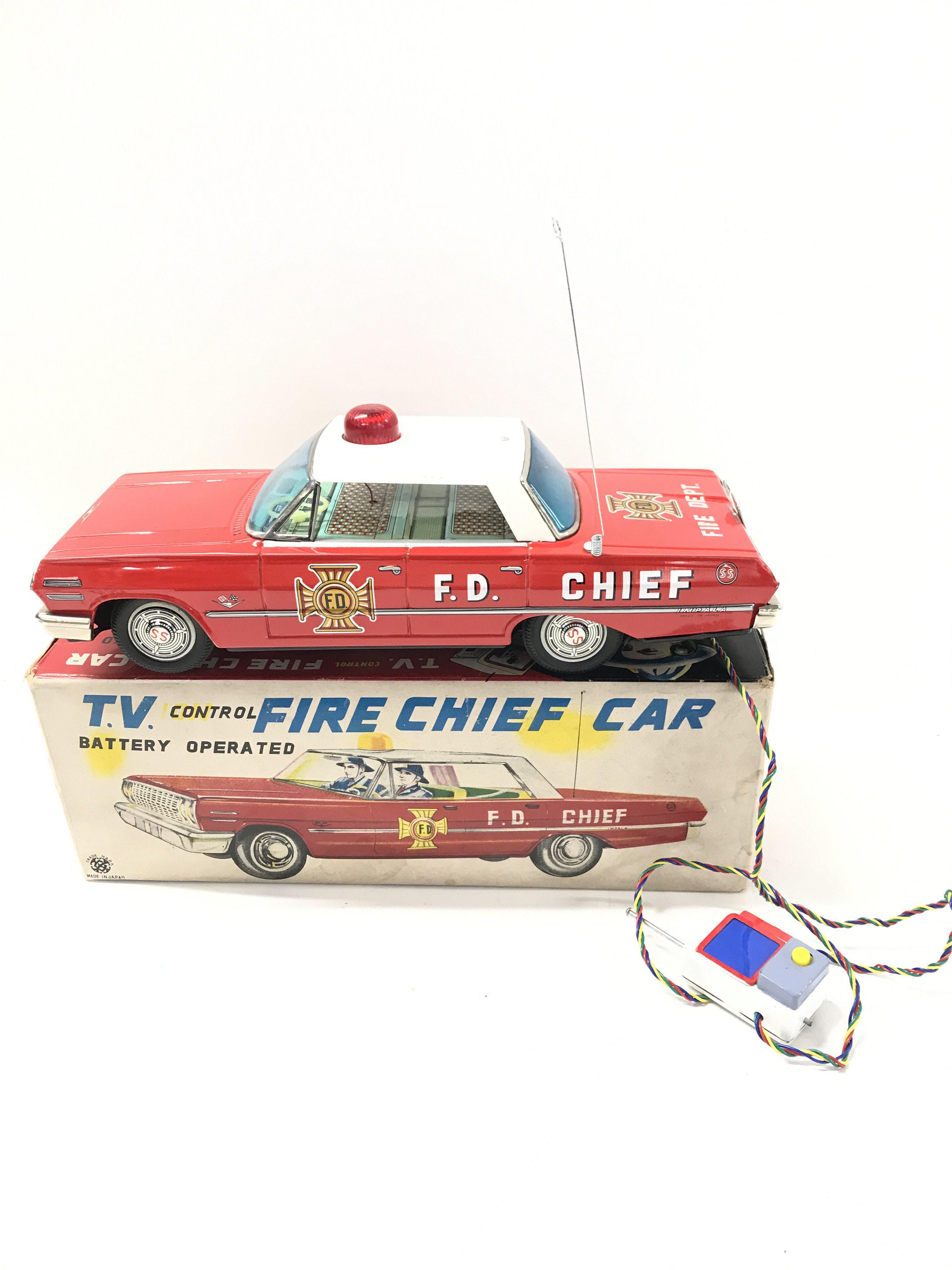 A Boxed Japanese Tin Plate Battery Operated Fire Chief Car.