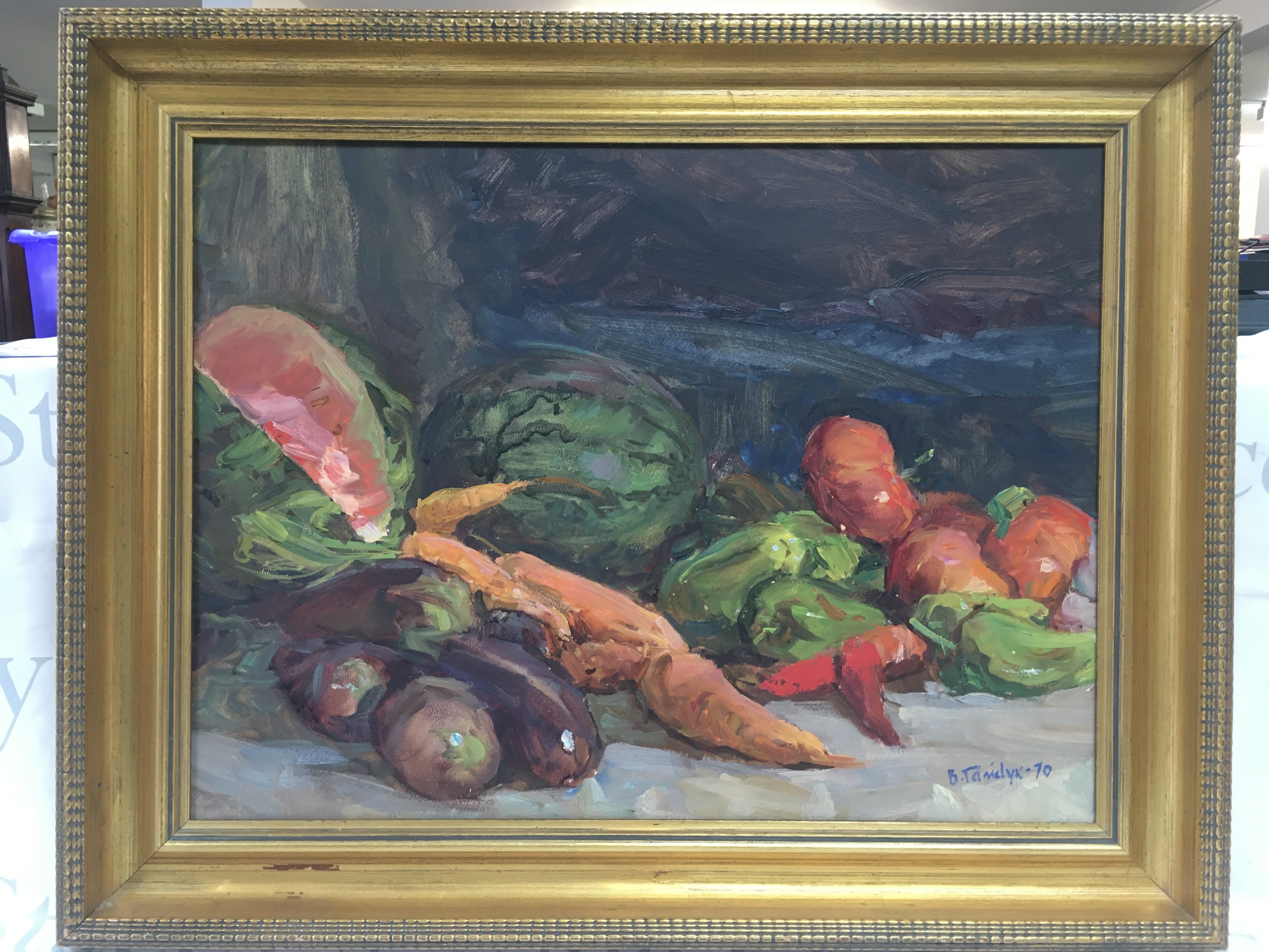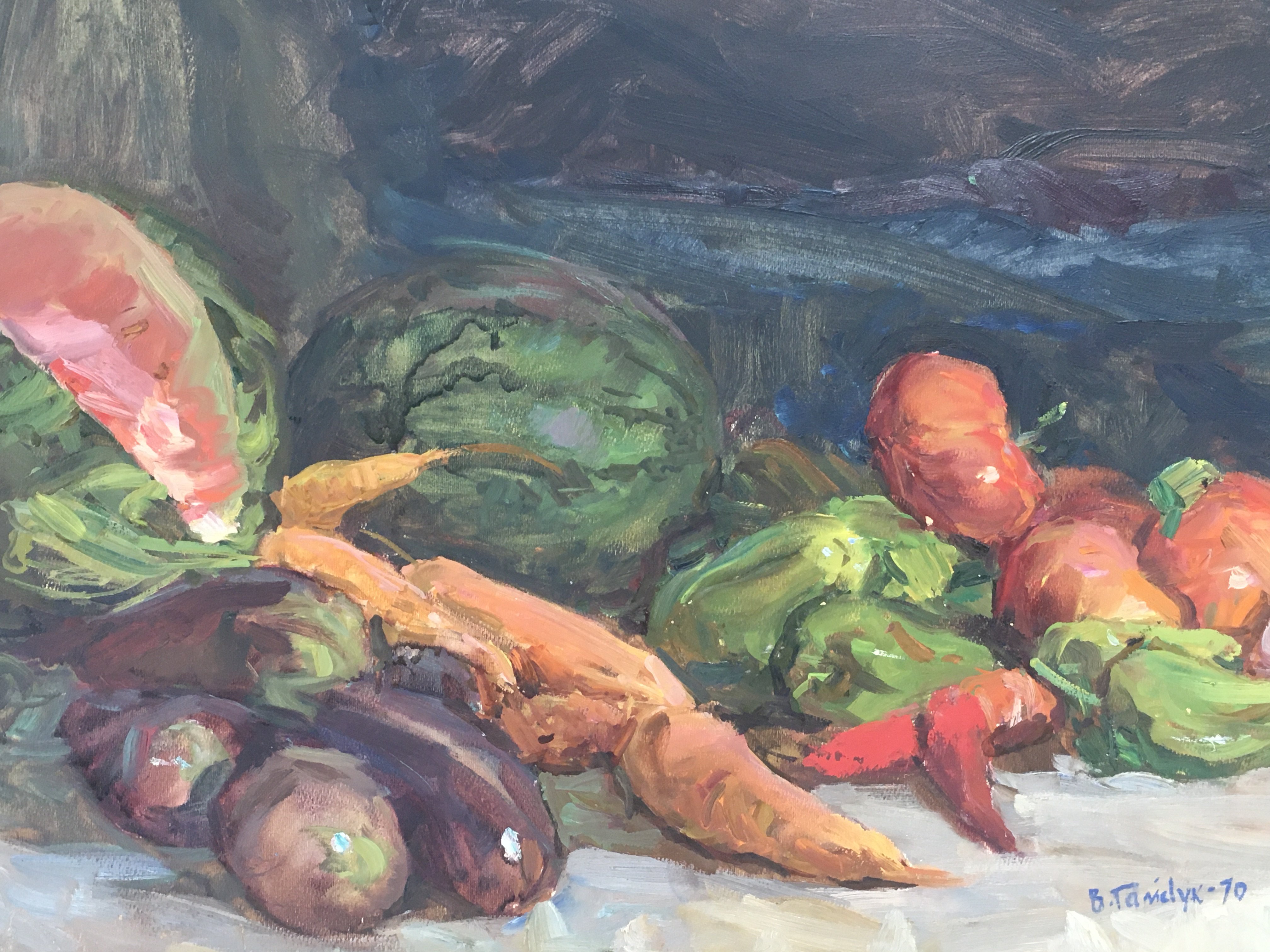 A Oil painting by Viktor Gaiduk (1926-1992) The Village still life. Dimensions 74x58cm
