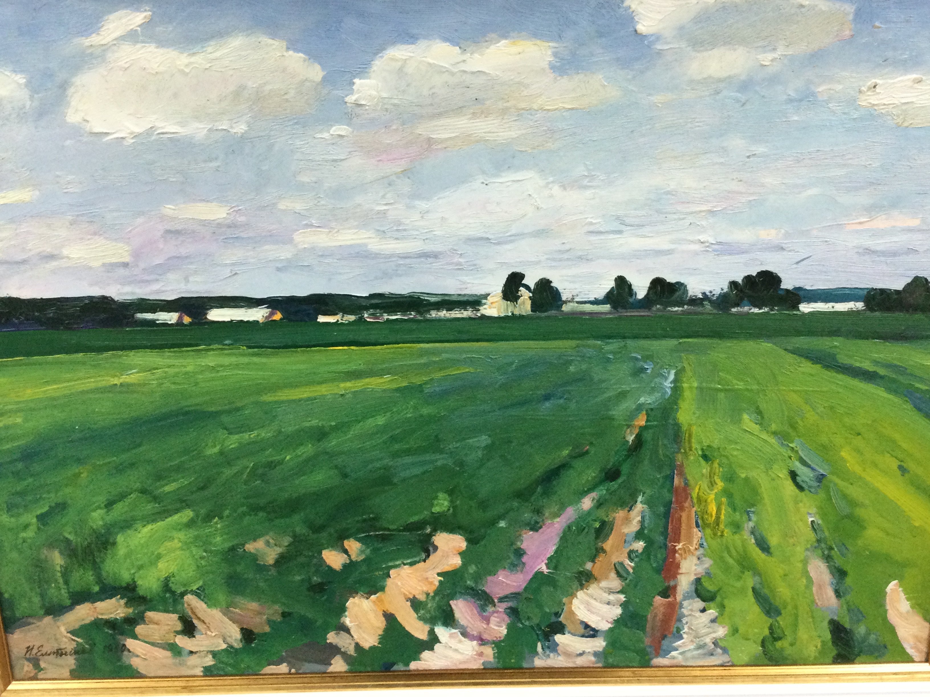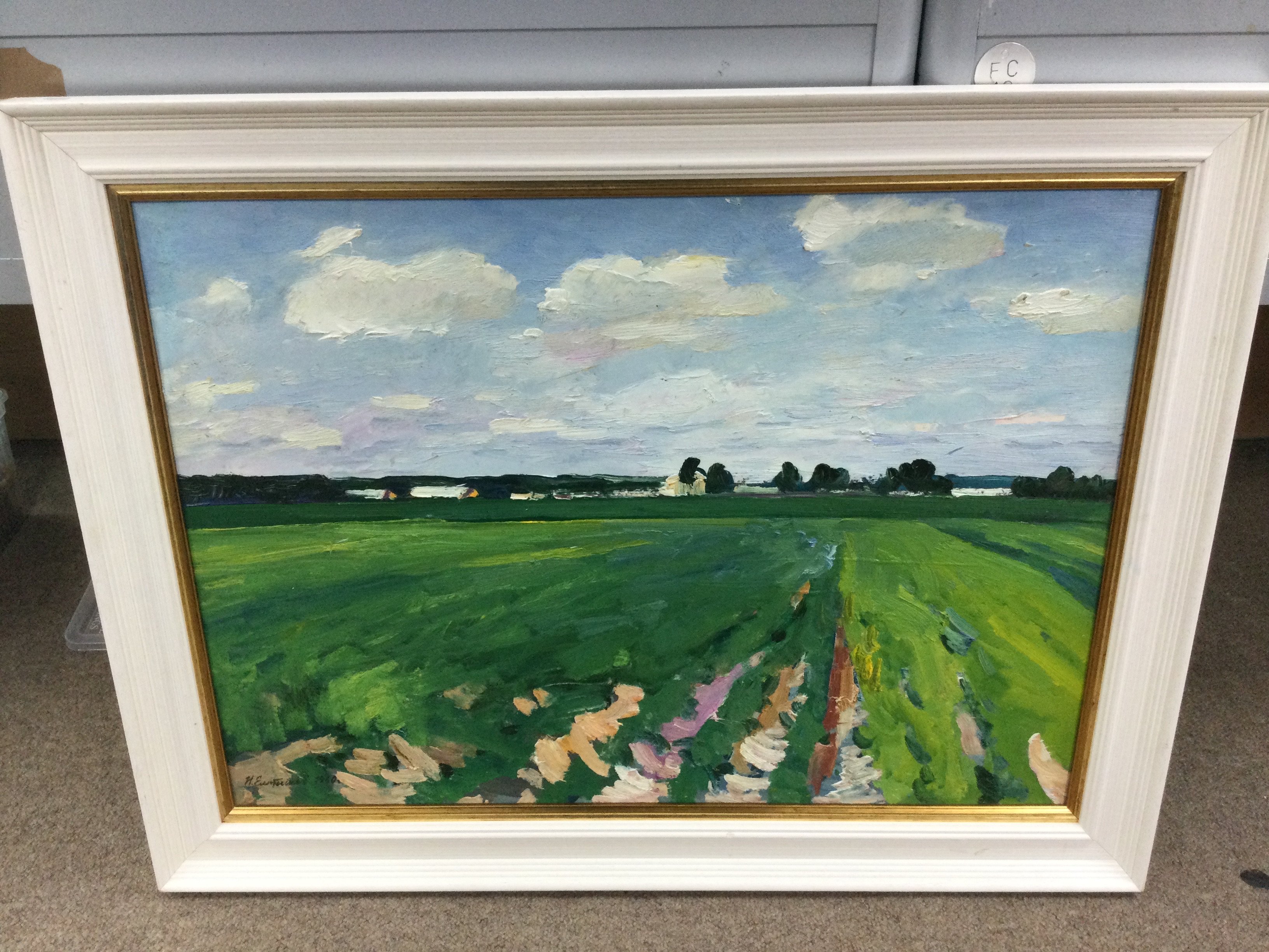 An oil on canvas painting or a rural field view by Nikolai Eltyshev (1922-2012). Dimensions 80x62cm
