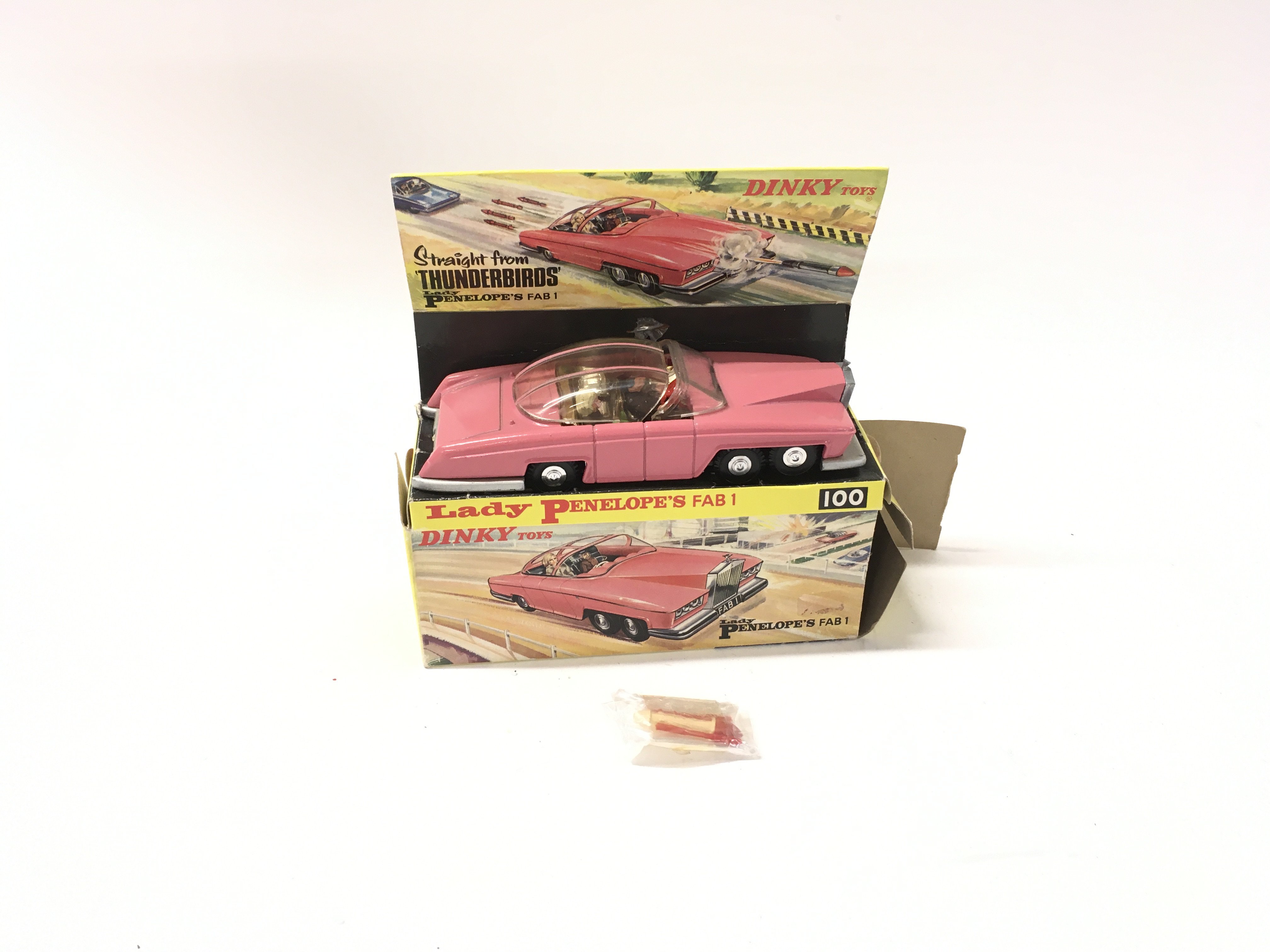 A boxed Corgi no.100.. Lady Penelopes FAB 1. Has original plynth and missiles.