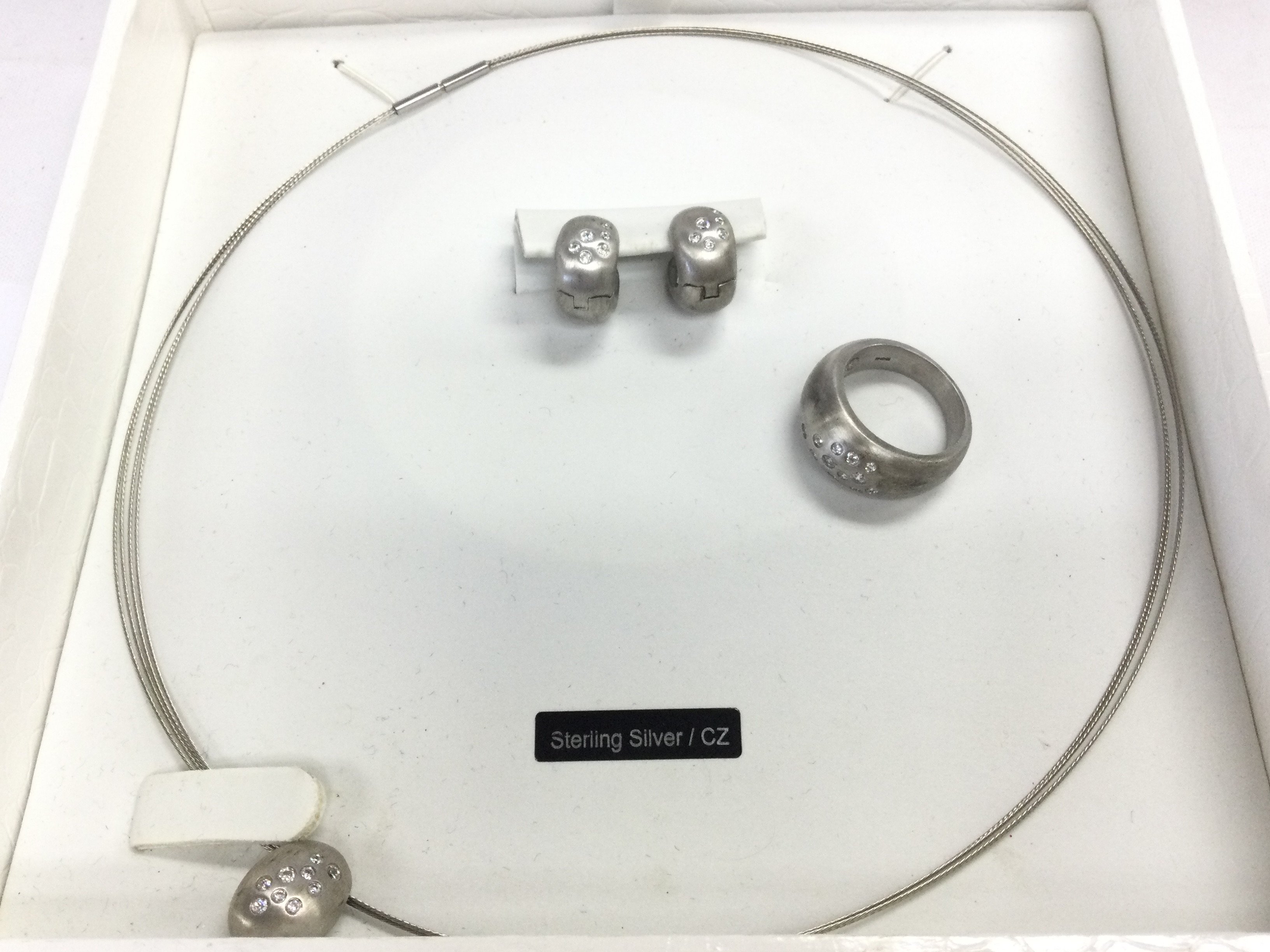 A collection of silver jewellery including a necklace, earrings and a ring . Postage category B