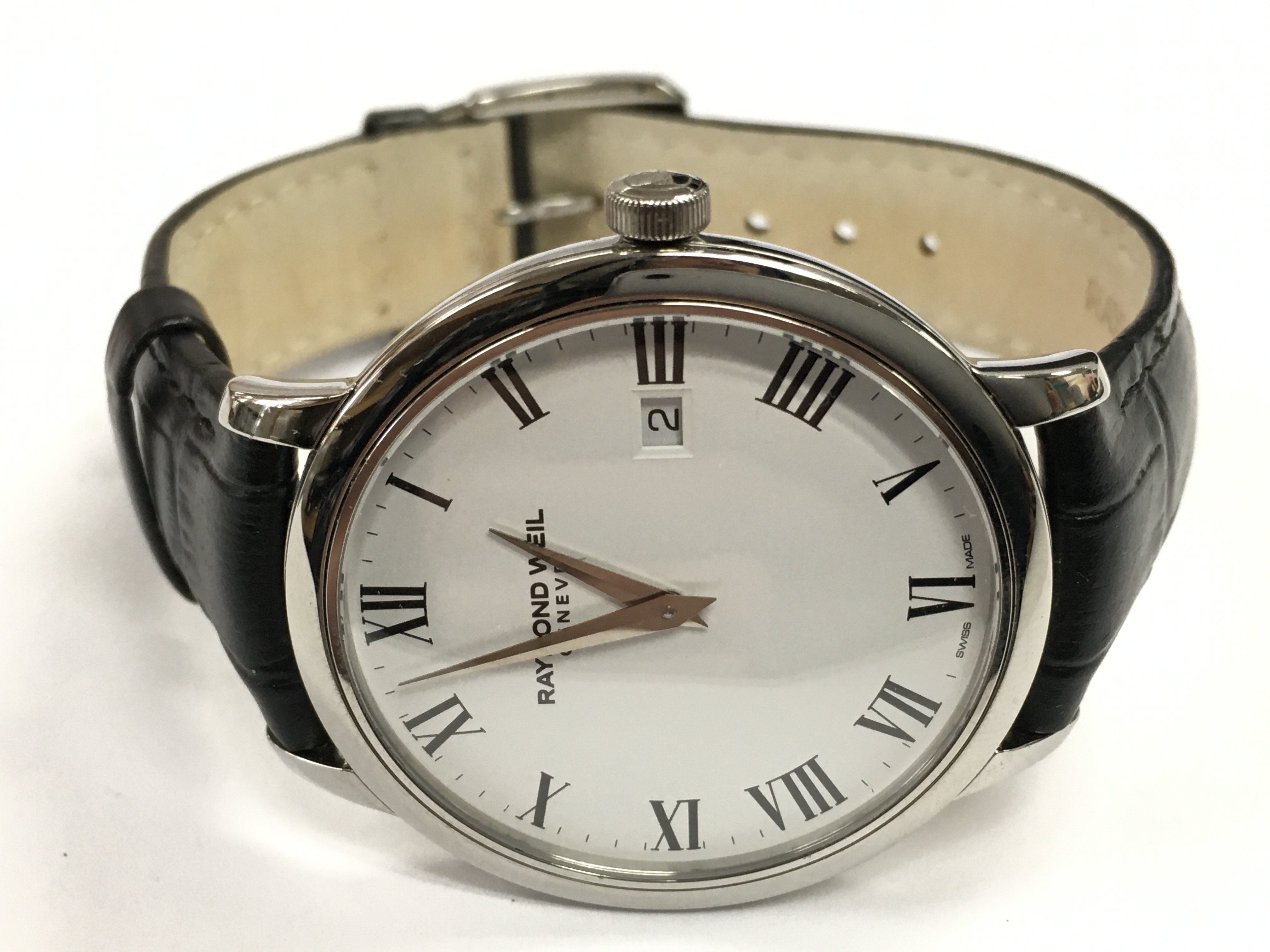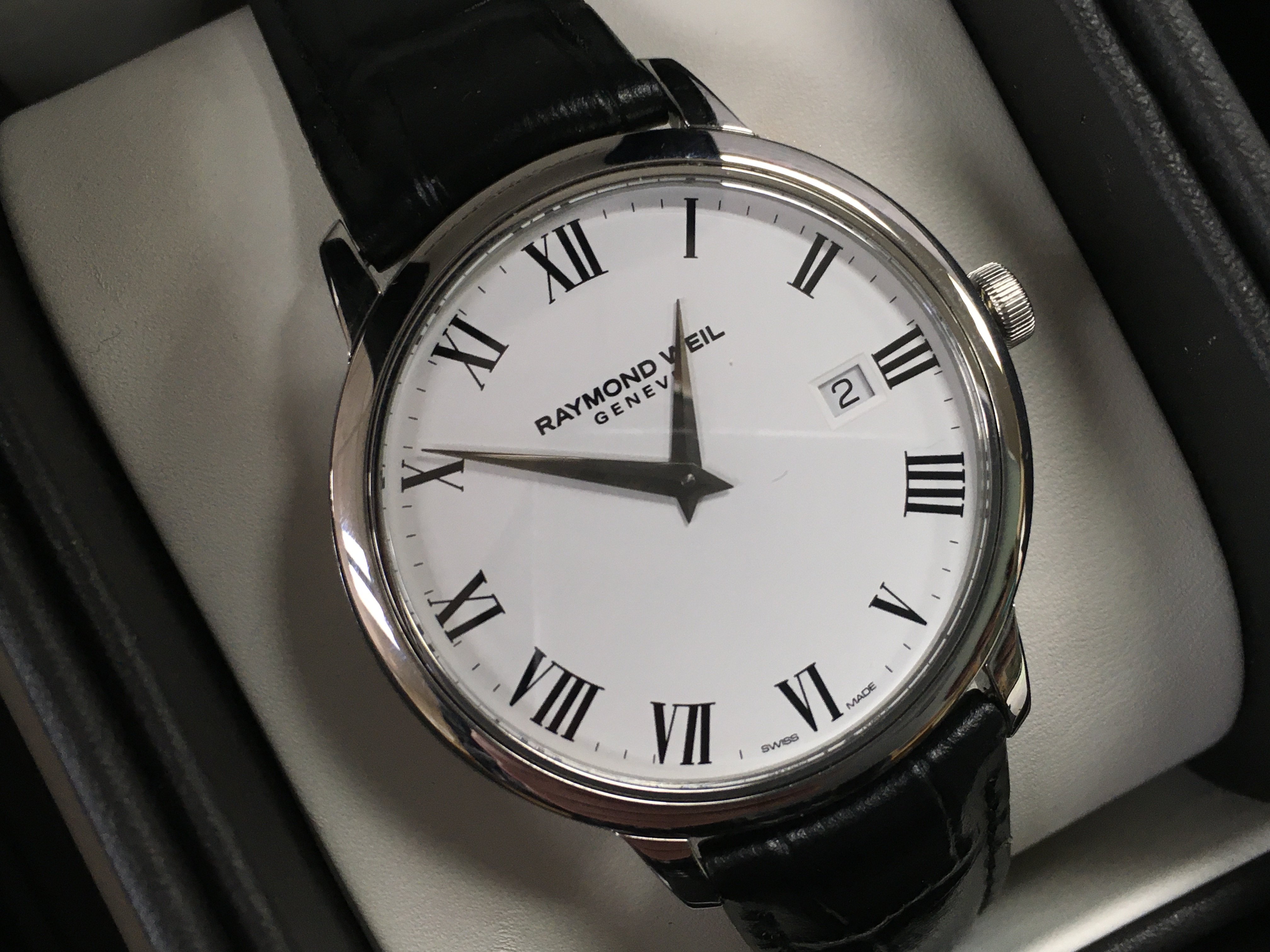 A boxed as new Gents Raymond Weil watch. Postage category b
