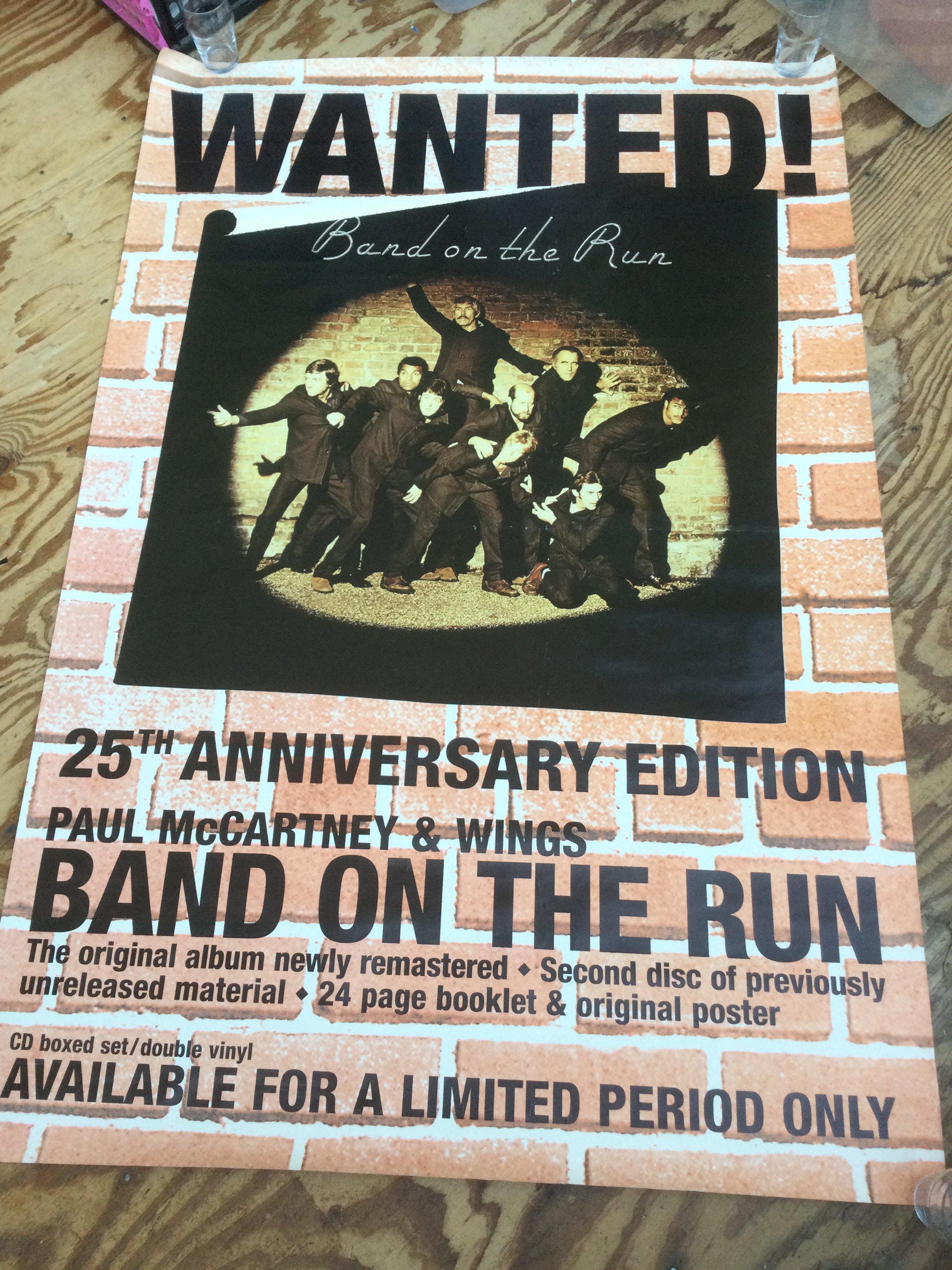 A large poster for the 25th anniversary edition of 'Band On The Run' by Wings, approx 102cm x 152cm.