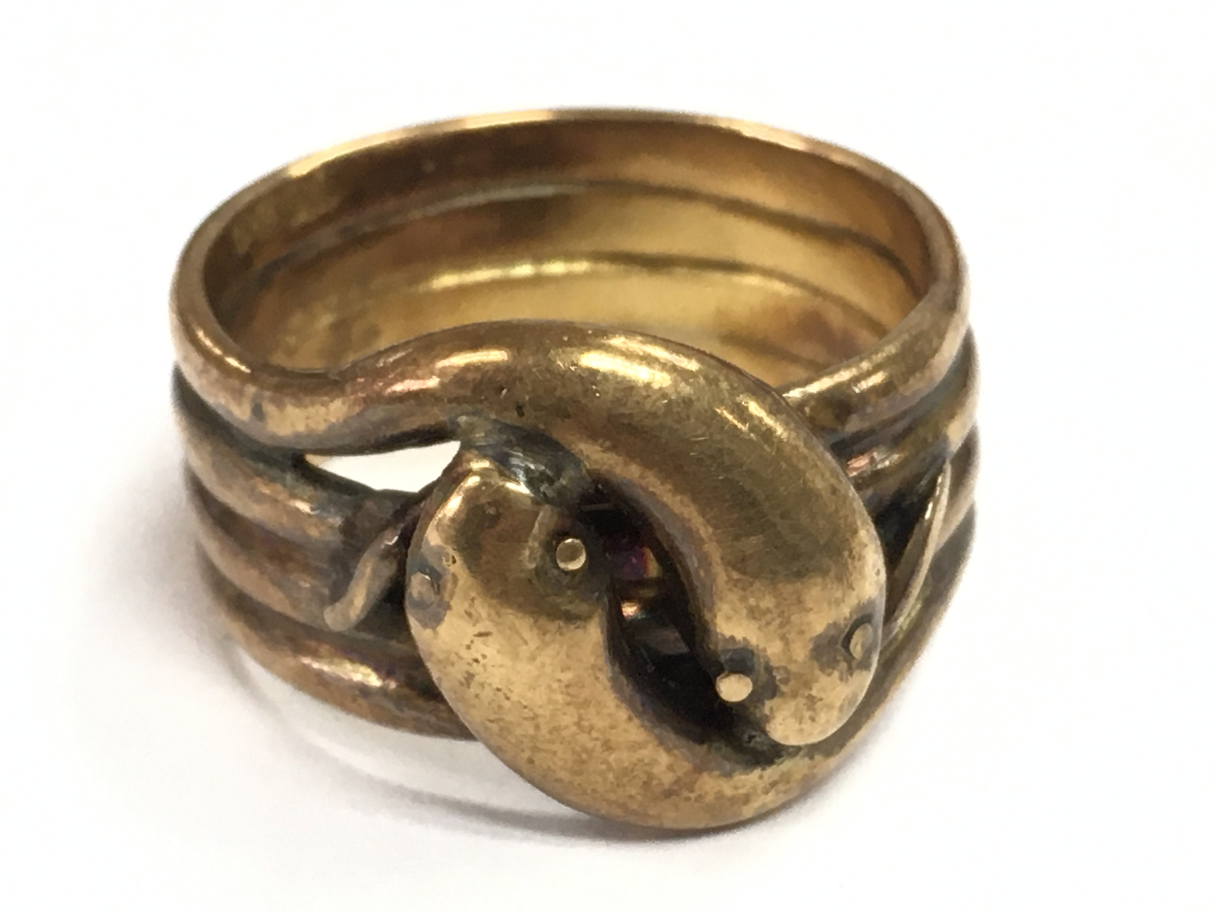 A large gents 18ct gold snake ring, total weight 23.9g. Size 4. Postage category A