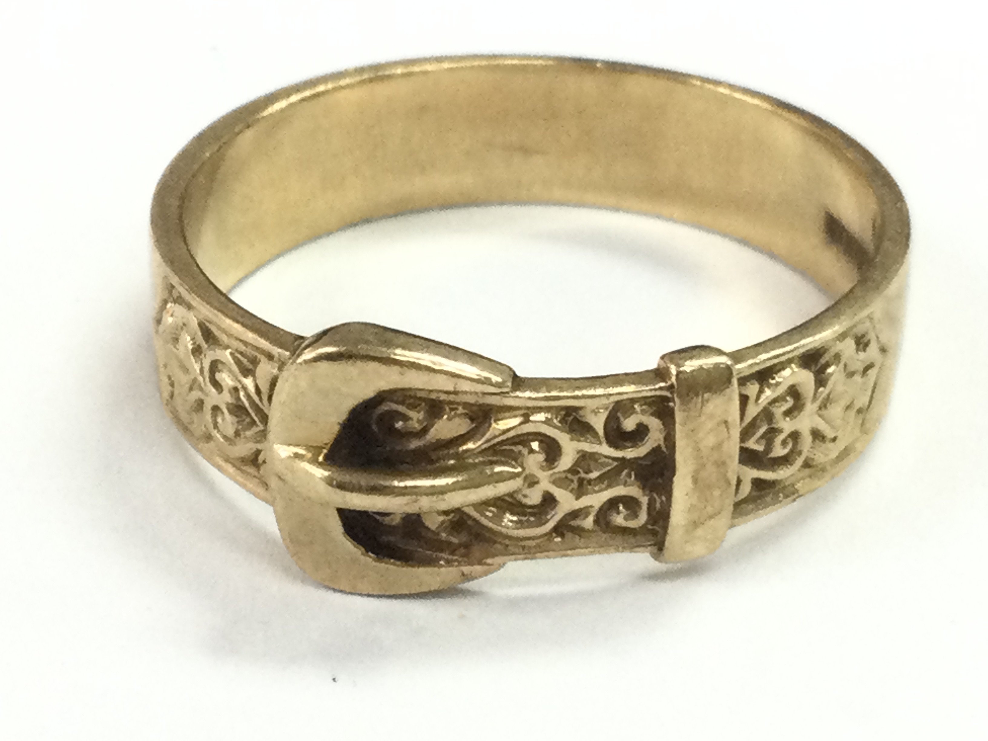 A Gents 9ct gold buckle ring , size V. 4.5g Postage category A