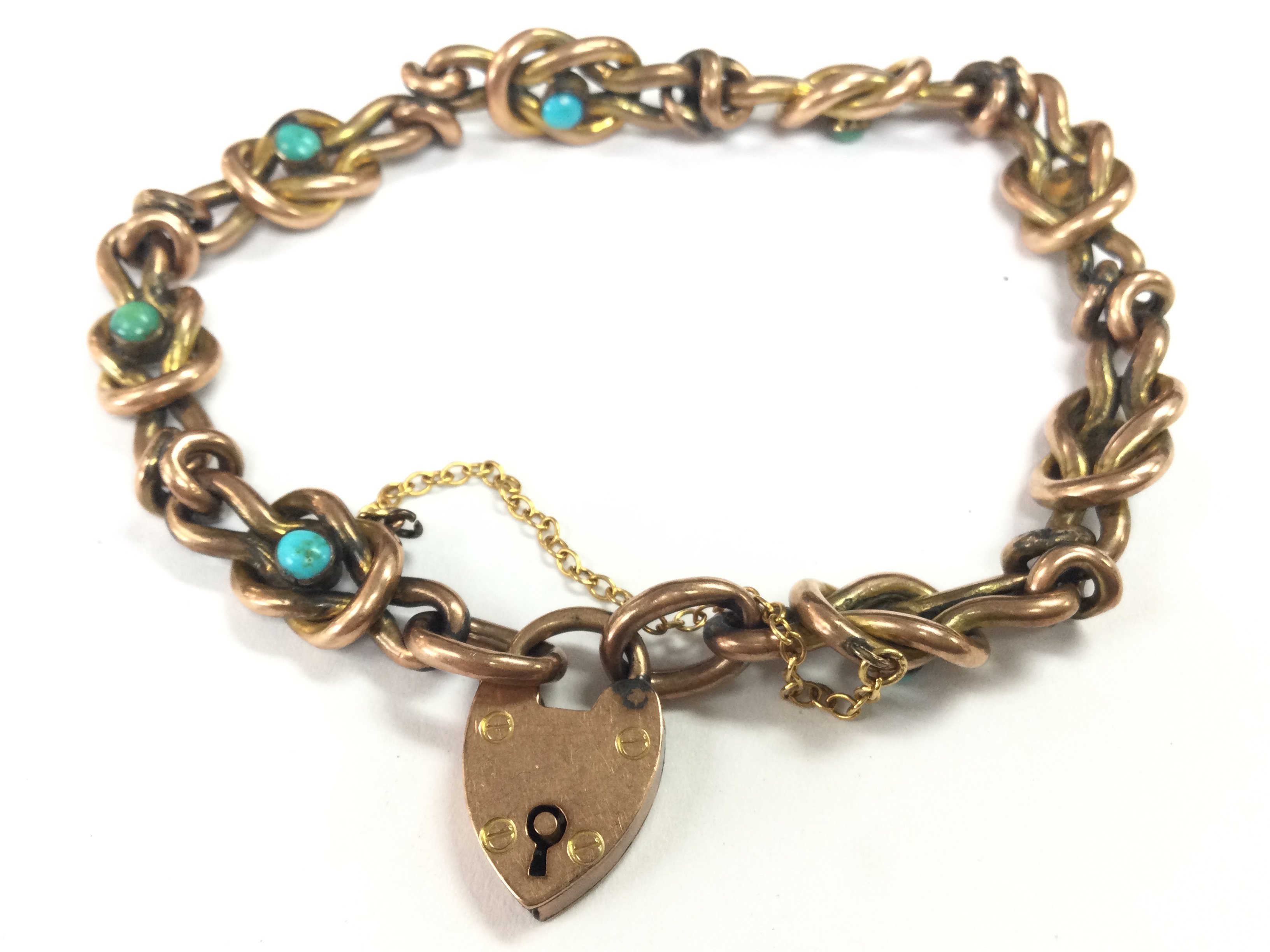 A 9ct gold bracelet set with turquoise , total weight 16.4g . Postage category A