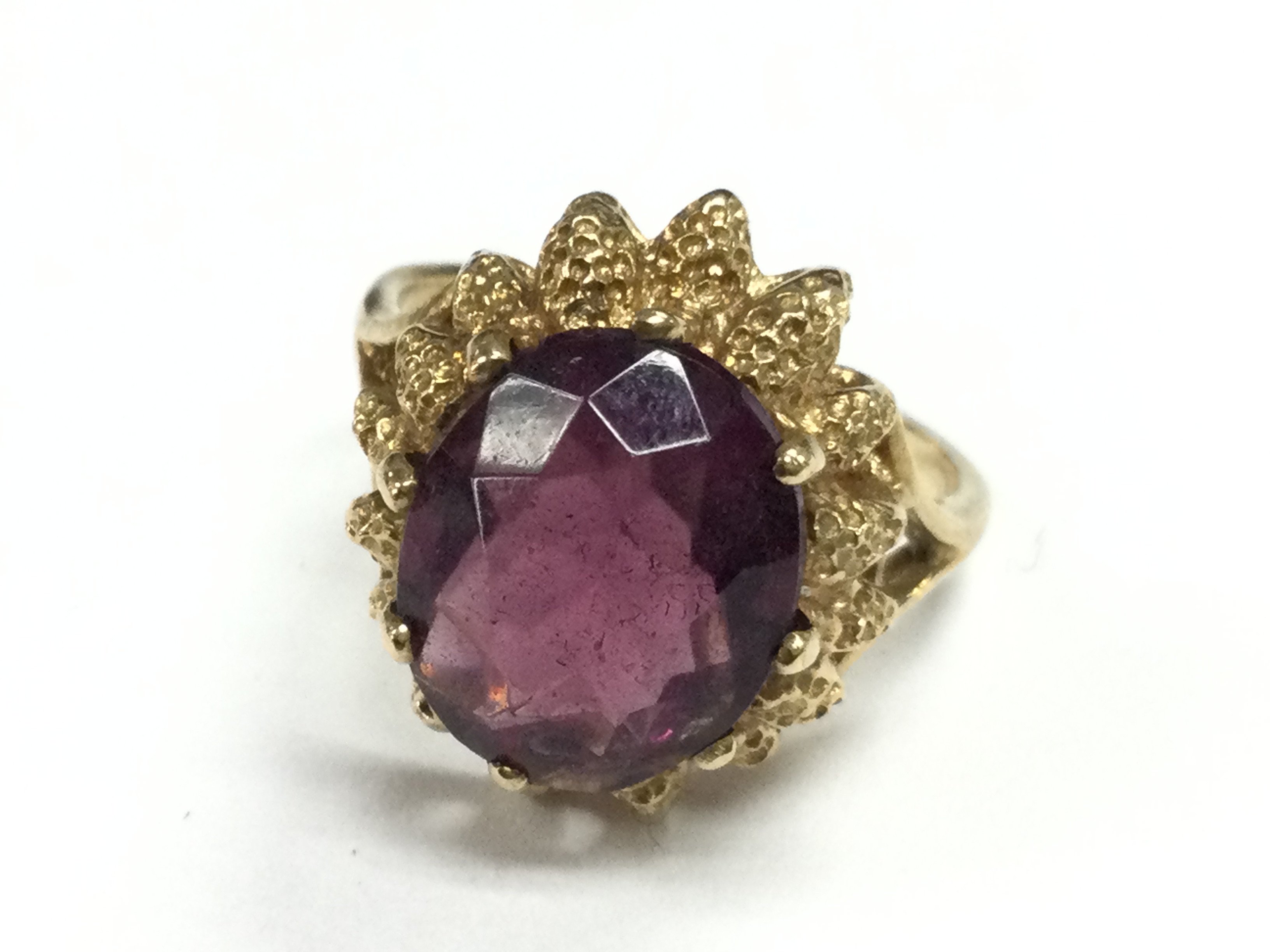 A 9ct gold ring set with a purple amethyst stone.size L . 4.5g Postage category A
