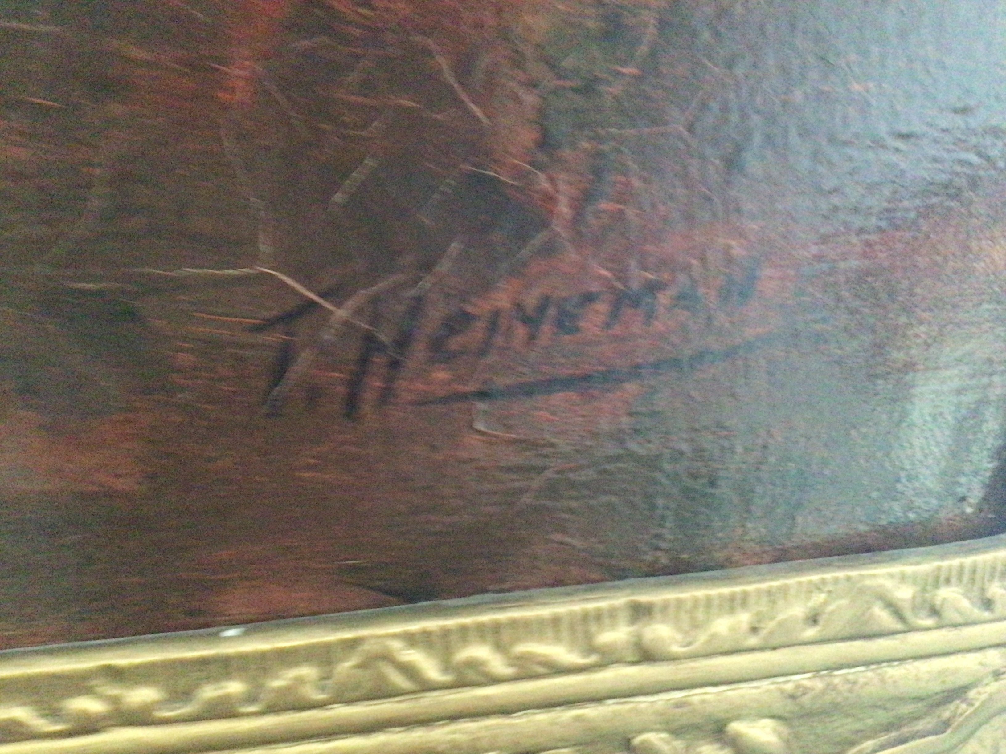 WITHDRAWN - A quality framed oil painting a Continental interior scene with figures signed T Heinman. The picture is sold in situ collection by appointment only.