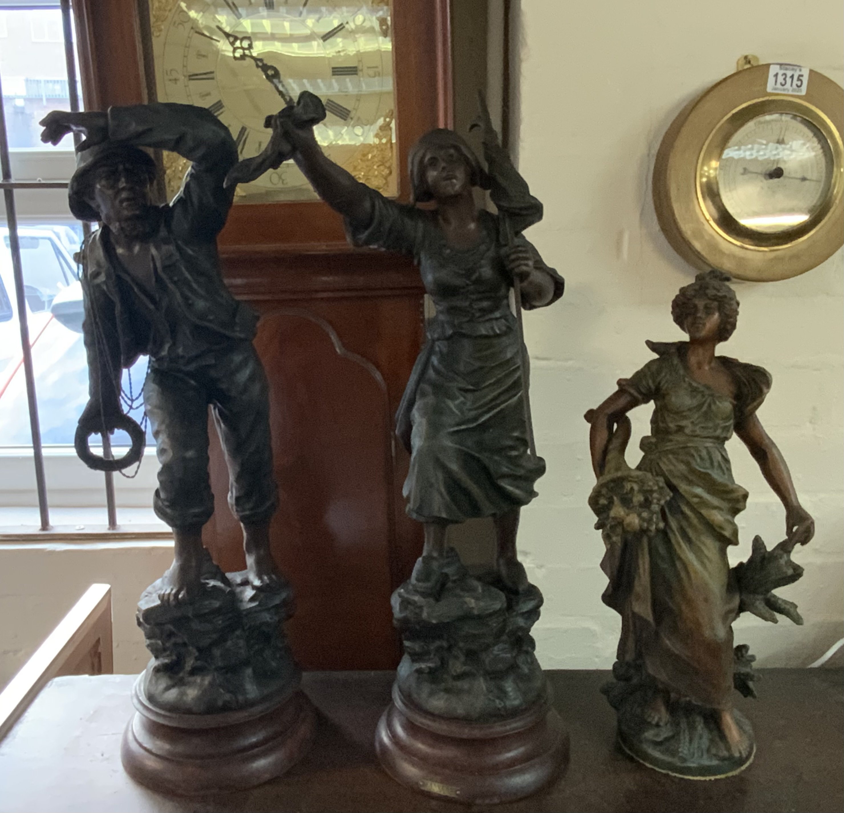 3 large late Victorian spelter figurines. 58cm. NO RESERVE
