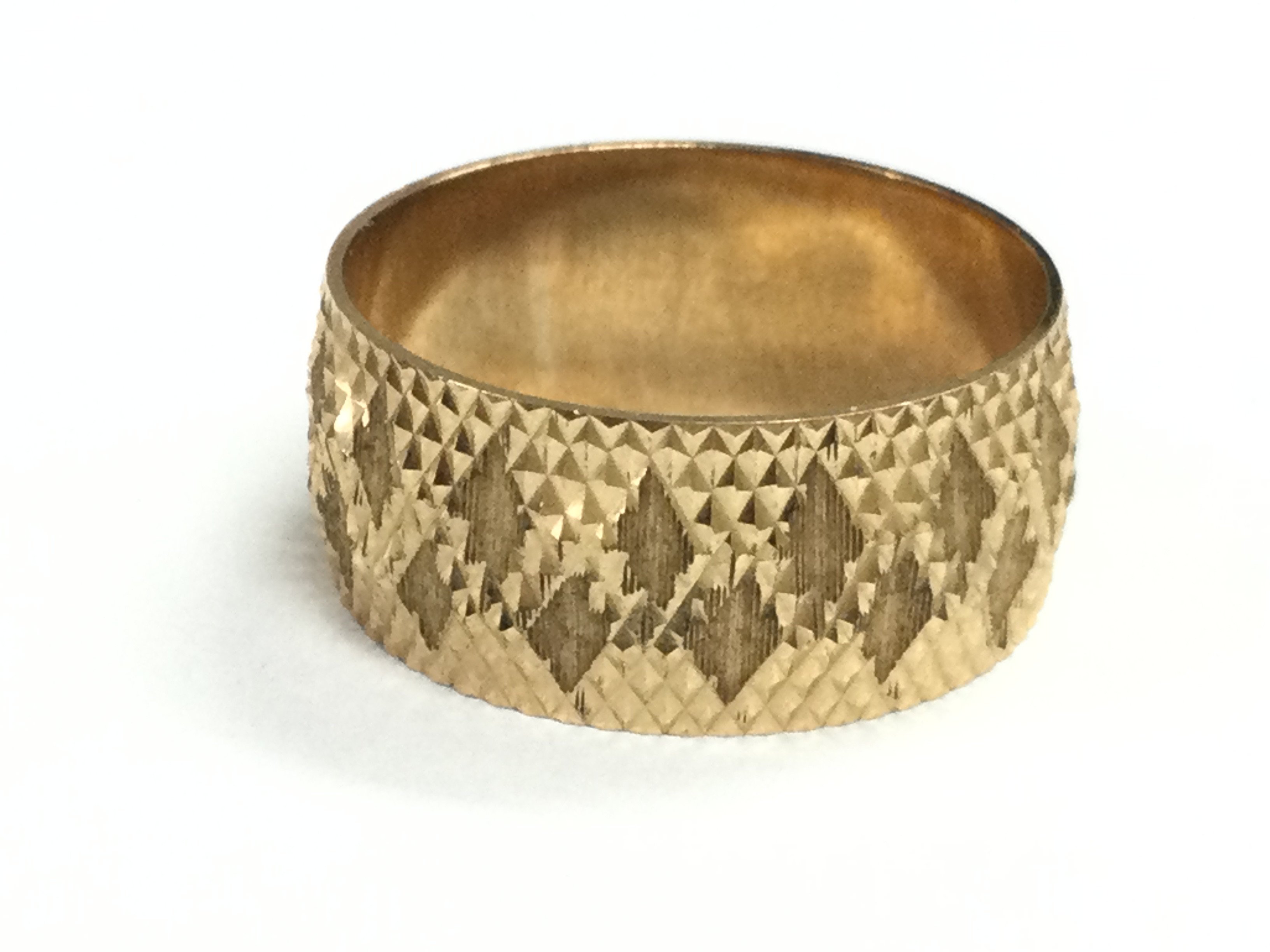 A 9ct gold wedding ring , 3.2g. Size M Postage cat A