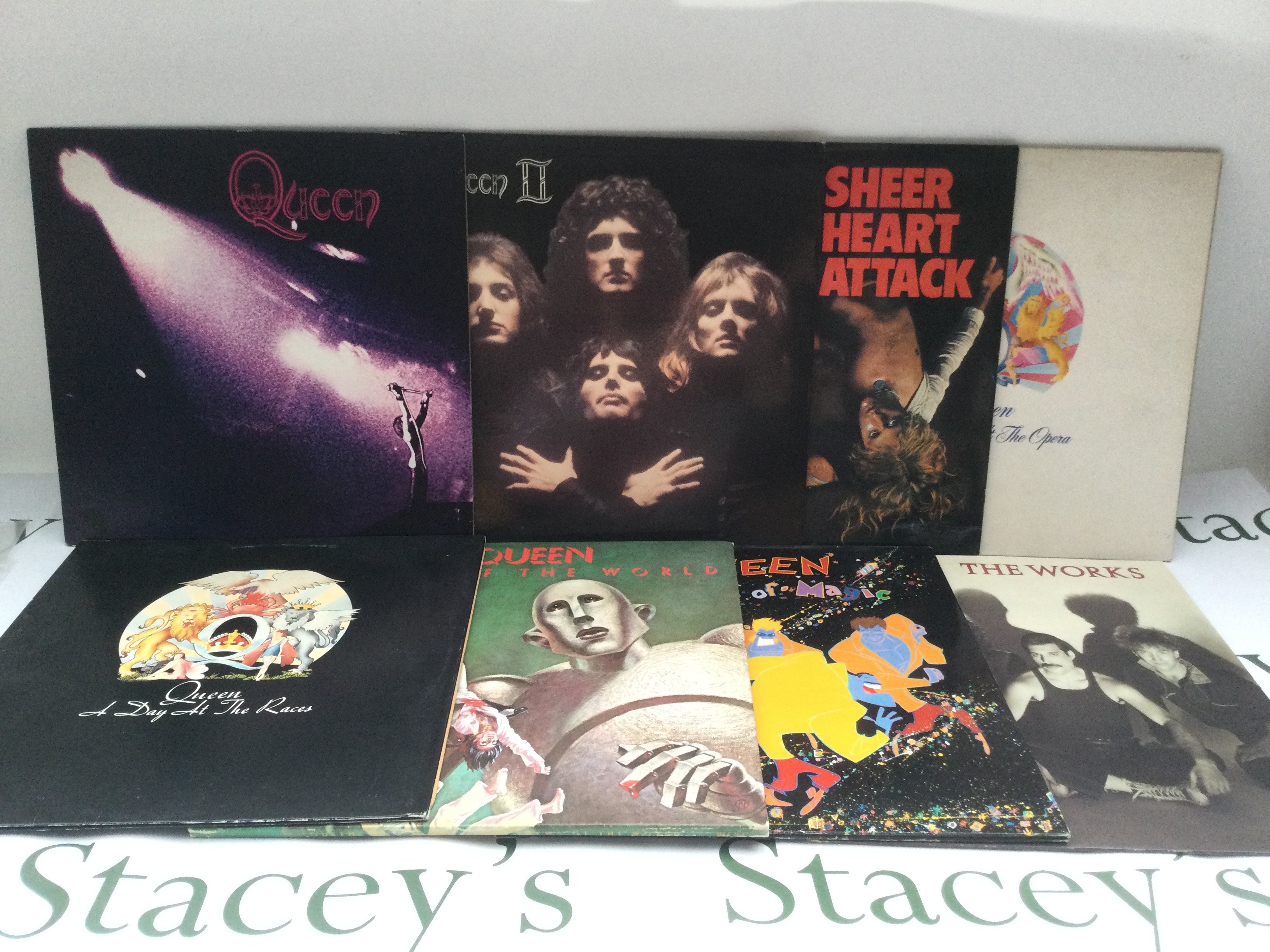 Eight Queen LPs comprising 'A Day At The Races', 'News Of The World', 'Queen II' and others.