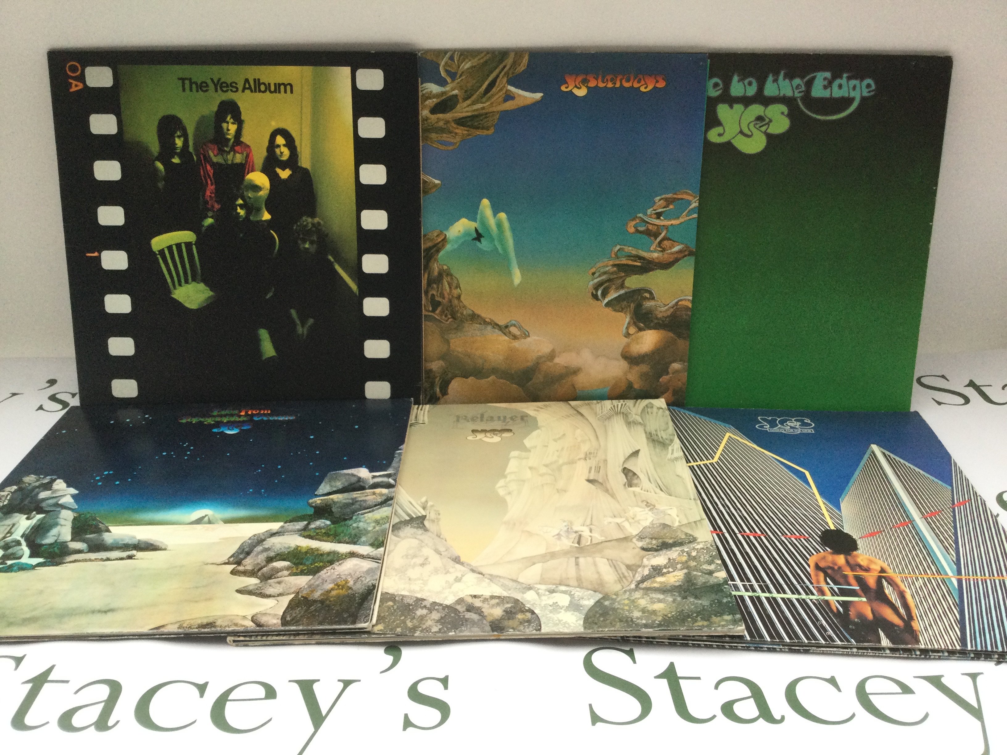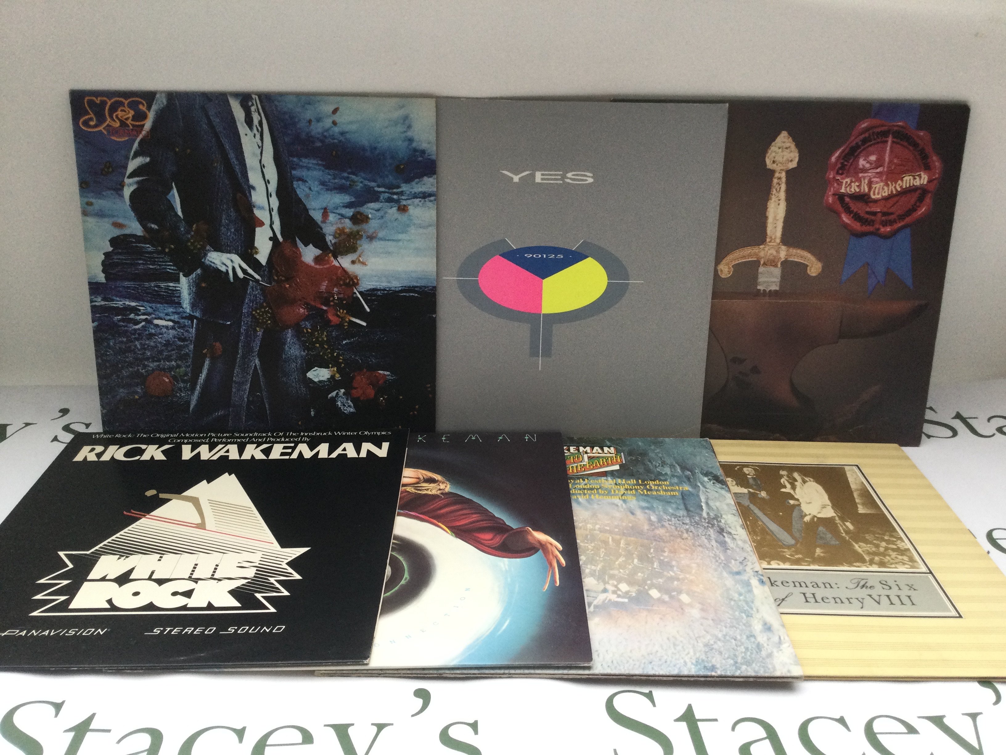 Thirteen Yes and Rick Wakeman LPs comprising 'The Yes Album', 'Tales From Topographic Oceans', 'No Earthly Connection' and others.