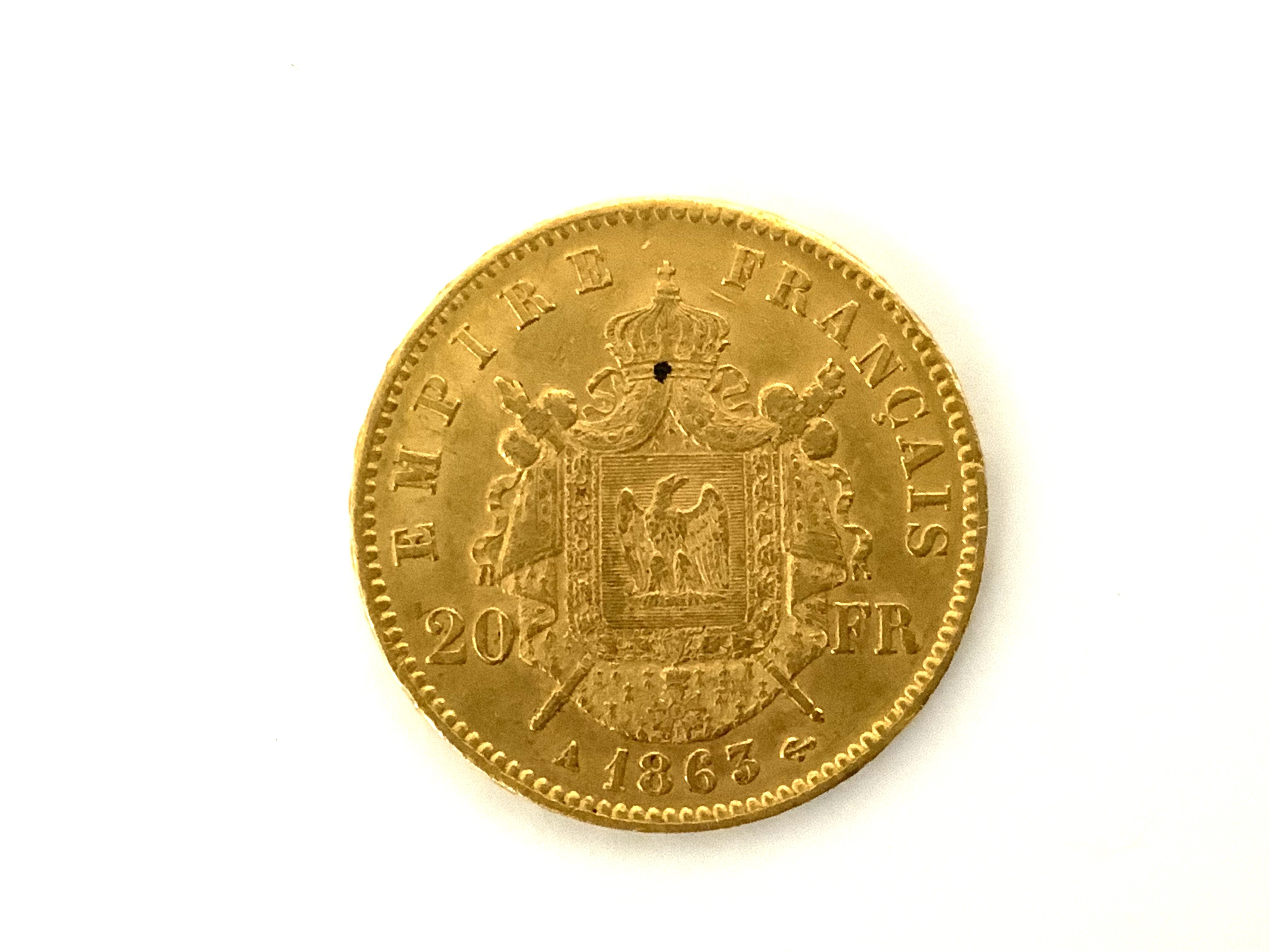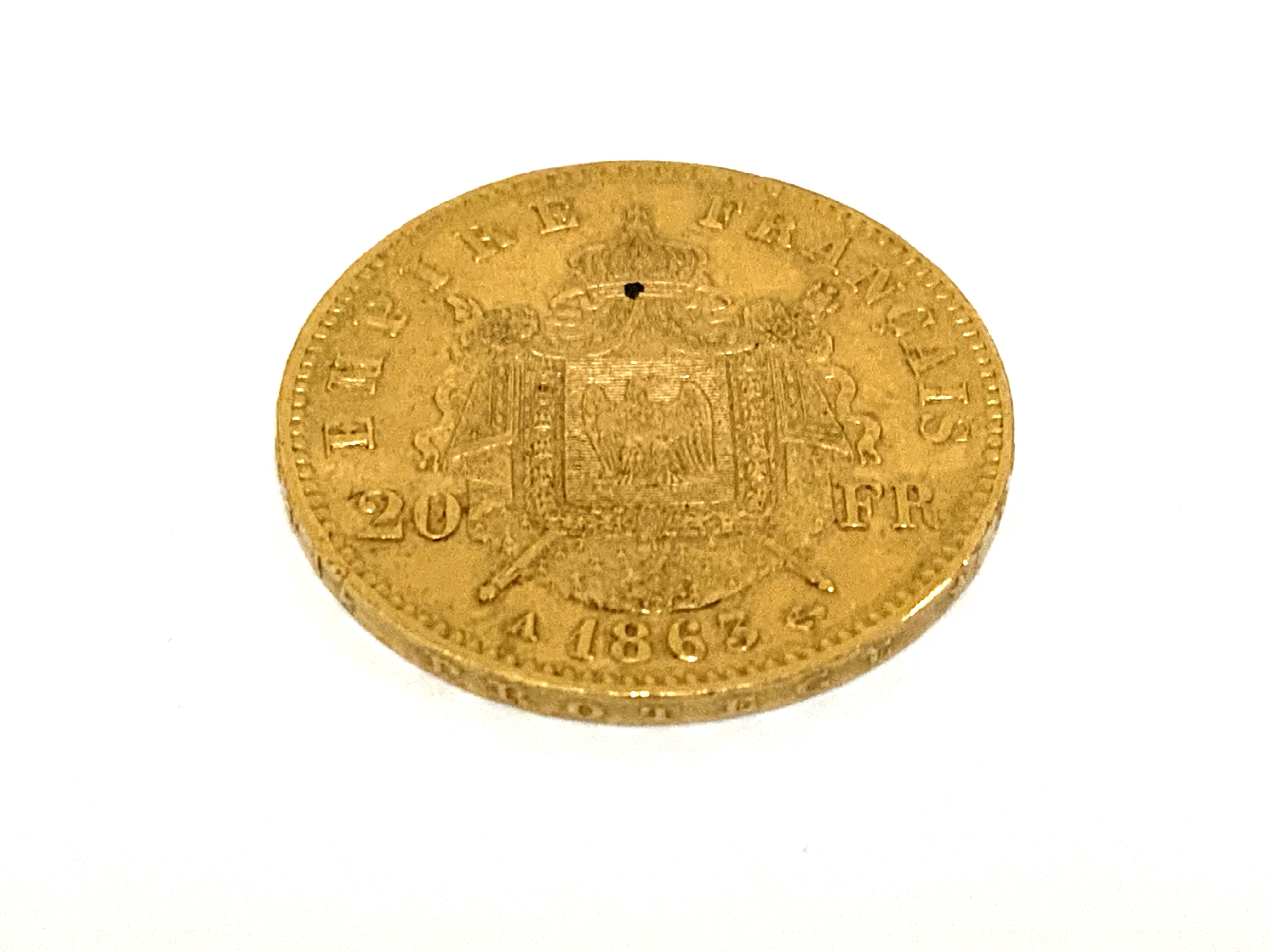 Napoleon III 1863, 20 Franc coin, Paris mint, 1795-1959, 6.45g.