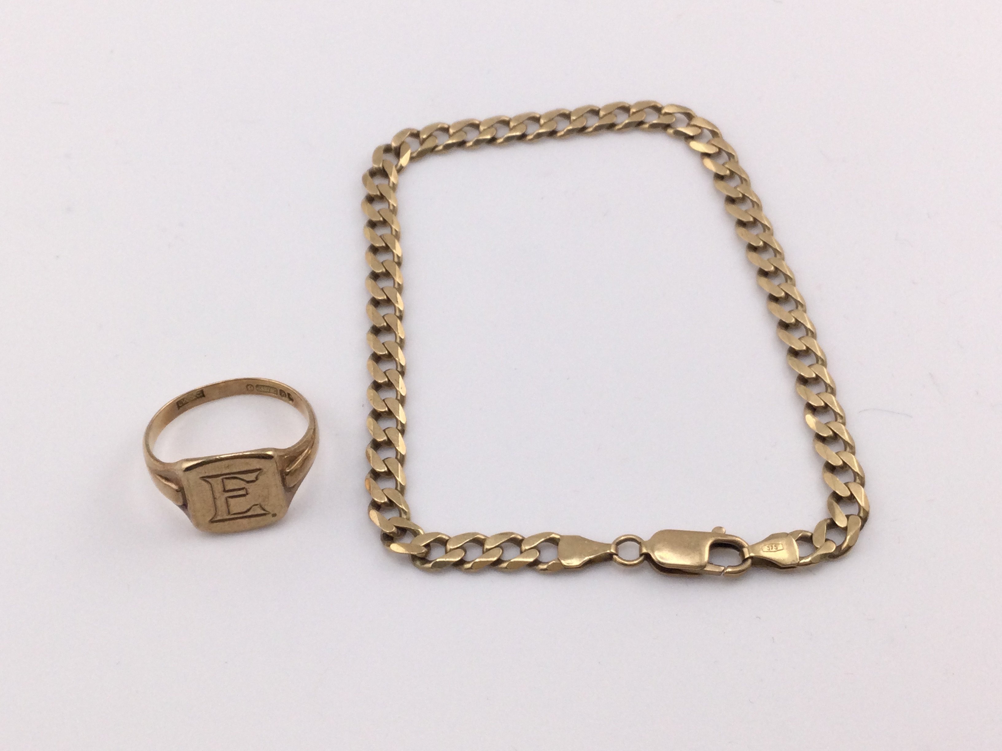 A 9ct gold ring and 9ct gold bracelet. Total weight 13.65g Postage A