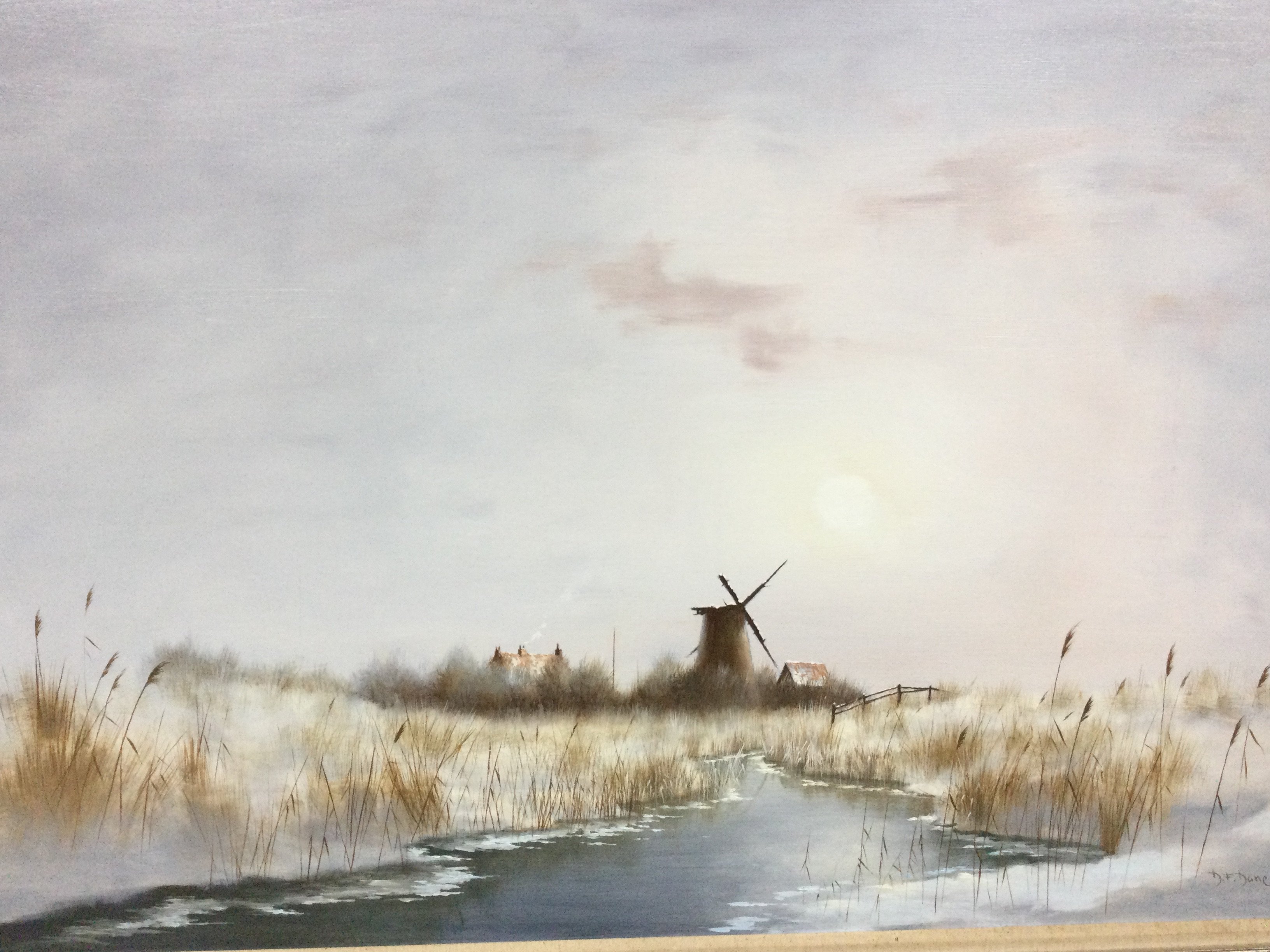 A framed 20th century oil on canvas painting by David F. Dane of a winter rural scene. Dimensions 108x78cm approximately