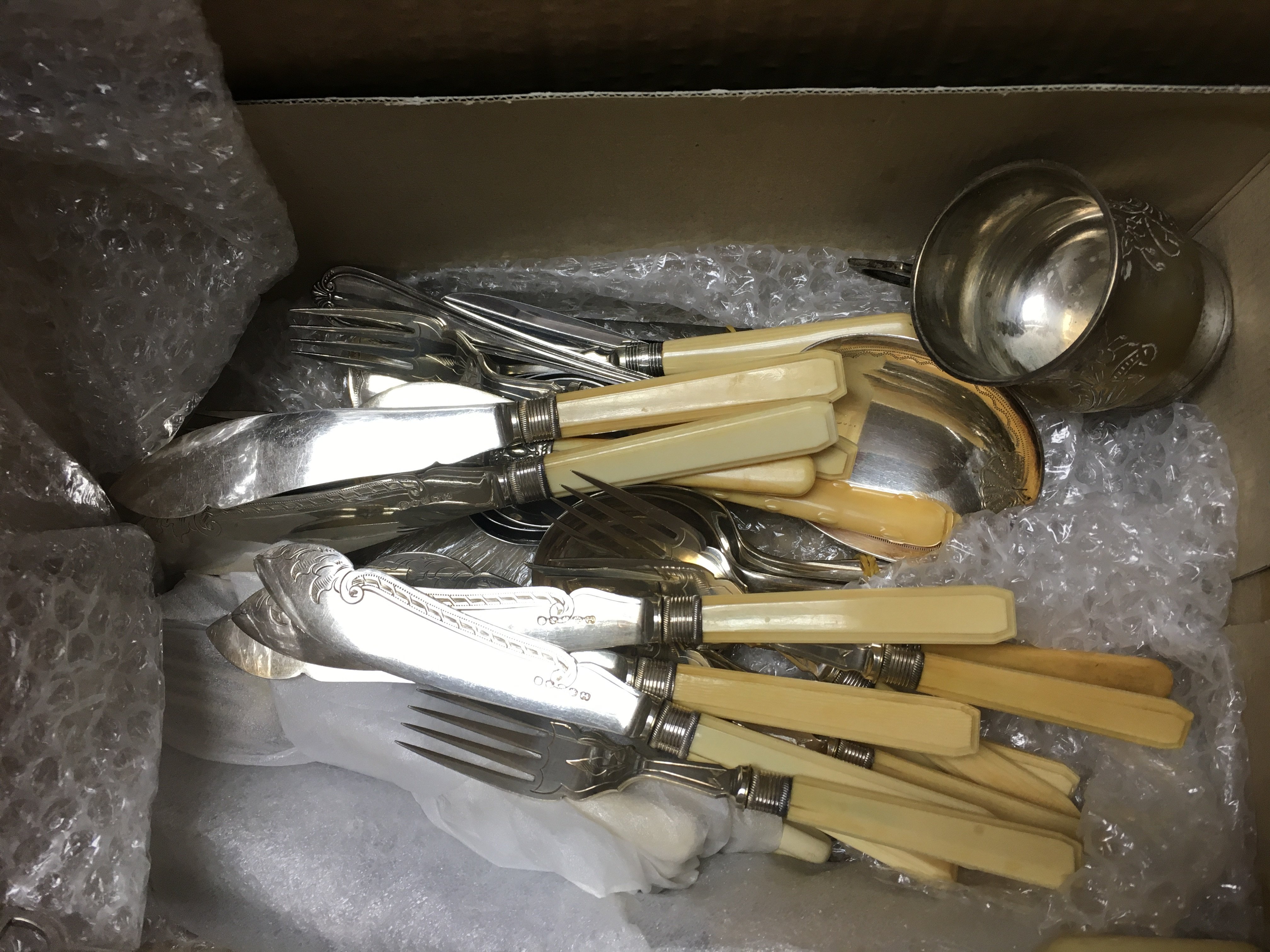 A collection of assorted silver plate items including cutlery etc. NO RESERVE
