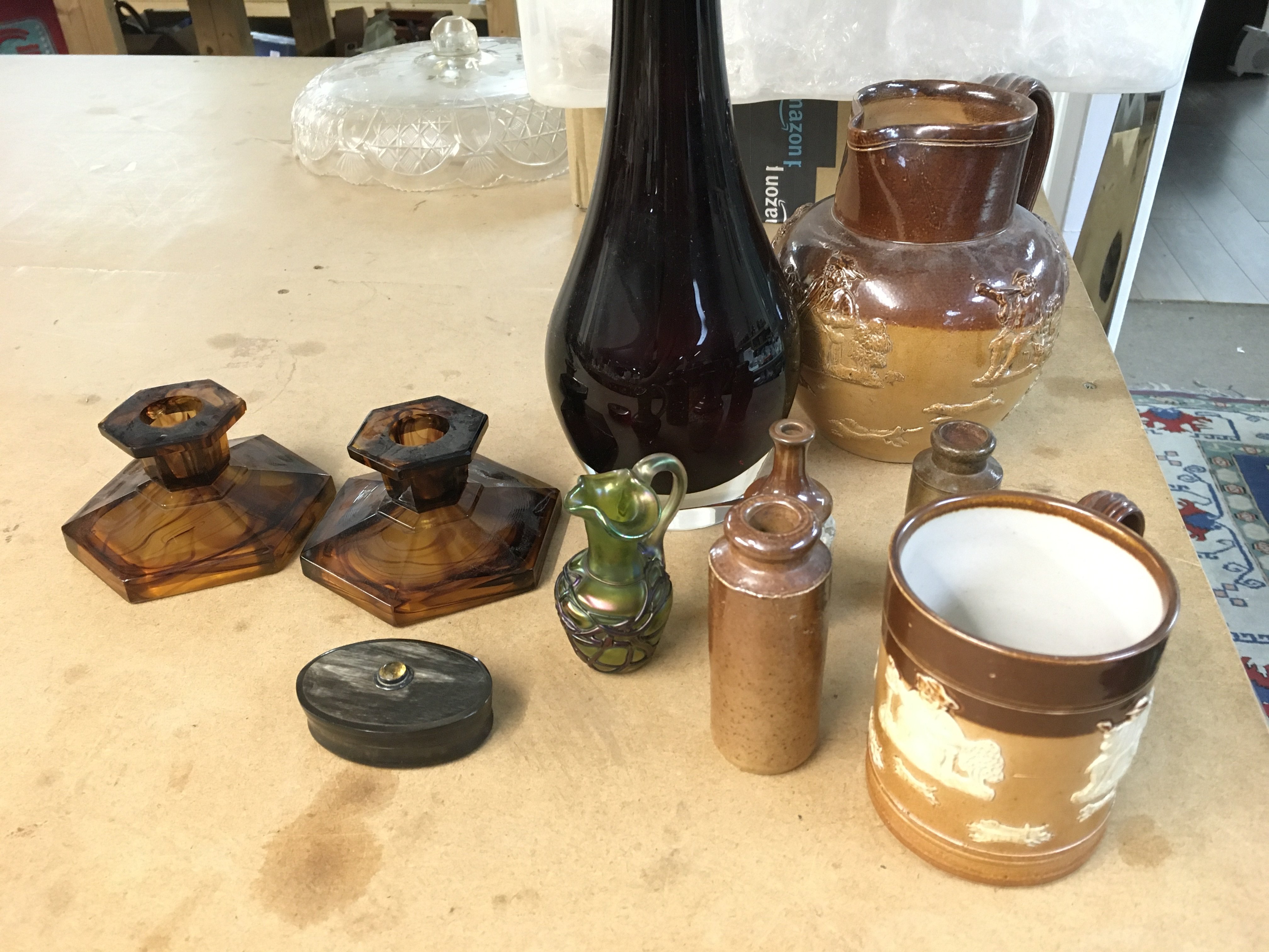 Some royal Doulton harvest wear along with glass items including candle stick holders. NO RESERVE