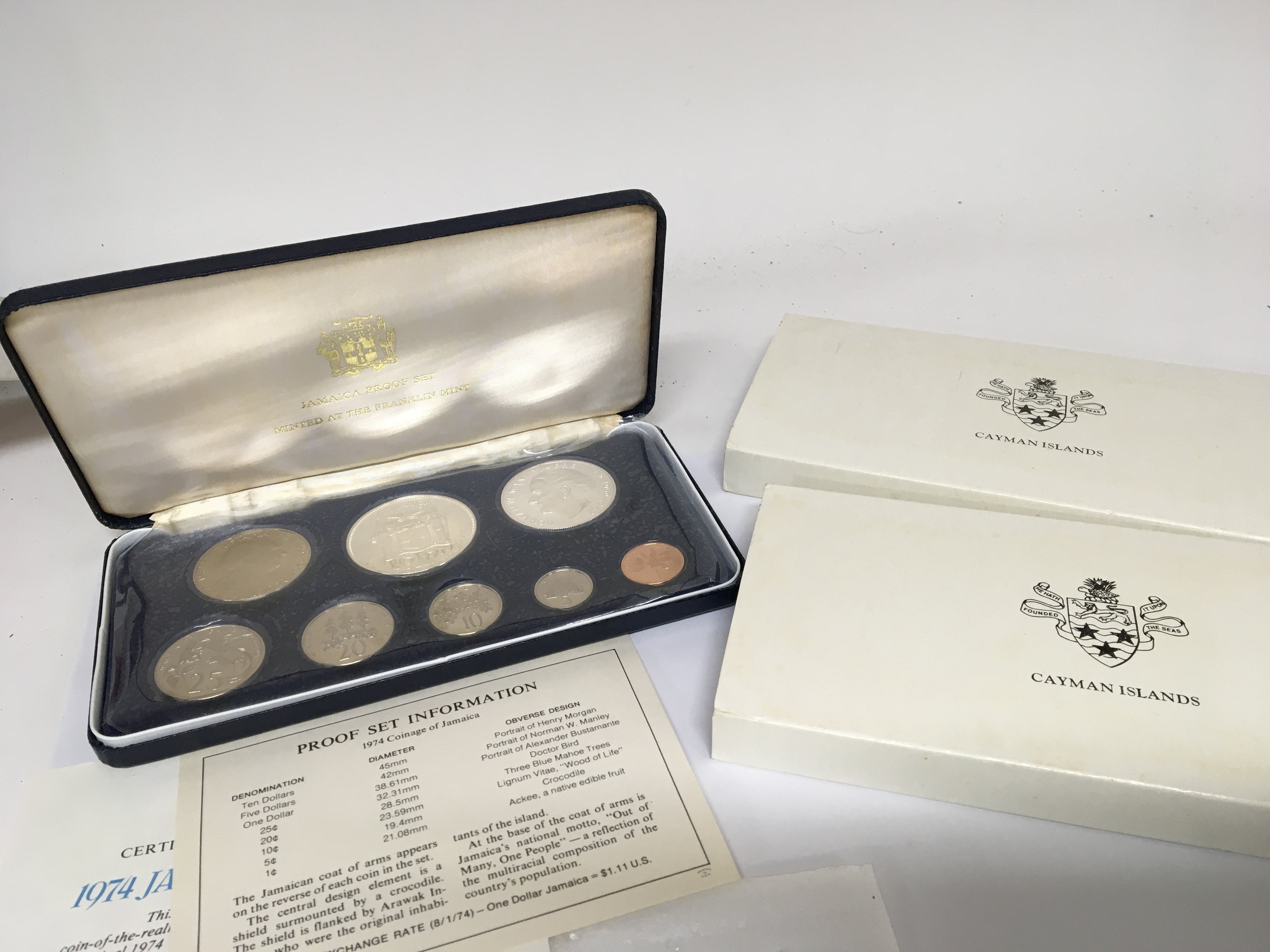 Three coin proof sets 1974 Jamaica and two Cayman island sets (3)