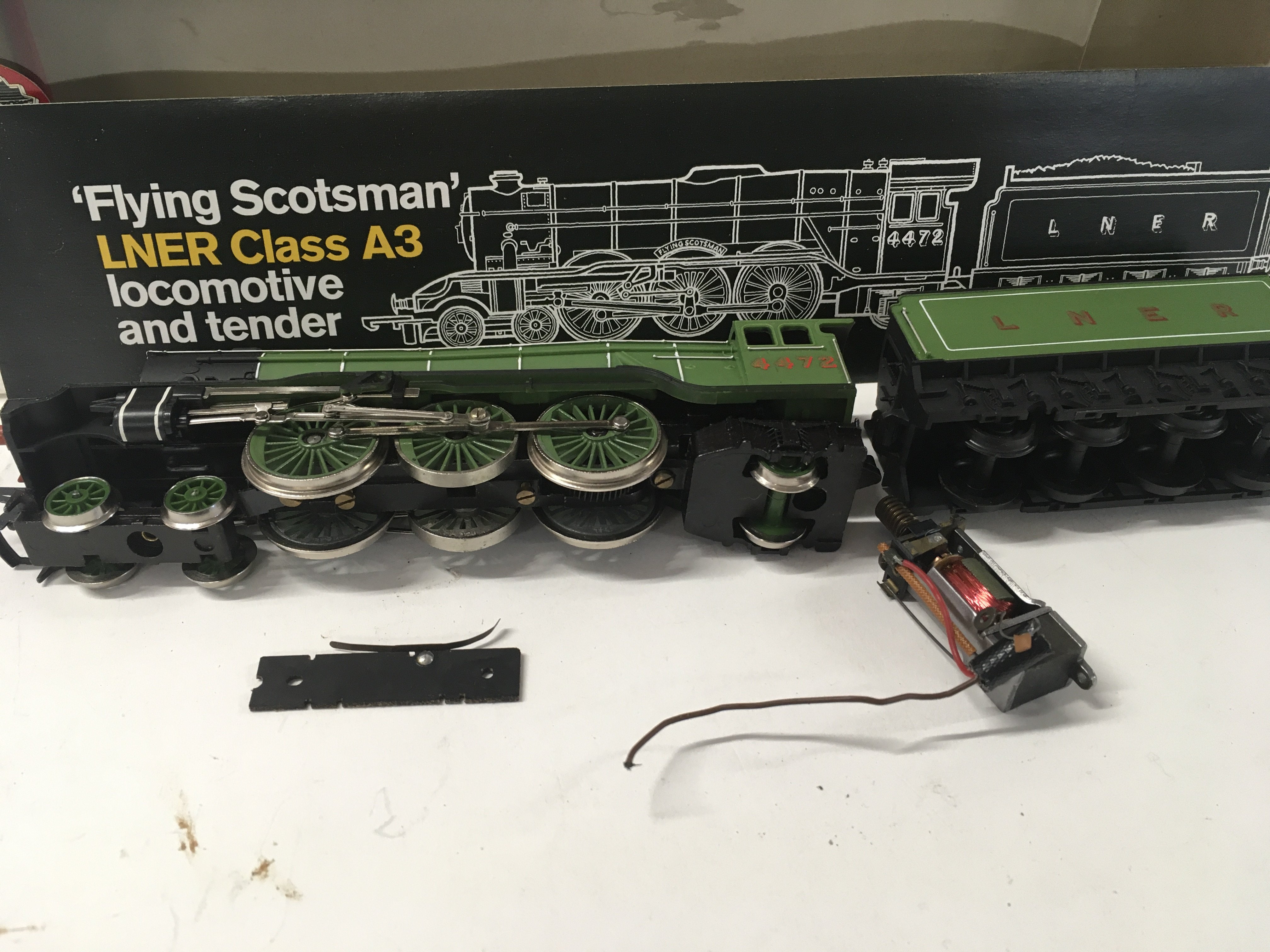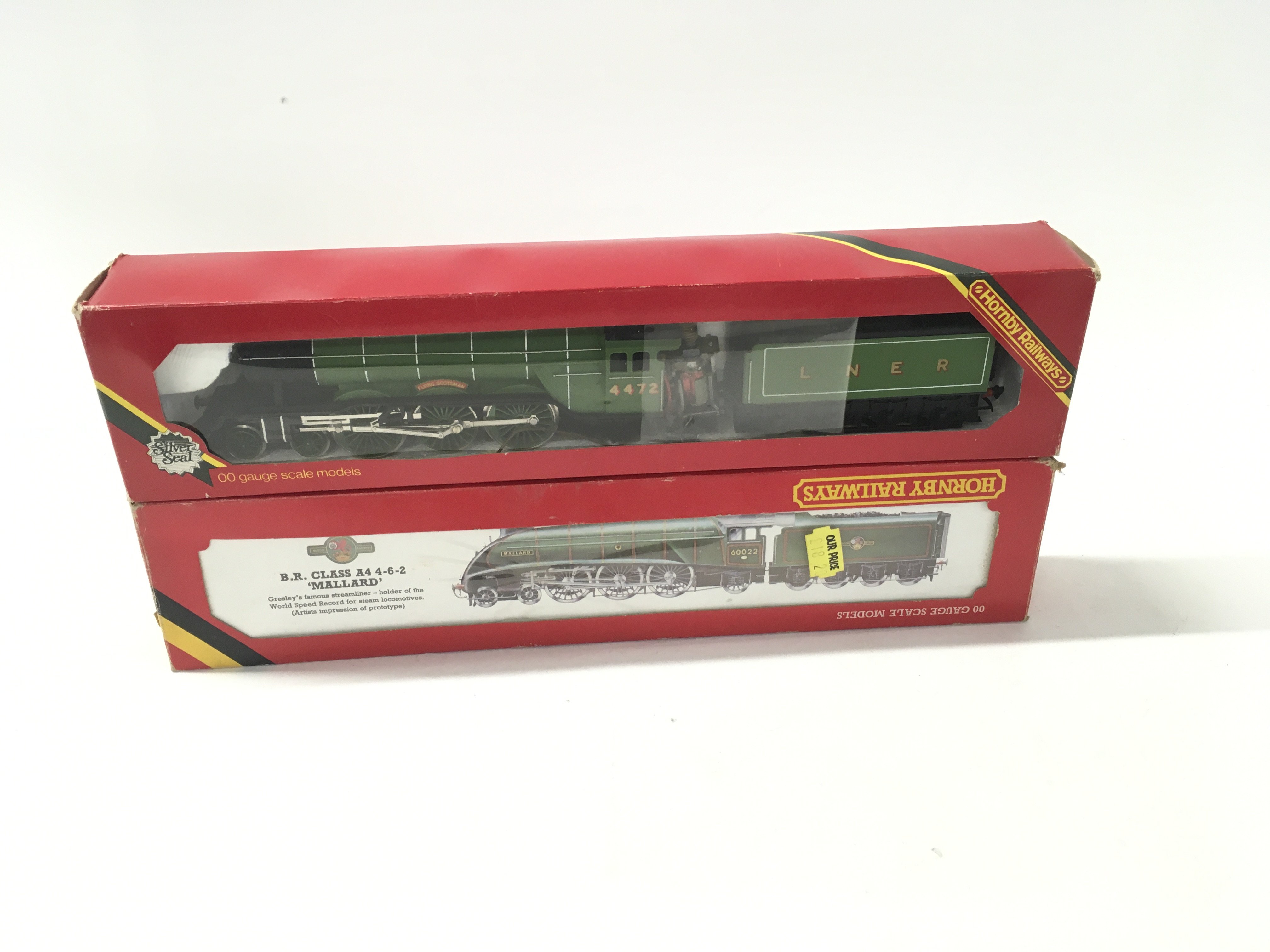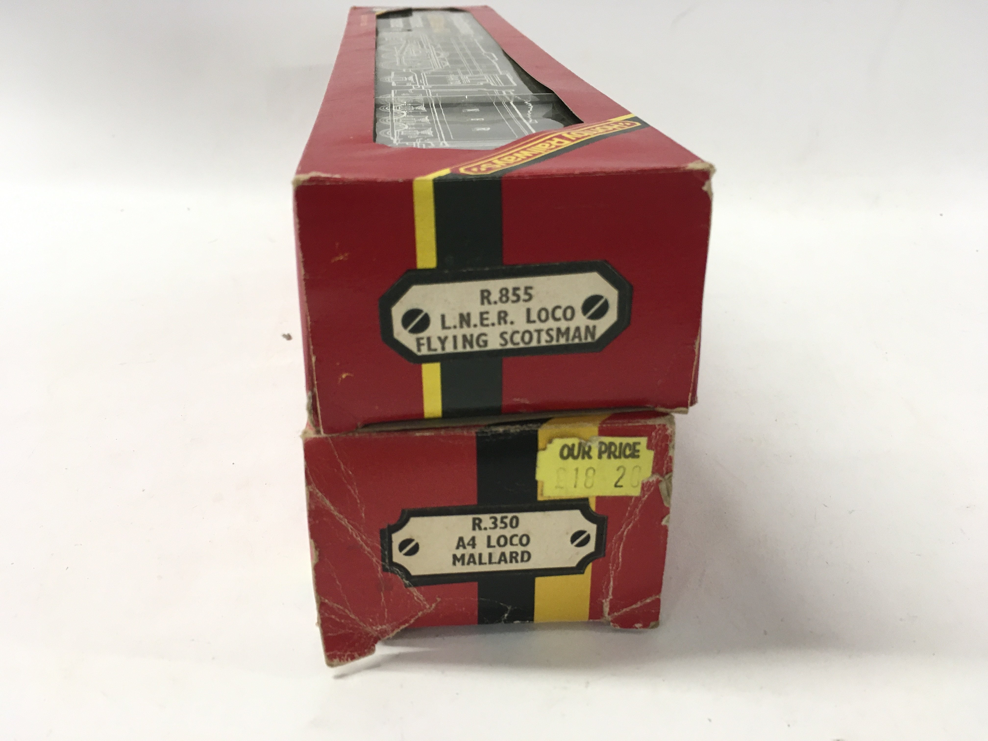 2x boxed model locomotives with tender by Hornby includes R.855 LNER Flying Scotsman and R.350 A4 Mallard. 00 gauge. No Reserve